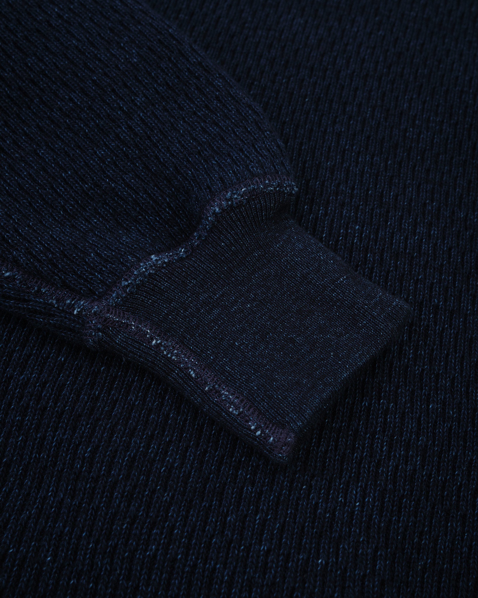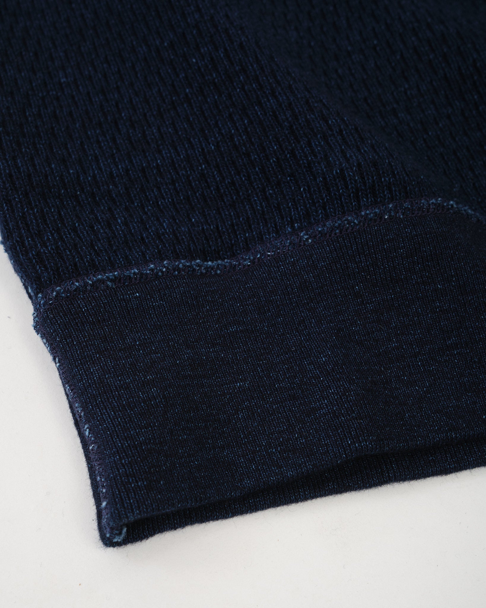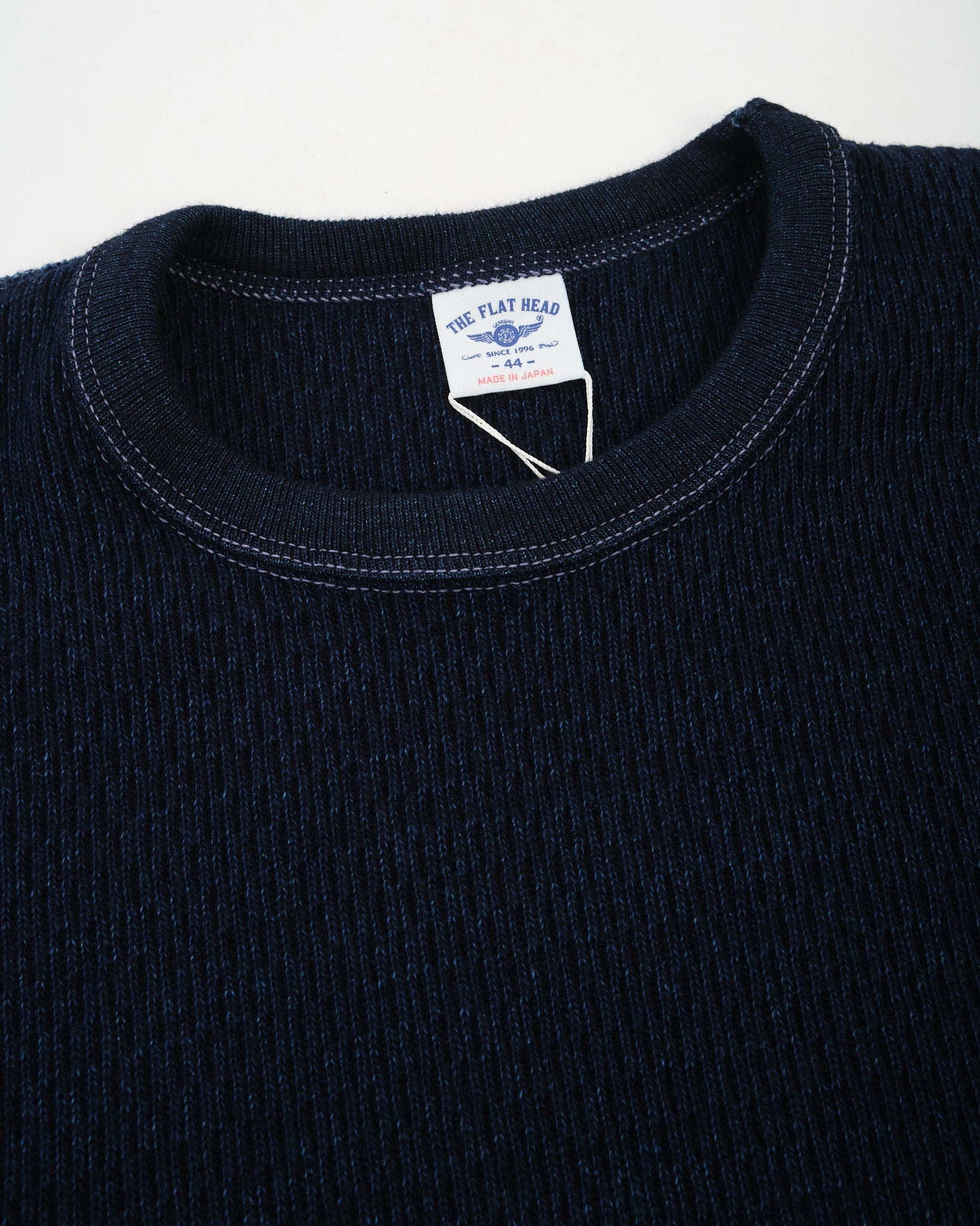 FLAT HEAD FN-UTHL-001SP Indigo Heavy Thermal er designet til overlegen varme og holdbarhed, fremstillet af 23oz tung termisk stof for fremragende isolering i koldere forhold. Lavet af 100% ren bomuld, kombinerer dette stykke traditionelt håndværk med moderne funktionalitet, sikrer komfort, mens det udvikler en rig, personlig falme over tid takket være sin indigo-farvede konstruktion.