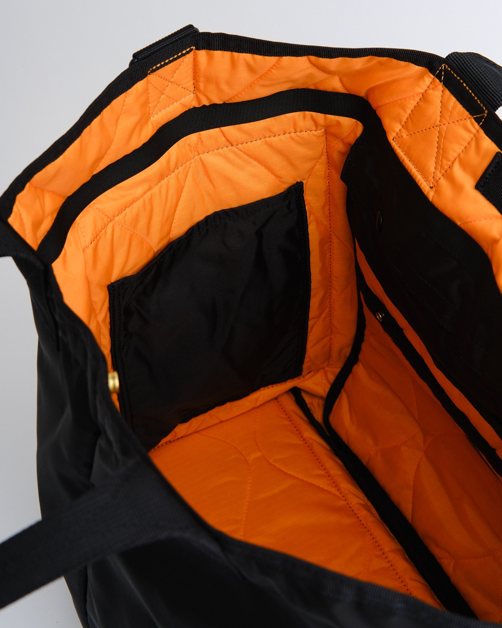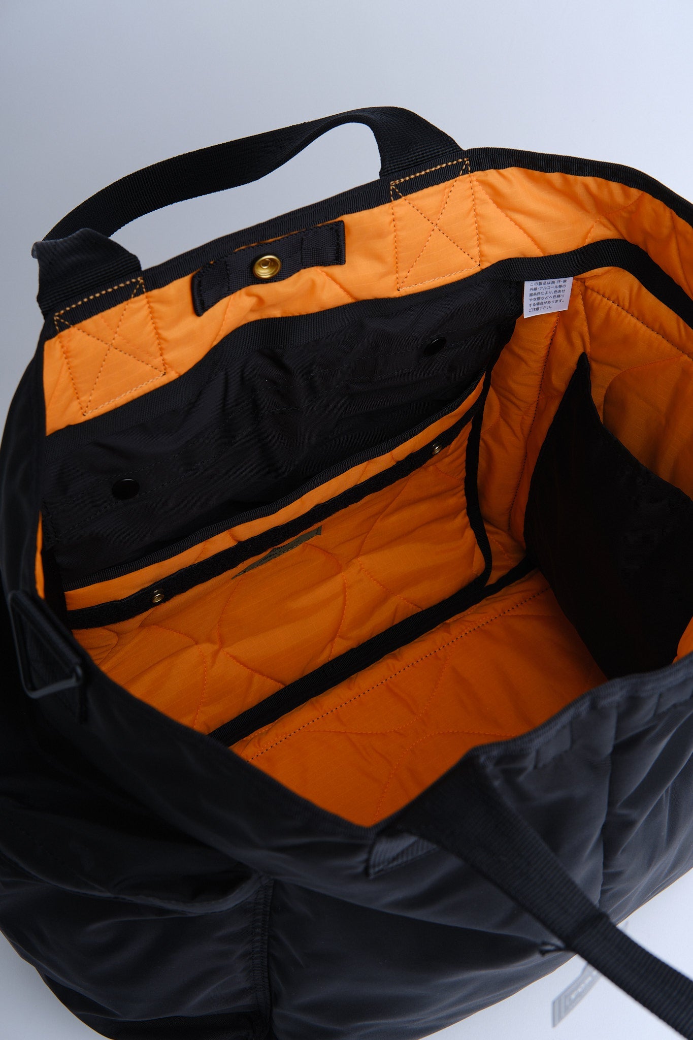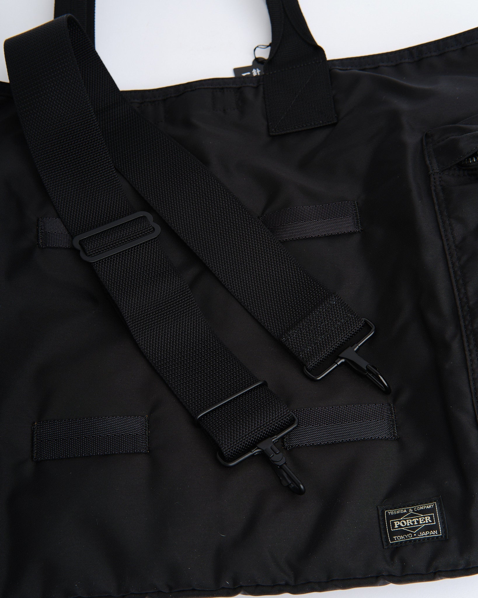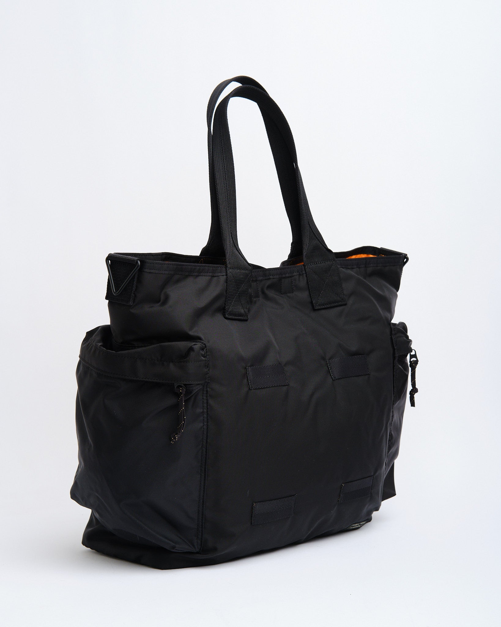 The PORTER BY YOSHIDA Force 2-Way Tote Bag er en del af PORTER FORCE-serien, inspireret af militær æstetik og de tilfældige farveforskelle, der findes i militærgoder. Et fremtrædende træk er den subtile farvevariation mellem stoffet i forlommen og hovedkroppen af tasken, hvilket skaber indtrykket af at bruge forskellige stofpartier. Denne serie fejrer de uregelmæssige farveskemaer, der naturligt opstår i militært tøj og tilbehør.
