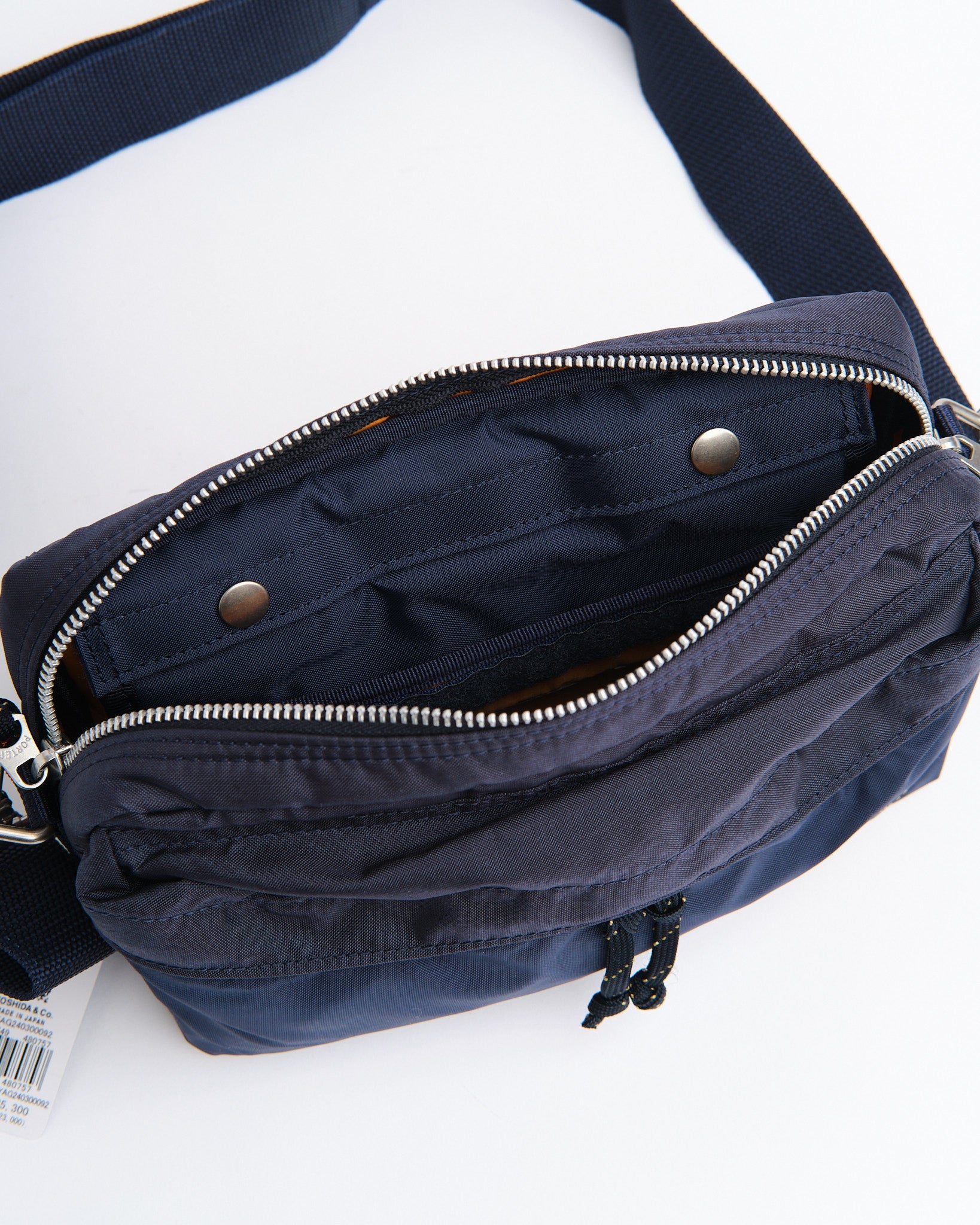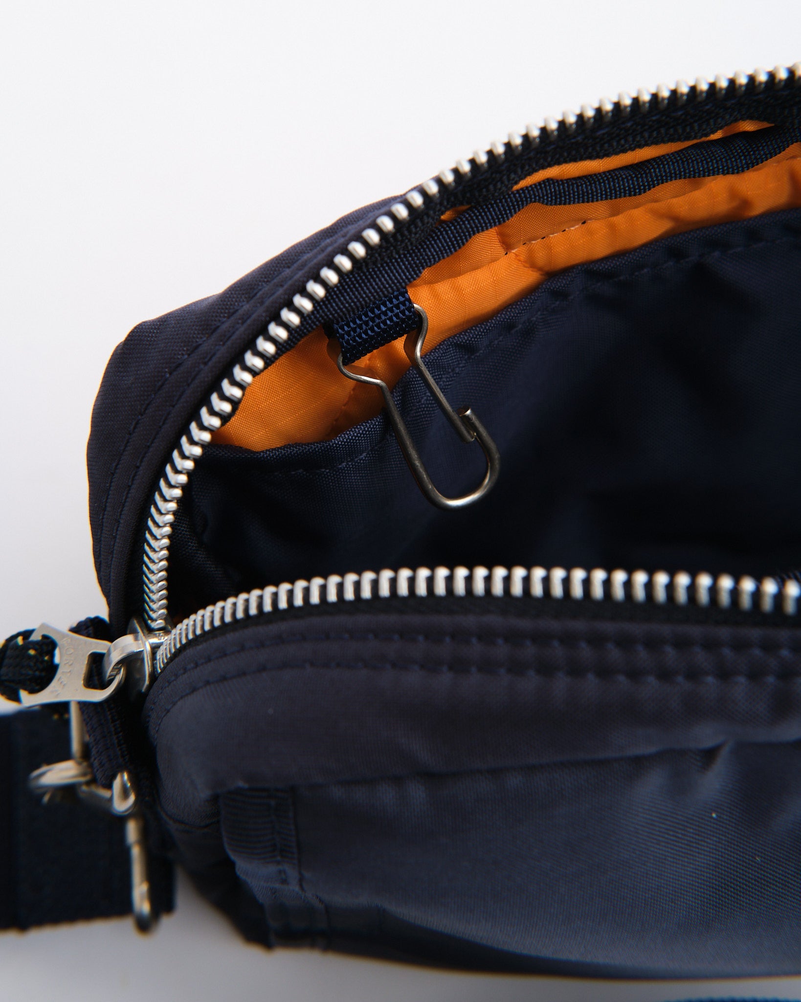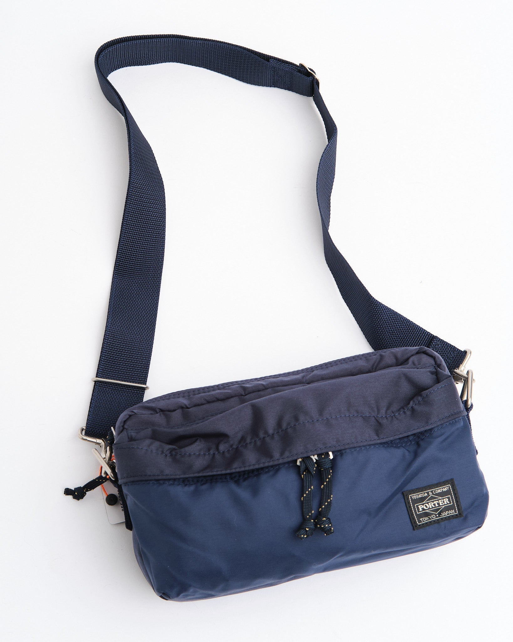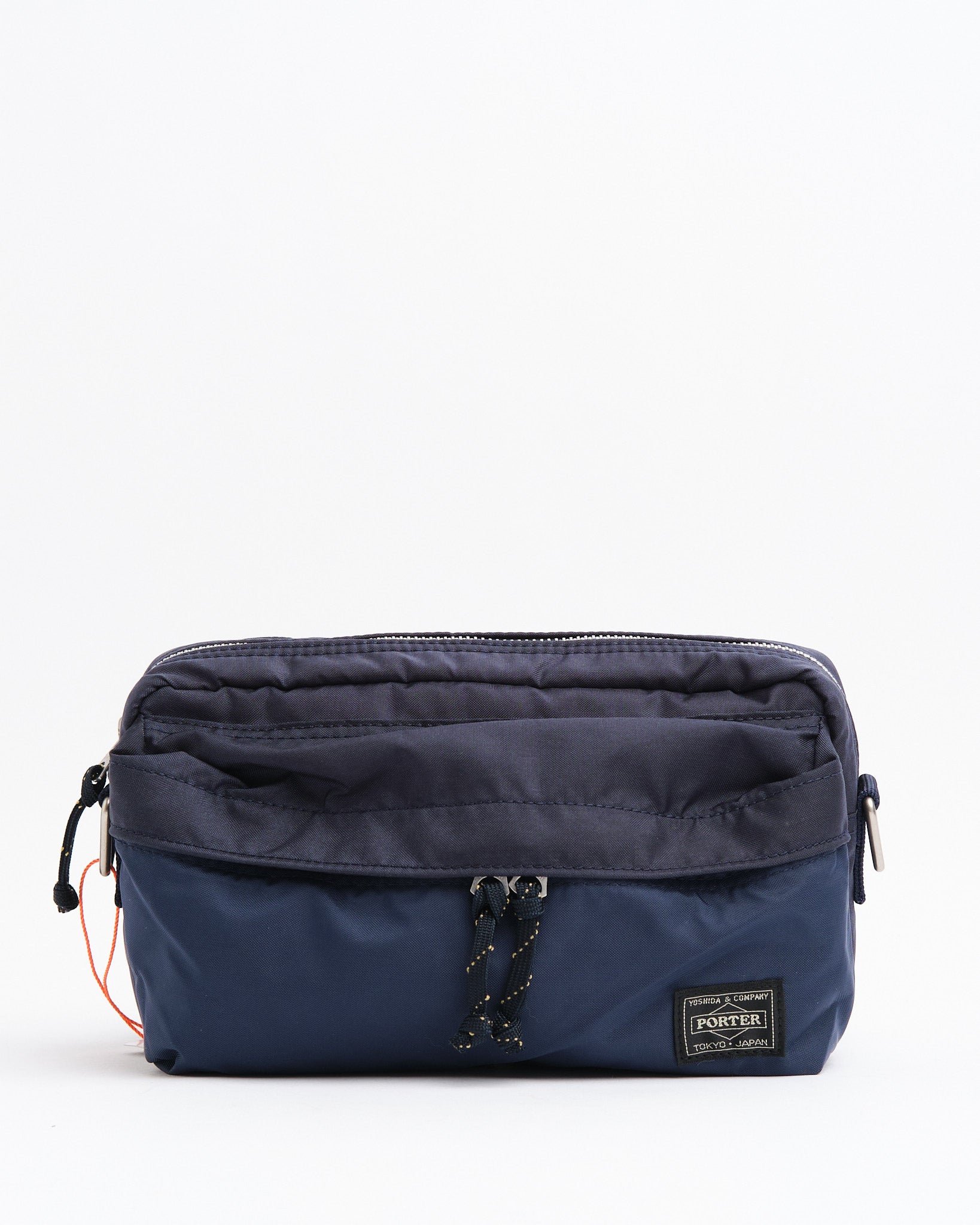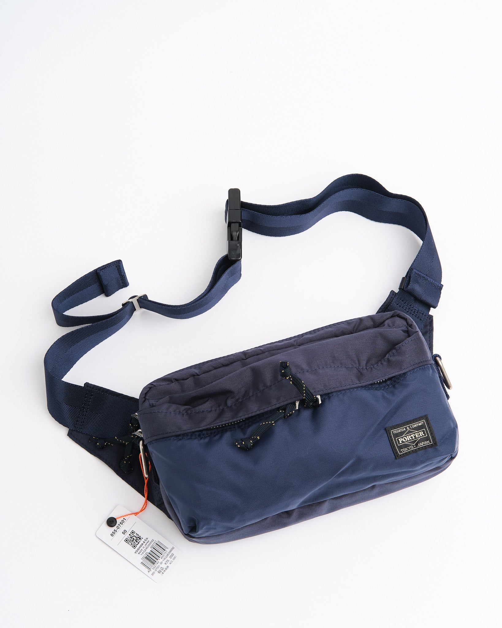 Den PORTER BY YOSHIDA Force 2-Way Waist Bag er en del af PORTER FORCE-serien, inspireret af militær æstetik og de tilfældige farveforskelle, der findes i militært udstyr. Et kendetegn ved dette design er den subtile farvevariation mellem stoffet på frontlommen og hovedkroppen af tasken, hvilket får det til at virke som om, forskellige stofpartier er brugt. Denne serie omfavner de uregelmæssige farveskemaer, der naturligt opstår i militært tøj og tilbehør.