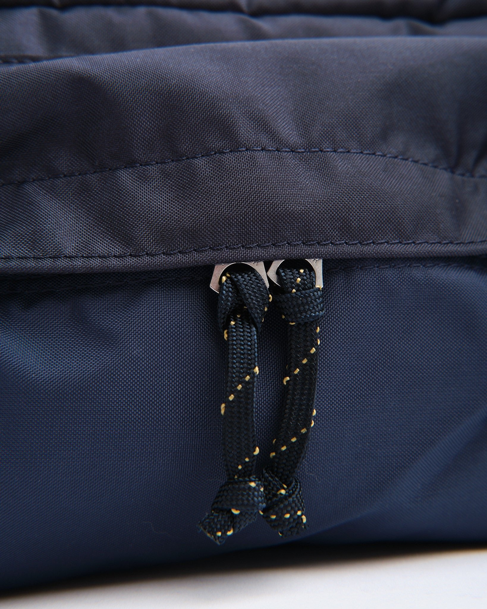 Fremstillet af industriel kvalitetsstof vævet med 210 denier 6 nylon stærk tråd, som oprindeligt blev brugt til gummibåde, sikrer tasken høj holdbarhed. Interiøret er foret med nødfarve orange, inspireret af militærjakker, og er quiltet med ripstop nylon for ekstra styrke.