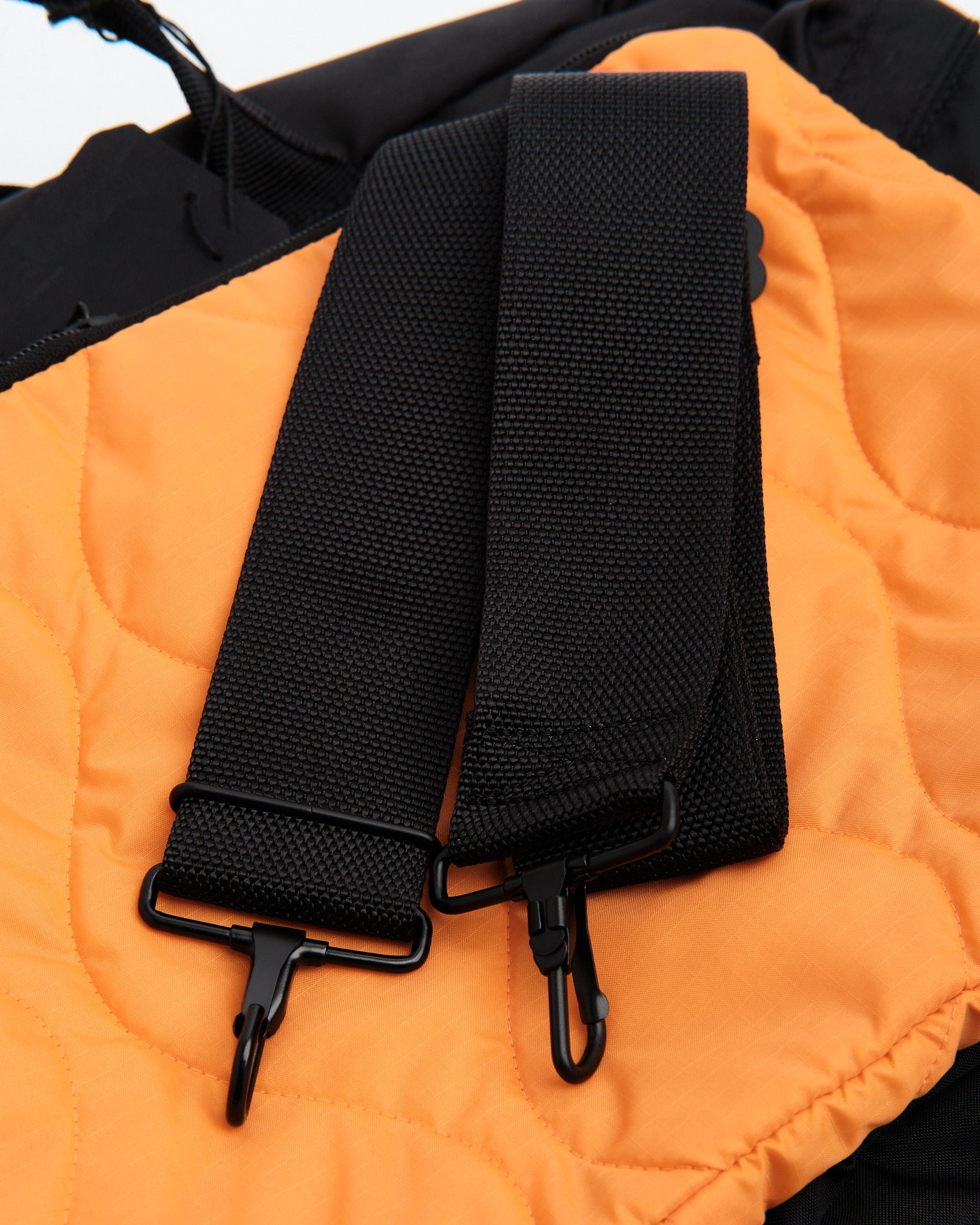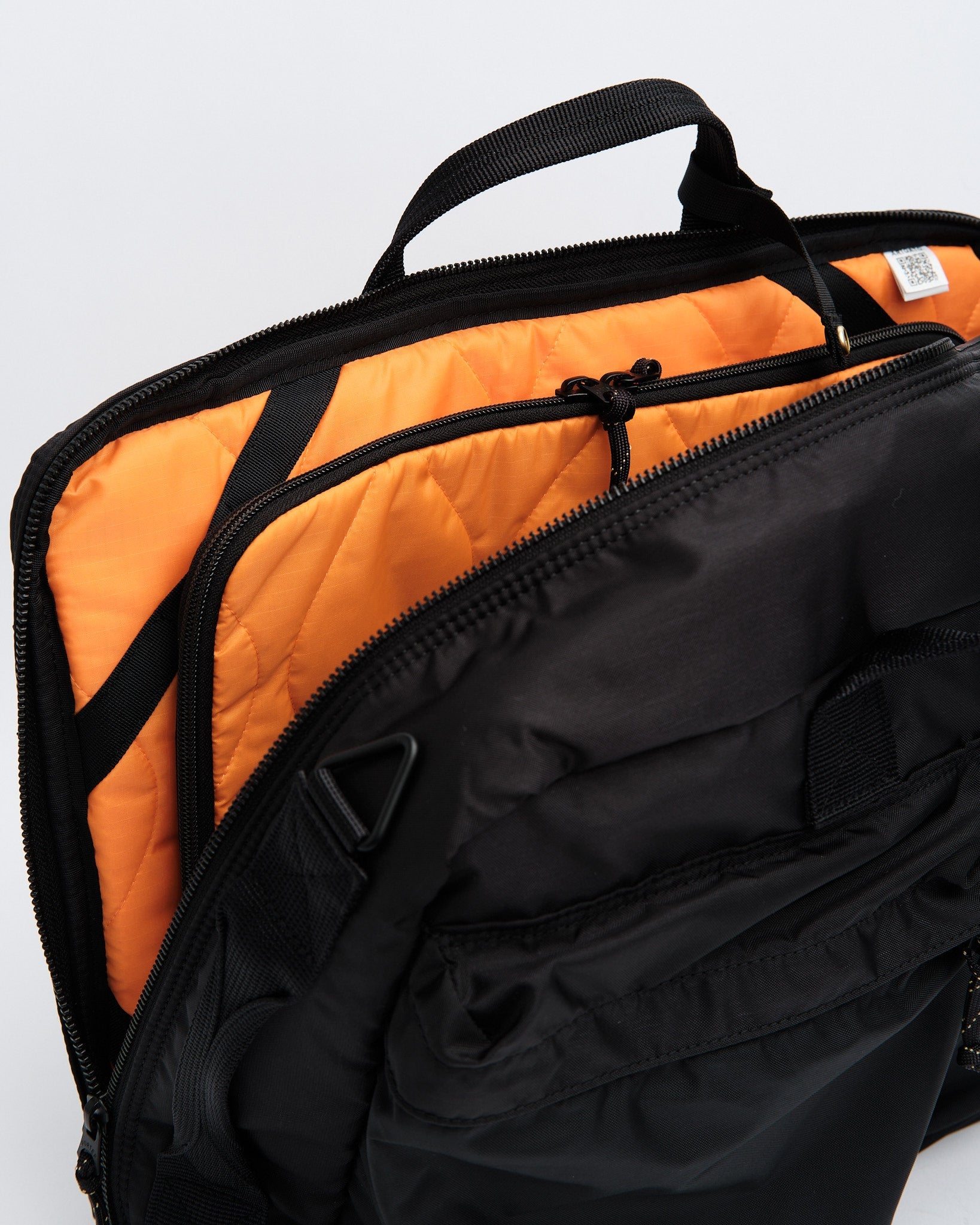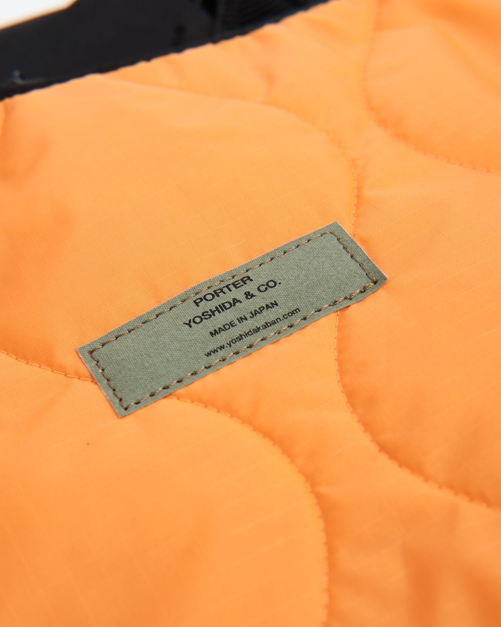 Fremstillet af industriklasse stof vævet med 210 denier 6 nylon stærk tråd, oprindeligt brugt til gummibåde, er tasken exceptionelt holdbar. Interiøret har en nødfarve orange foring, inspireret af foringer i militærjakker, og har quiltet ripstop nylon for øget modstandsdygtighed.