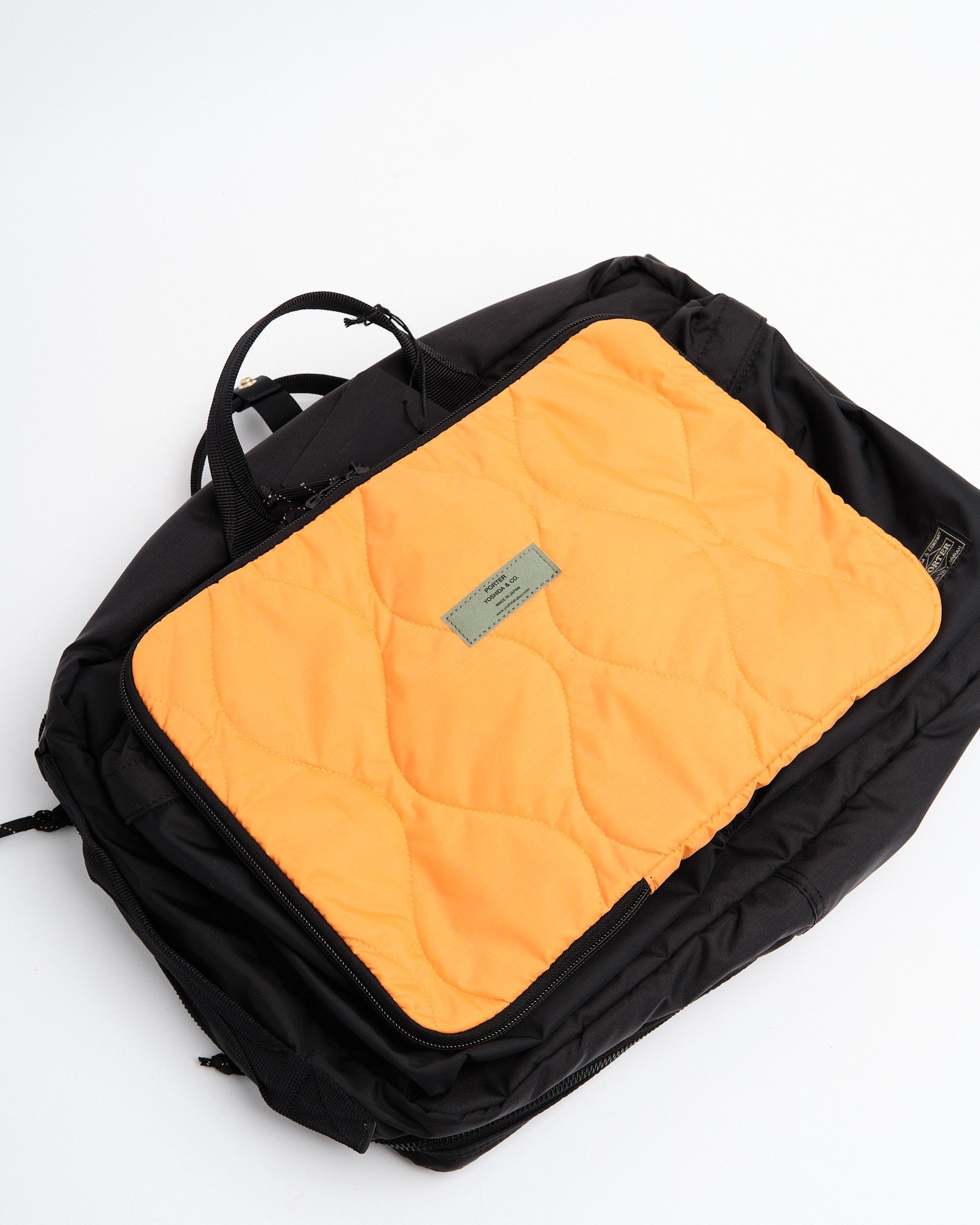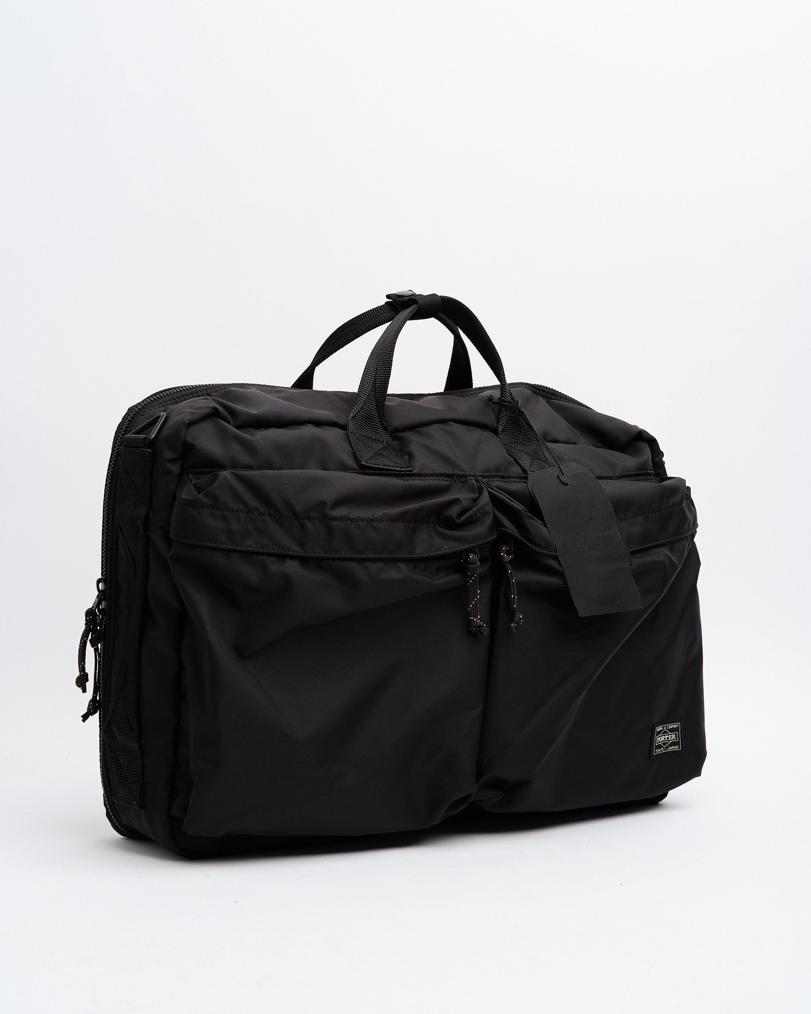 PORTER BY YOSHIDA Force 3-Way Aktentaske er en del af PORTER FORCE-serien, inspireret af militær æstetik og de tilfældige farveforskelle, der findes i militærgods. Et bemærkelsesværdigt træk ved dette design er den subtile farvevariation mellem stoffet i frontlommen og hoveddelen af tasken, hvilket skaber et udseende af at bruge forskellige stofpartier. Denne serie fejrer de uregelmæssige farveskemaer, der findes i militært tøj og tilbehør.