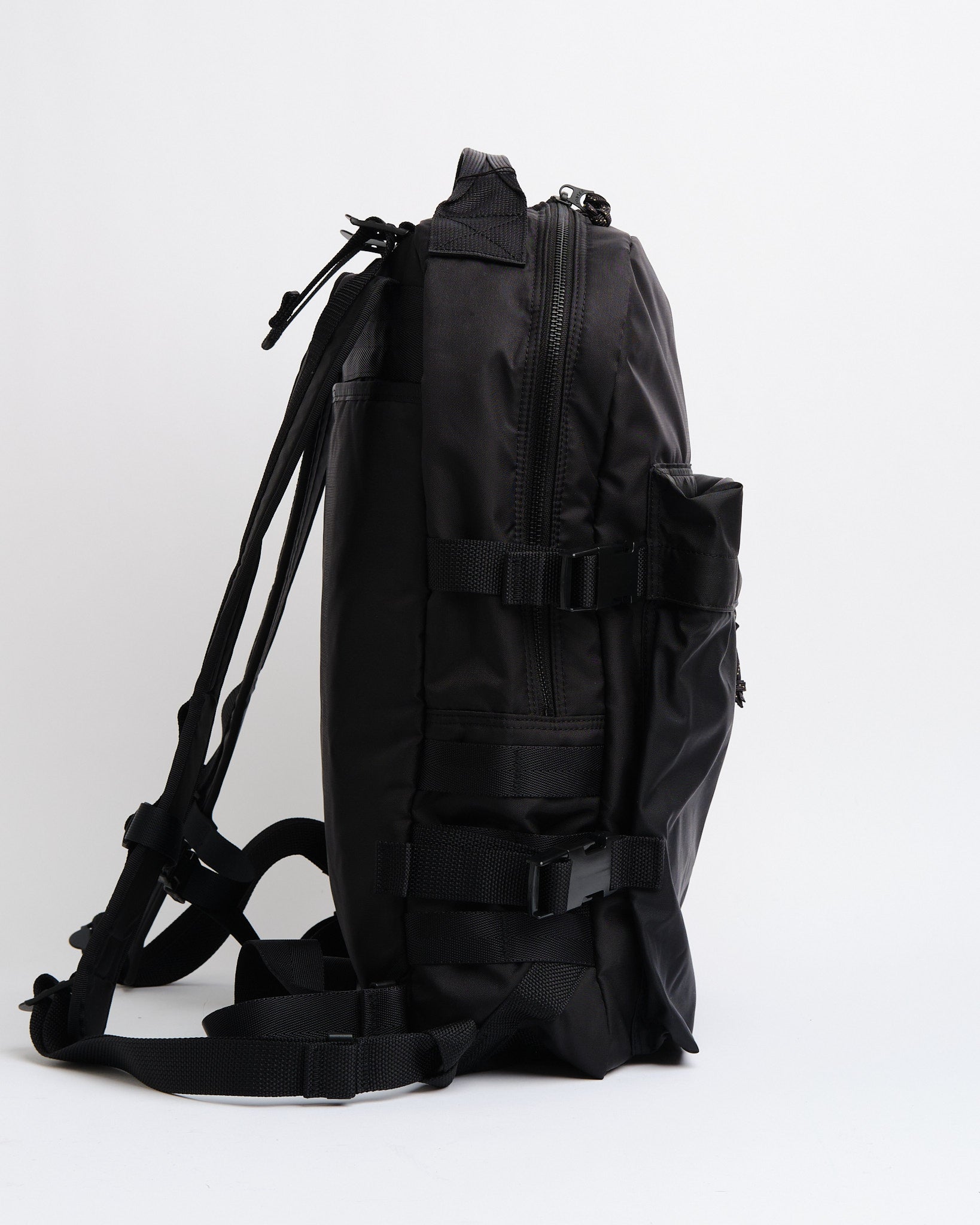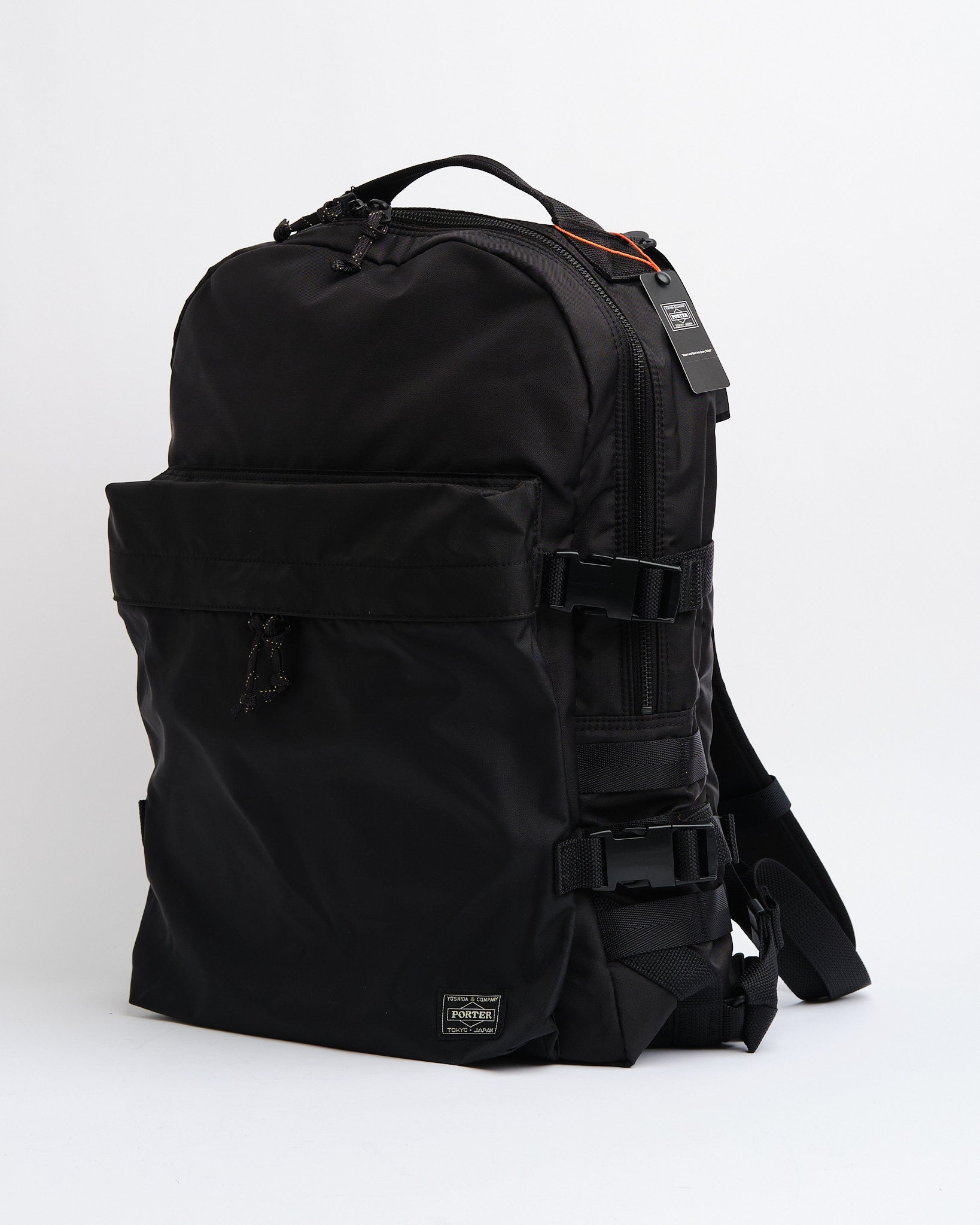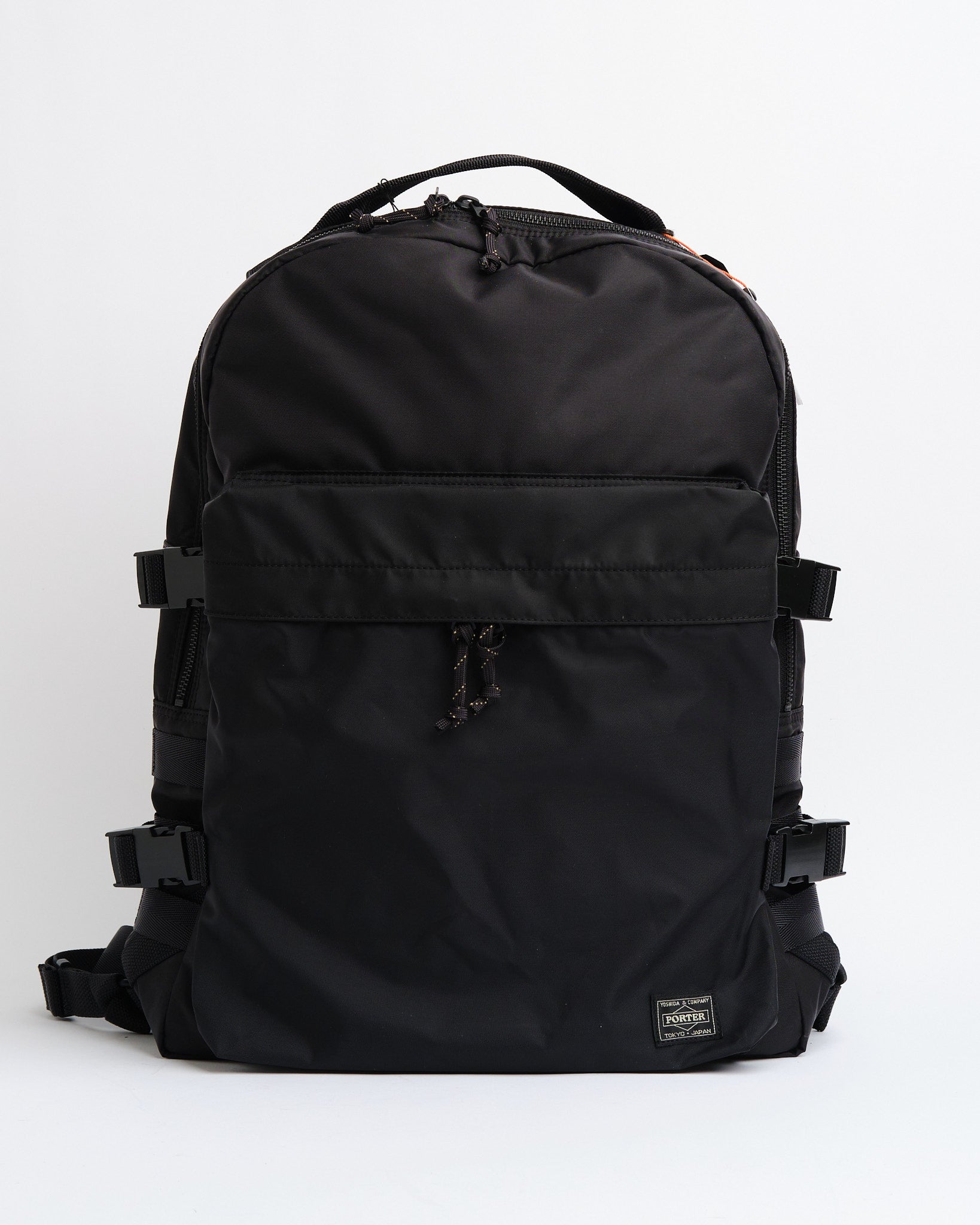 PORTER BY YOSHIDA Force Daypack er en del af PORTER FORCE-serien, som henter inspiration fra den militære stil og de tilfældige farvevariationer, der findes i militærgoder. Et nøgleelement i dette design er den subtile farveforskel mellem stoffet på frontlommen og kroppen af tasken, hvilket skaber illusionen af at bruge forskellige partier af stof. Denne serie fejrer de uregelmæssige farveskemaer, der findes i militærtøj og tasker, og viser charmen ved disse naturligt forekommende forskelle.