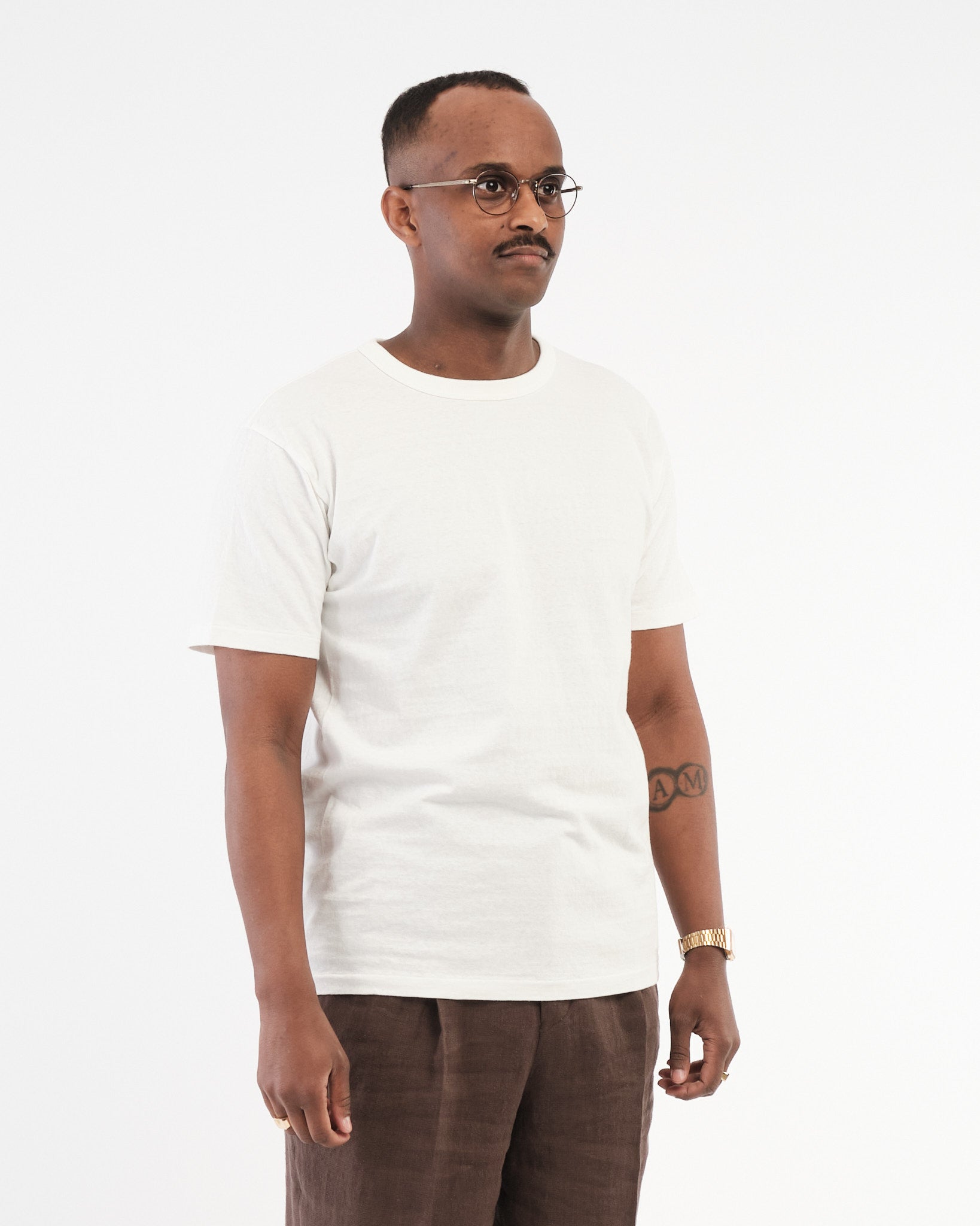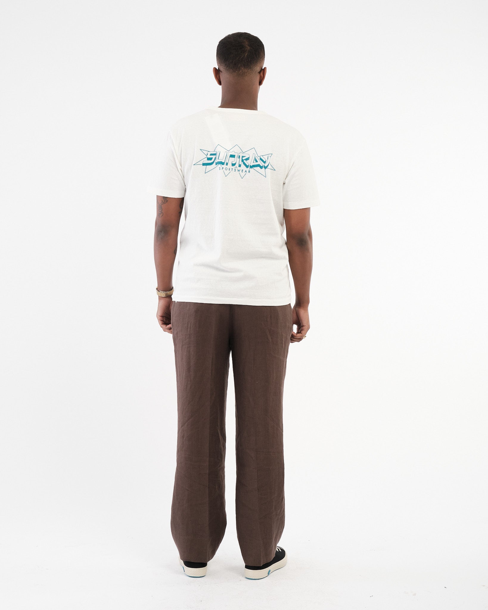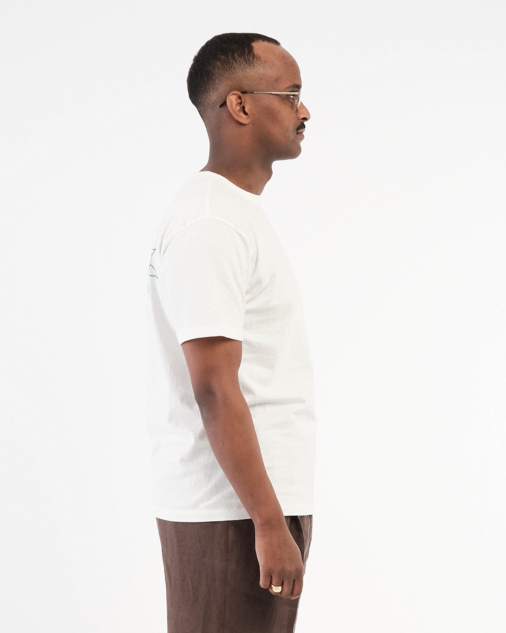 Præsenterer SUNRAY FROKEY FEJRINGS T-SHIRTEN i en livlig Blå nuance. Denne særlige udgave af t-shirten fejrer Sunrays dedikation til håndværk og tidløst design. Fremstillet i Japan ved brug af traditionelle loopwheel strikkemaskiner, er hver del omhyggeligt produceret uden sidesømme, hvilket sikrer enestående komfort og holdbarhed. 260gsm økologisk bomuldsstof giver en afbalanceret vægt - let nok til daglig brug, men alligevel betydelig nok til at bevare sin struktur over tid.