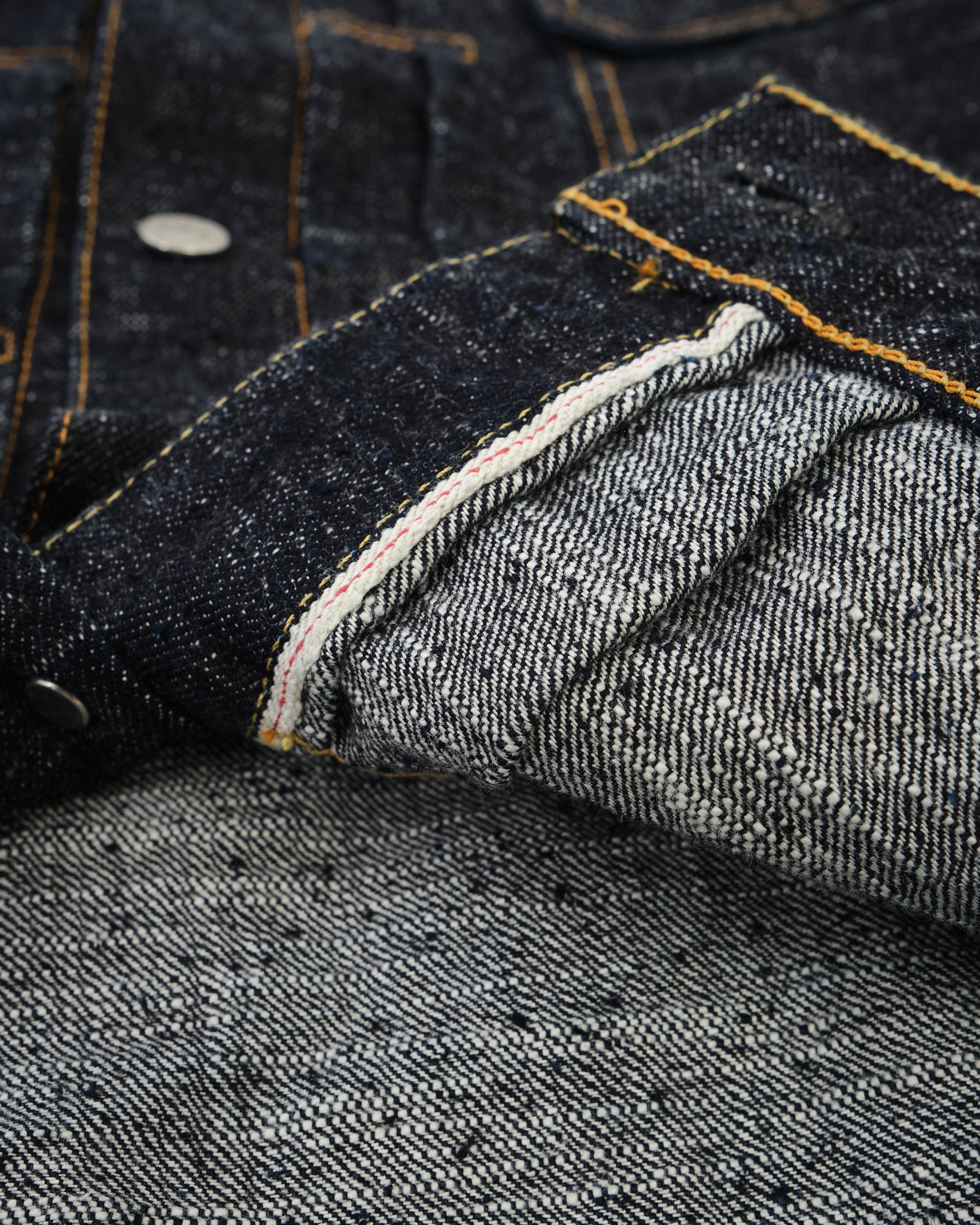 • 15oz GL3 Selvage Denim: Vævet for at opnå naturlege uregelmæssigheder og tekstur