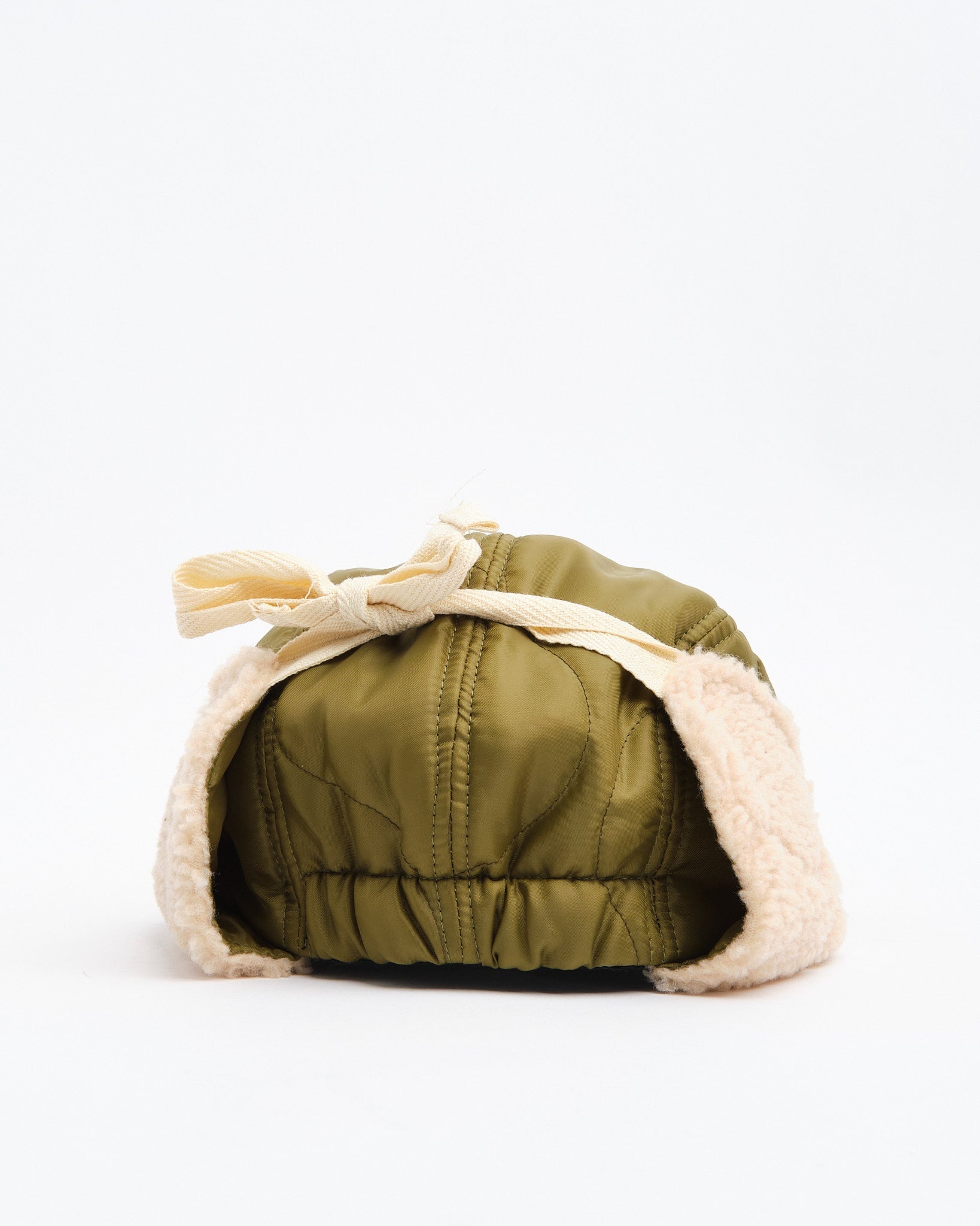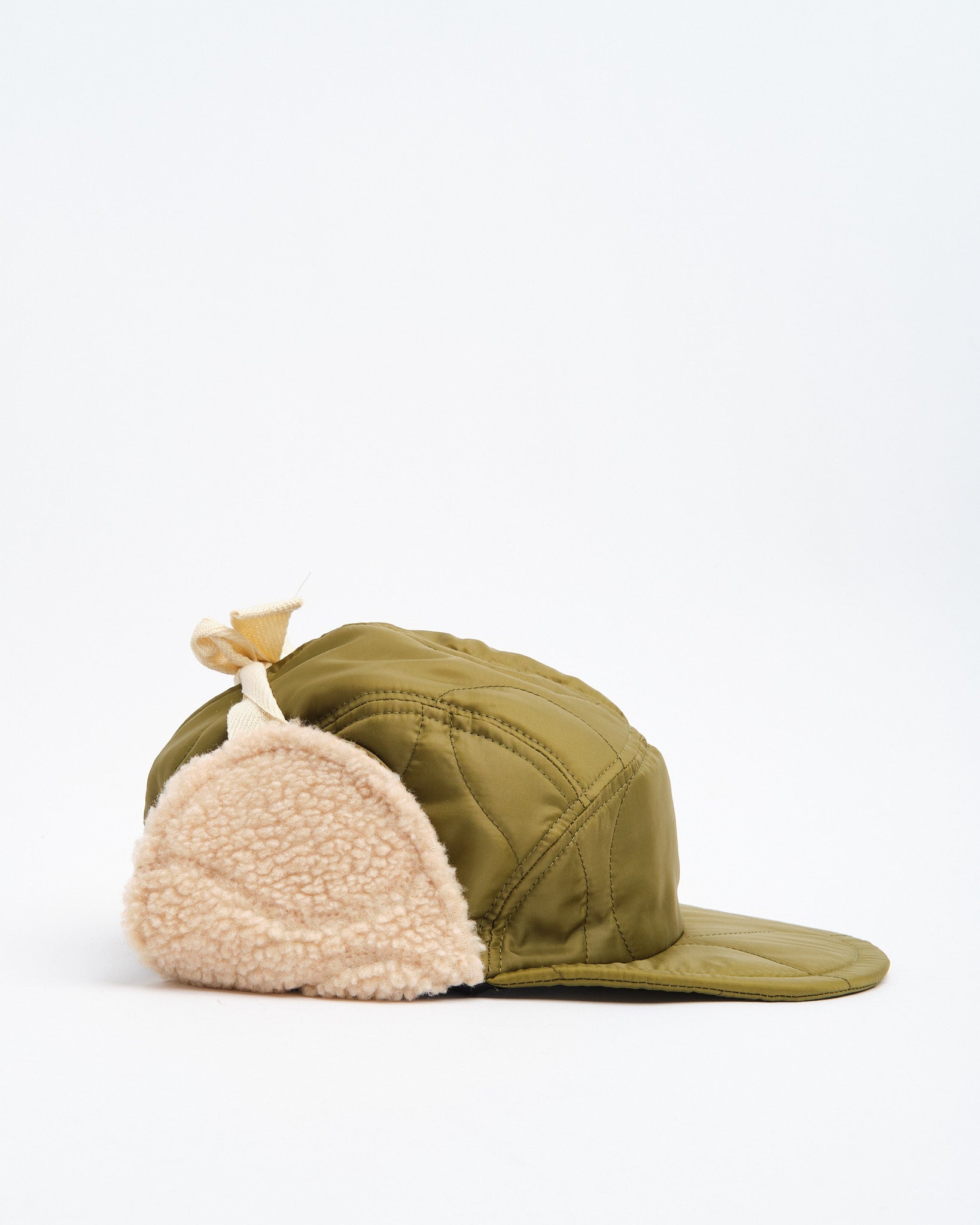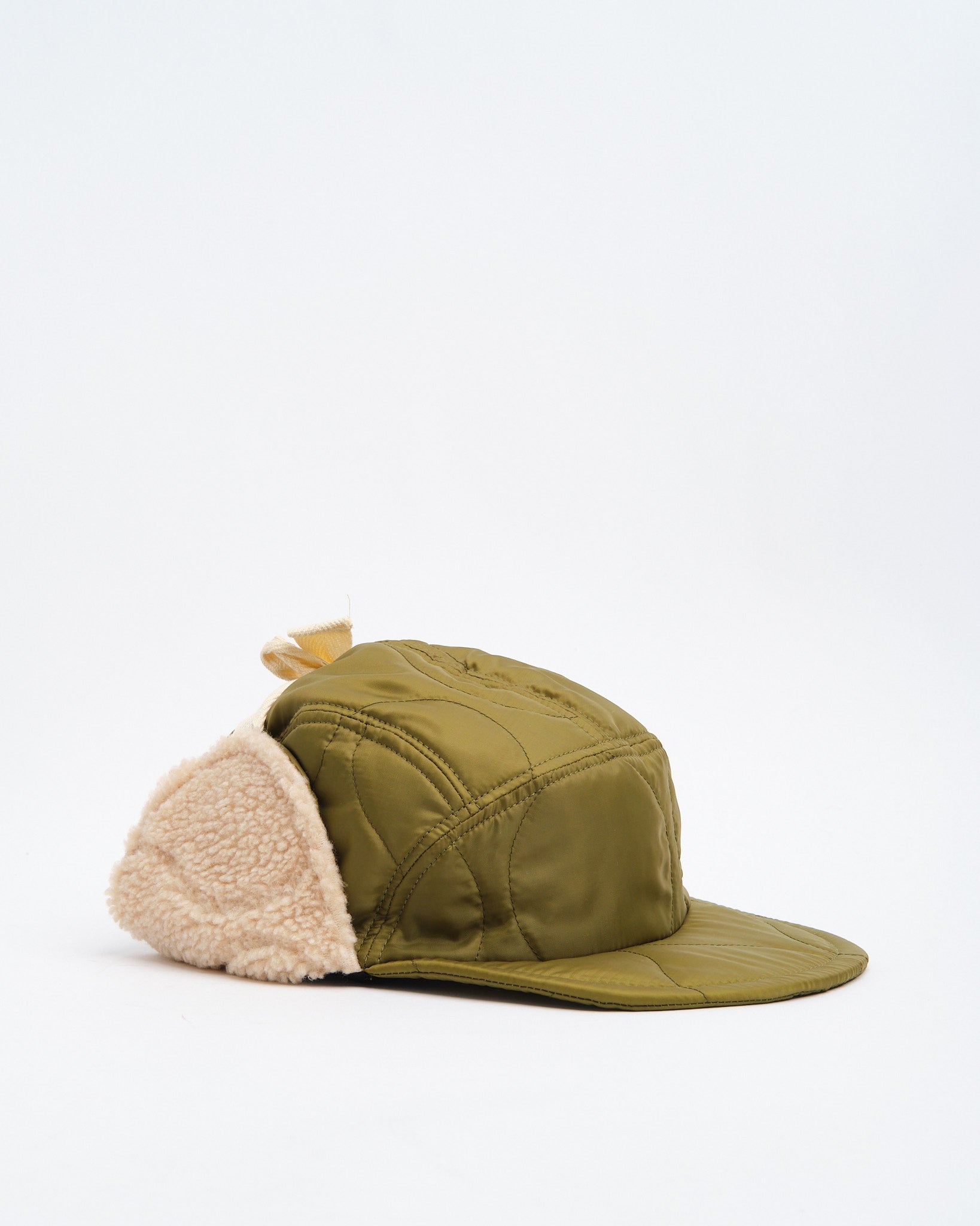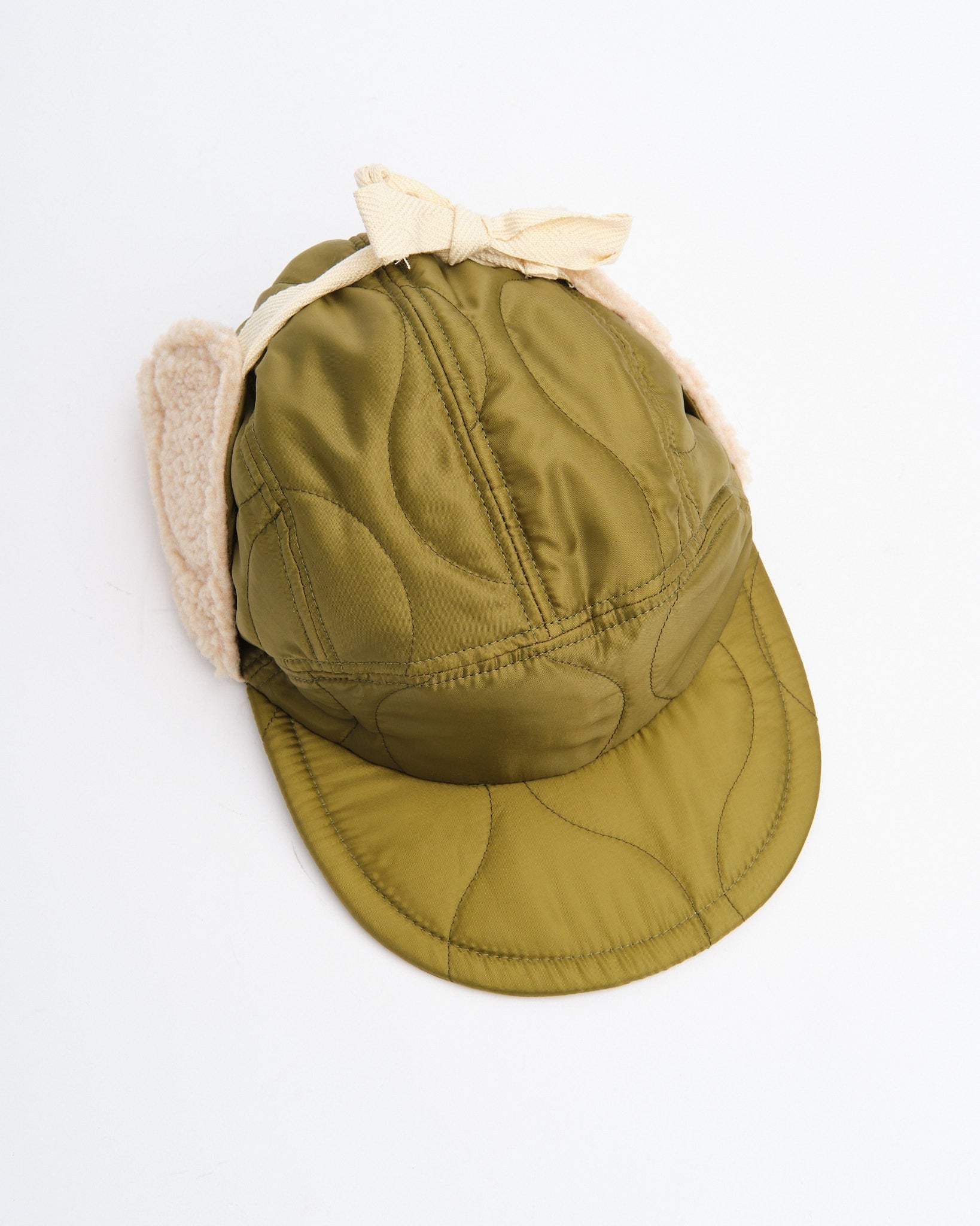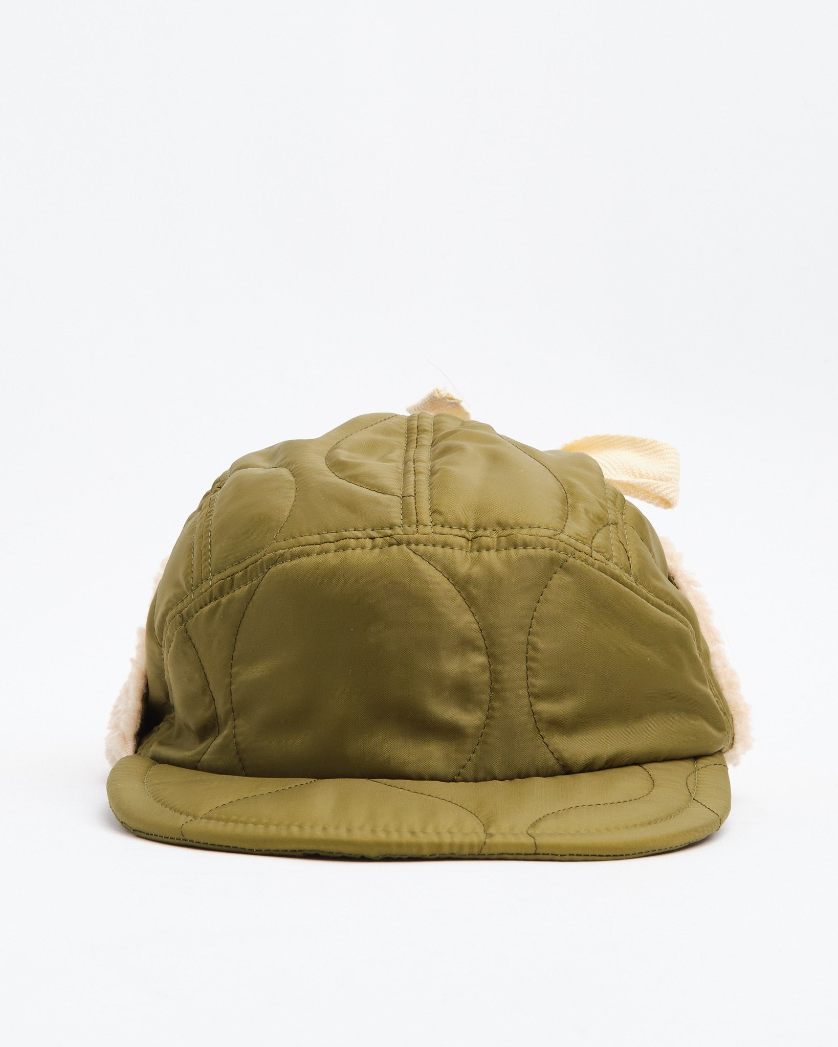 Halfmoon Cap Med Ører i Grøn fra Found Feather er et militærinspireret vinterstykke bygget til varme og komfort. Fremstillet i Japan af et quiltet nylon ydre med polyesterfyld og bløde boa fleece ørepaneler, er denne 4-panel kasket funktionel, let og gennemtænkt detaljeret. En semi-bred blød EVA skum skygge tilbyder struktur uden at være klodset, mens bomulds flade snørebånd og fuld-ryg elastik sikrer en sikker, fleksibel pasform. Afsluttet med håndstemplede detaljer, bomuldstwill foring og et QR-kodet plejeetiket, er det en utilitaristisk essentiel for kolde vejr missioner.