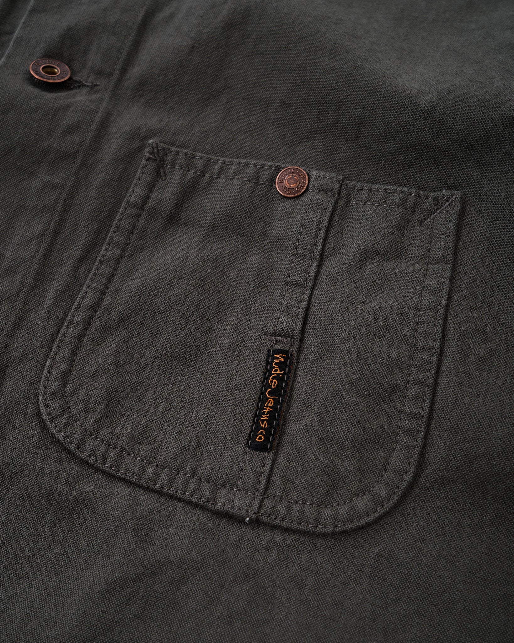 • Generøs pasform for autentisk arbejdsjakkesilhuet
