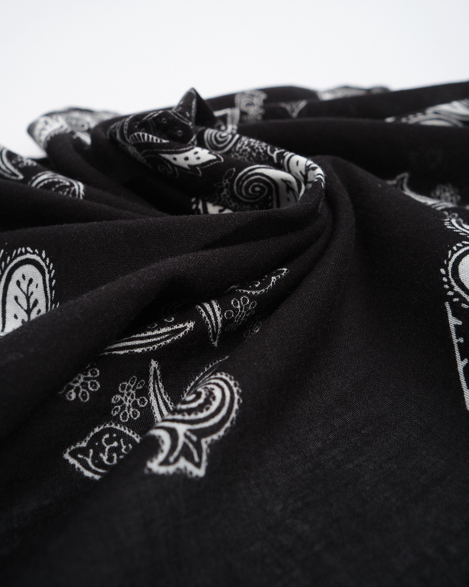 En bandana er en tidløs nødvendighed, og NUDIE JEANS CO. INGRID BANDANA PAISLEY BLACK er ingen undtagelse. Fremstillet af økologisk bomuldspoplin, tilbyder den en let, blød fornemmelse med en holdbar struktur. Stoffet er fuldt trykt med Nudies eget paisleymønster, hvilket skaber et karakteristisk og alsidigt udseende.