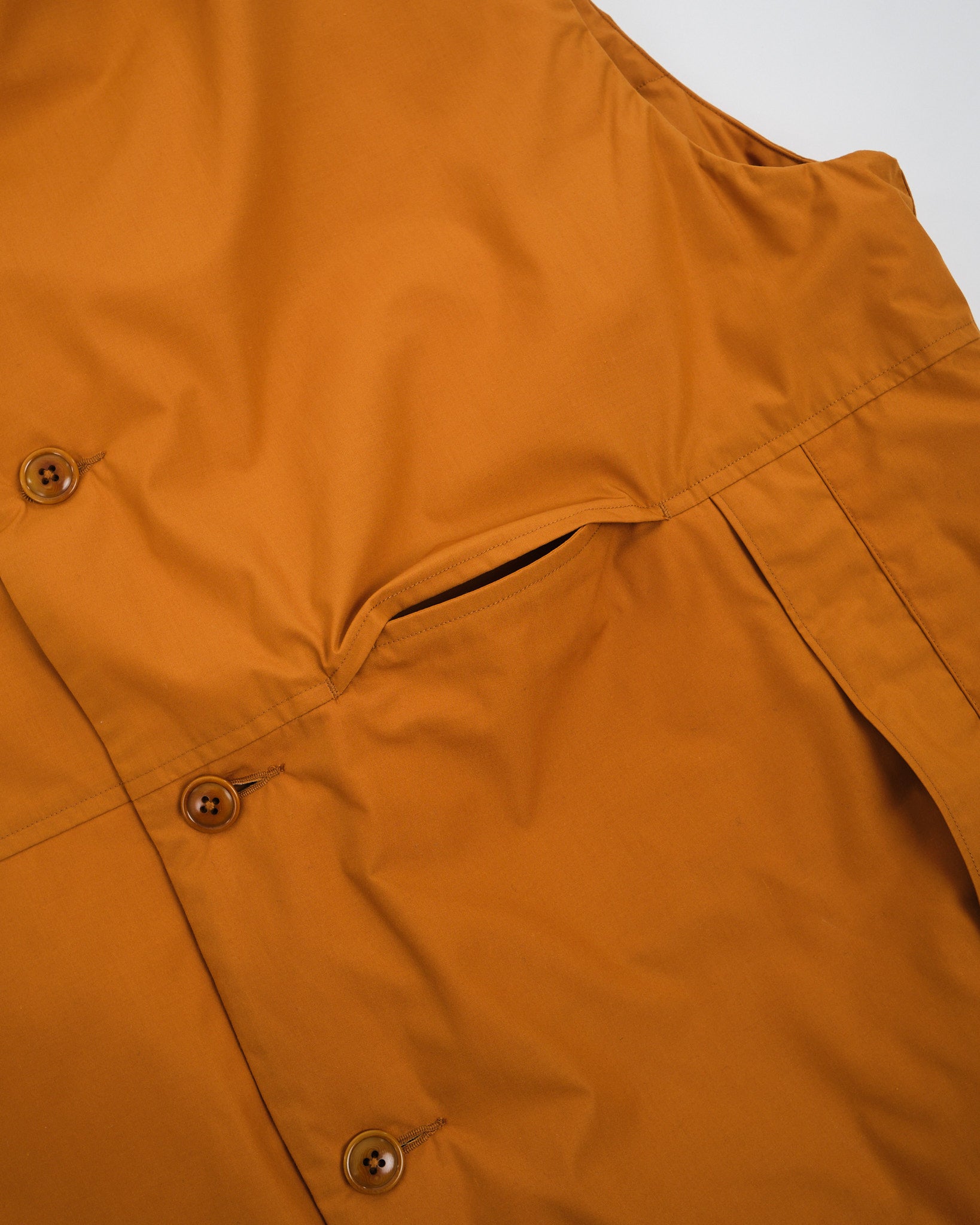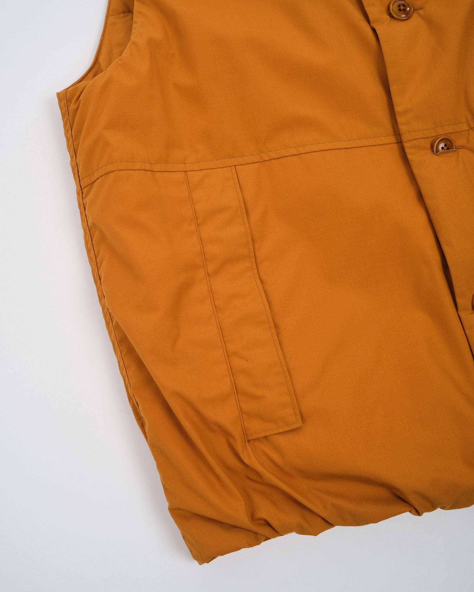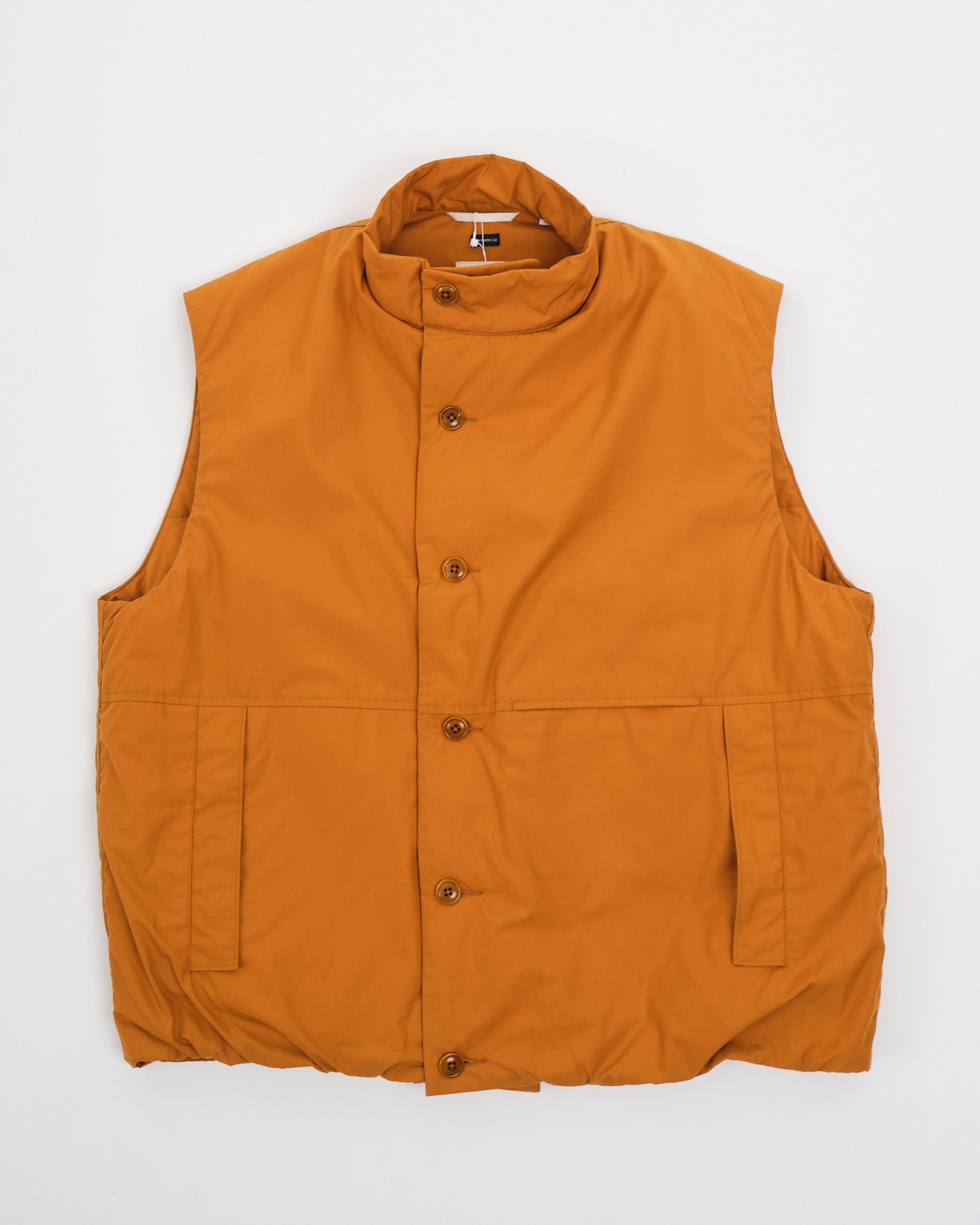 Dyk ned i varmen fra Nanamicas Insulationsvest, en blanding af klassisk og moderne i den strålende Sunset-farve. Dens dybe frontoverlap bekæmper klogt kolde vinde og låser din krops naturlige varme inde. Med et arv nik til klassisk udendørs tøj praler det ydre lag med en høj densitetsvævning af en polyester-bomuldsblanding, hvilket forstærker dets vejrbestandighed.