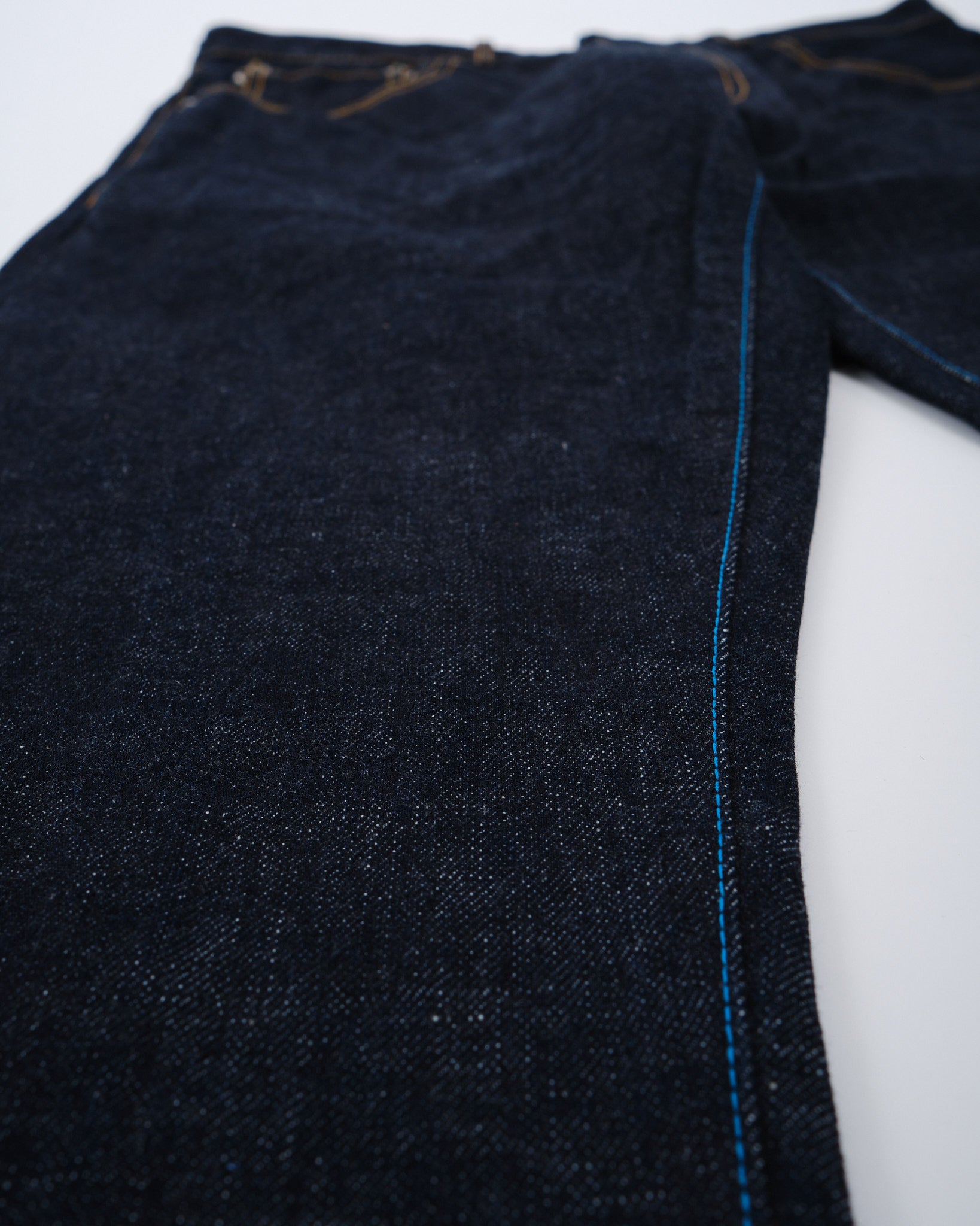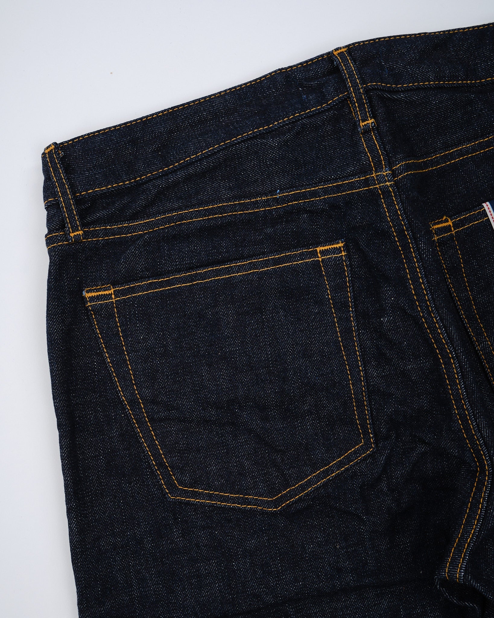 Superior stofkvalitet: Fremstillet af 14,8 oz amerikansk bomuldsselvage denim for holdbarhed og et unikt karakter.