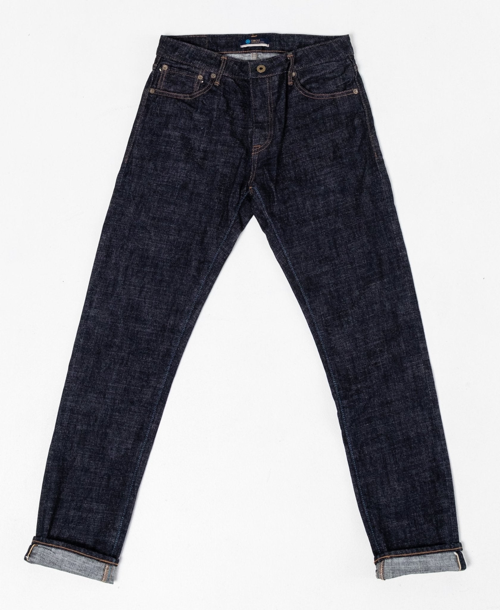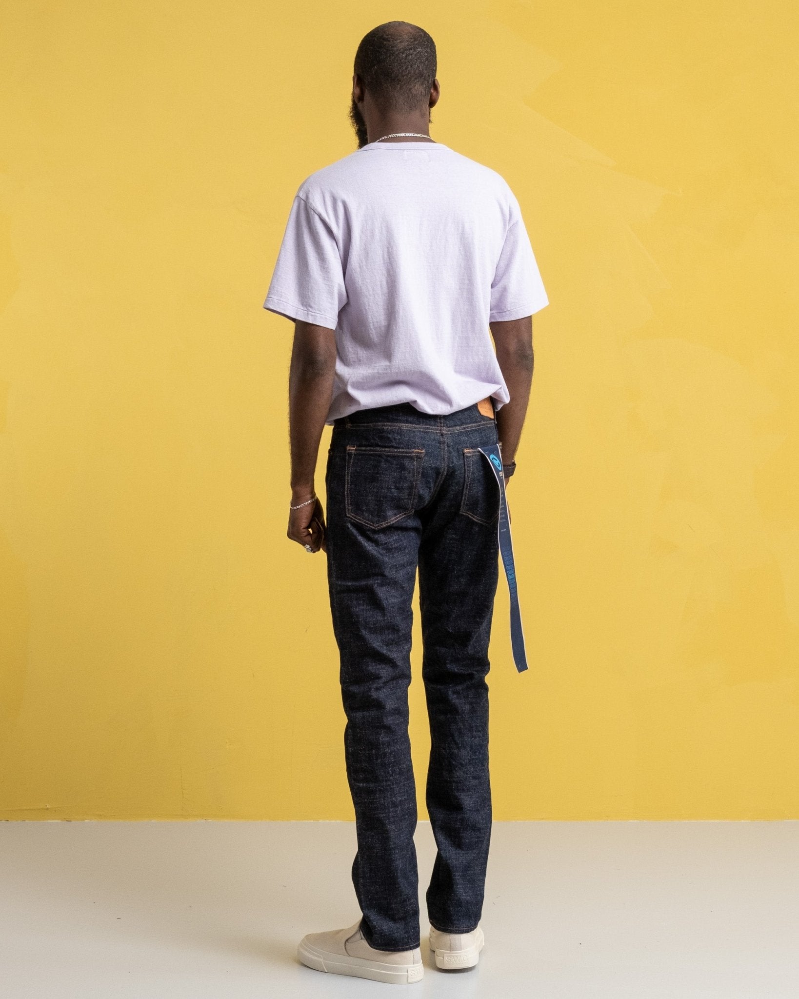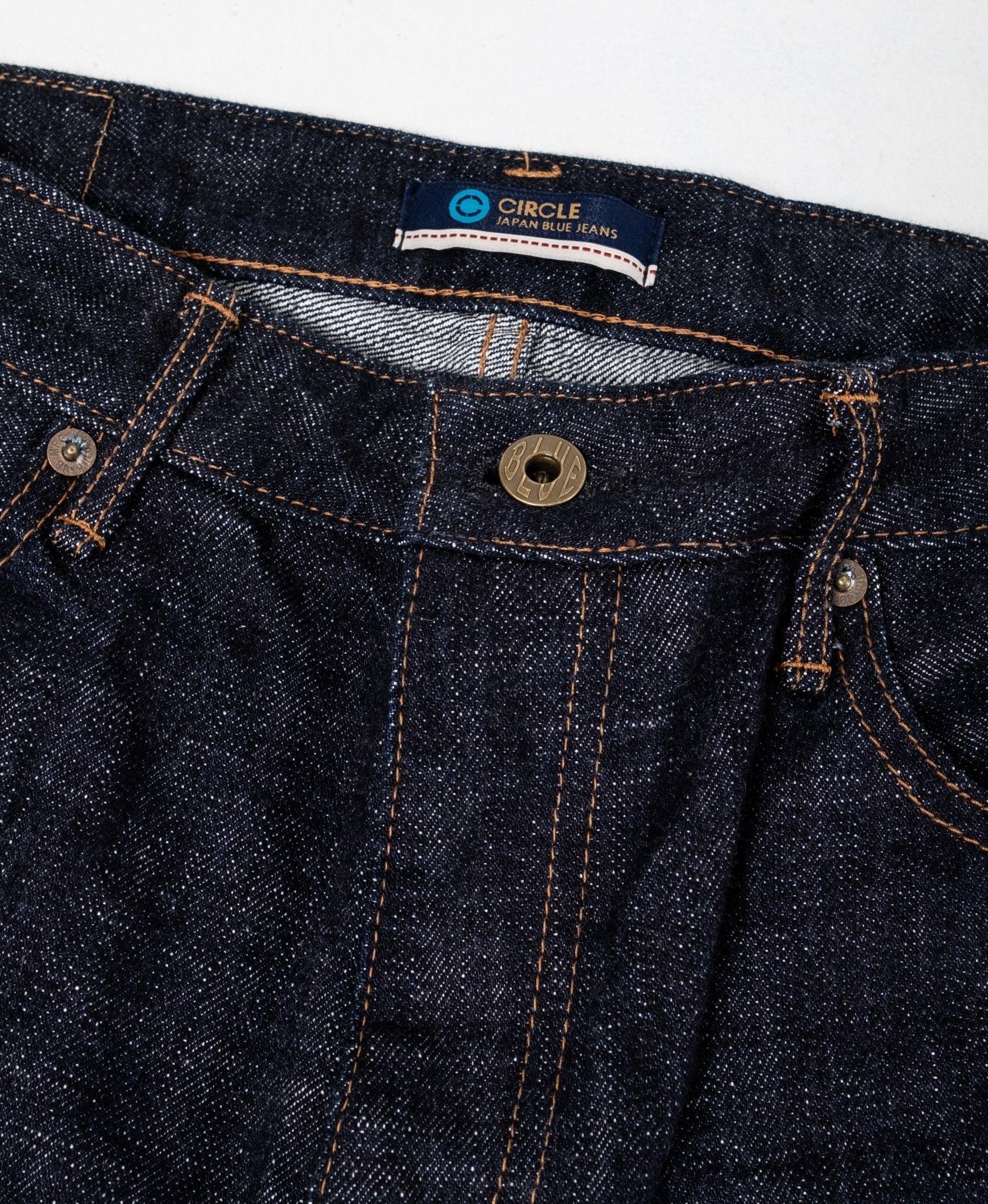 J366 Circle 16.5 Oz Straight Jeans fra Japan Blue Jeans. Den ligger et sted mellem slim og afslappet. Den har lidt plads omkring lårene og en fin tilspidsning fra knæet og ned. Det tunge-ounce vintage selvage denim er lavet af naturlig bomuld fra Cote d'Ivoire. Ved at sy det med et svagt tryk i en maskine, ender det færdige produkt som et håndlavet denim. Materialet er lidt råt i starten, men det vil gradvist blive glattere ved at have det på i et stykke tid.Lavet i Japan.