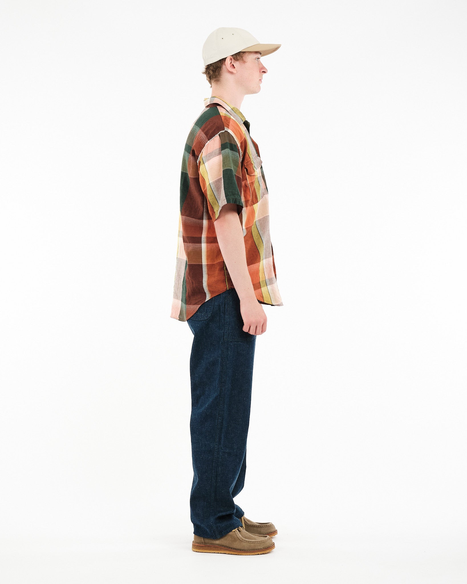 Dette er orSlow, der gør sommerarbejdstøj lige tilpas. Kortærmet Original Check Arbejdsskjorte (01-8067-C44) forener den afslappede komfort ved varmt vejr med den strukturerede, nytteprægede charme orSlow er kendt for. Fremstillet i Japan af blødt, let bomuld, kanaler det tilpassede ternet mønster vintage amerikanske arbejdsskjorter uden at gå fuld cowboy. Den er kasseformet, åndbar og skåret til at lægge løst lag på lag - ideel til at smide over en tee eller bære for sig selv. De dobbelte brystlommer, lige kant og arbejdstøjsinspirerede knapper afrunder den til noget, der føles nostalgisk, men frisk. En sæsonbestemt hovedbestanddel fra et af Japans mest konsekvente arvemærker.