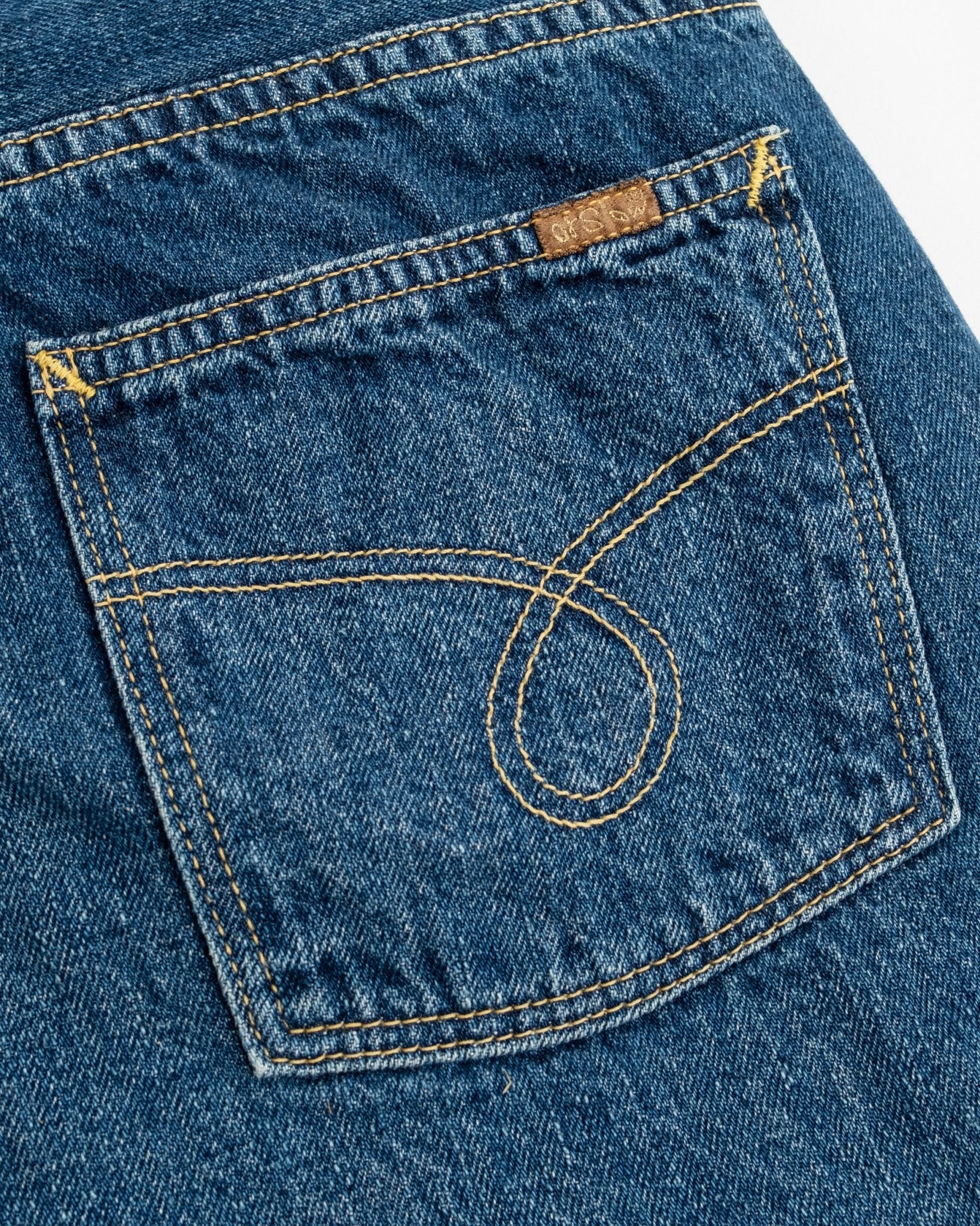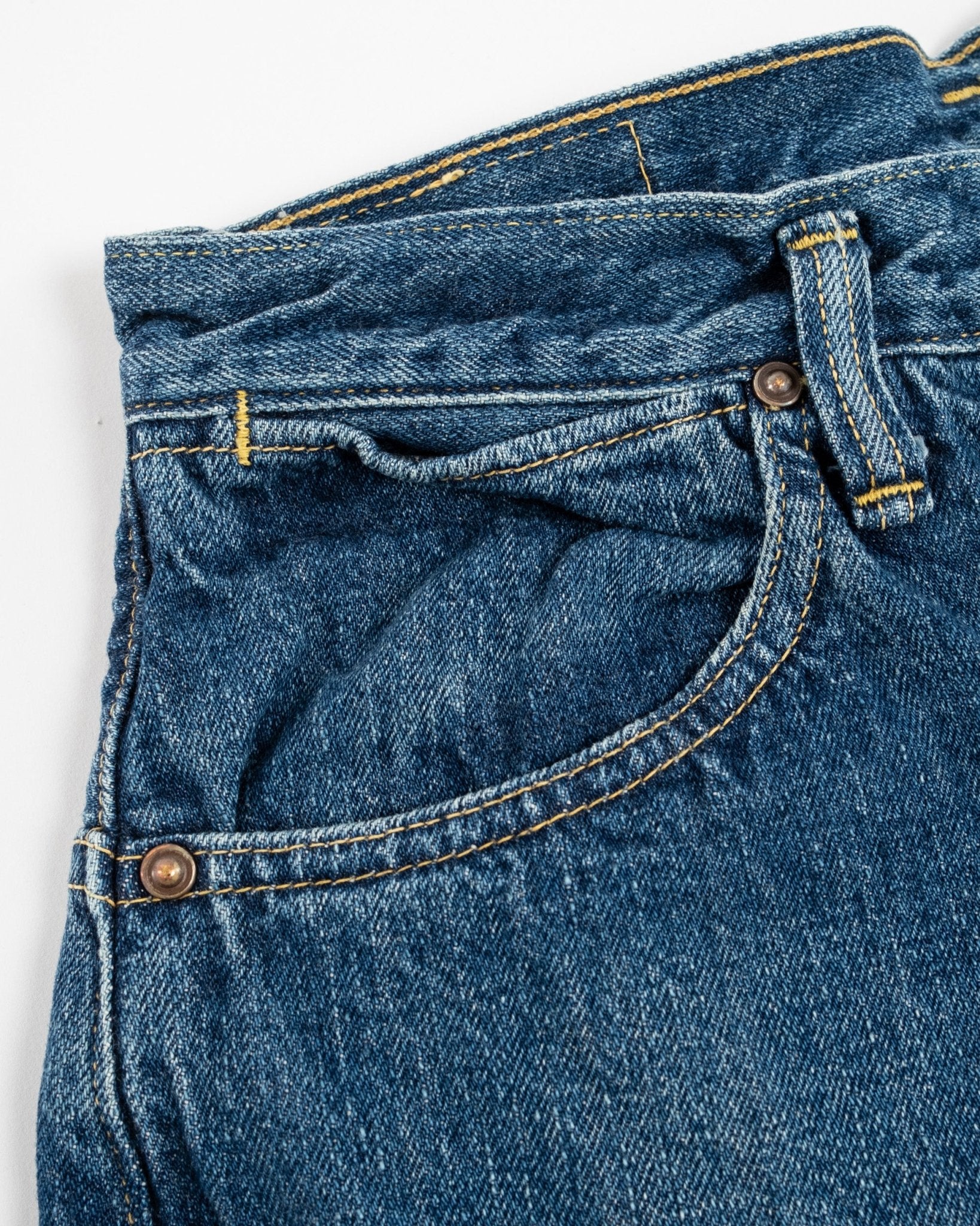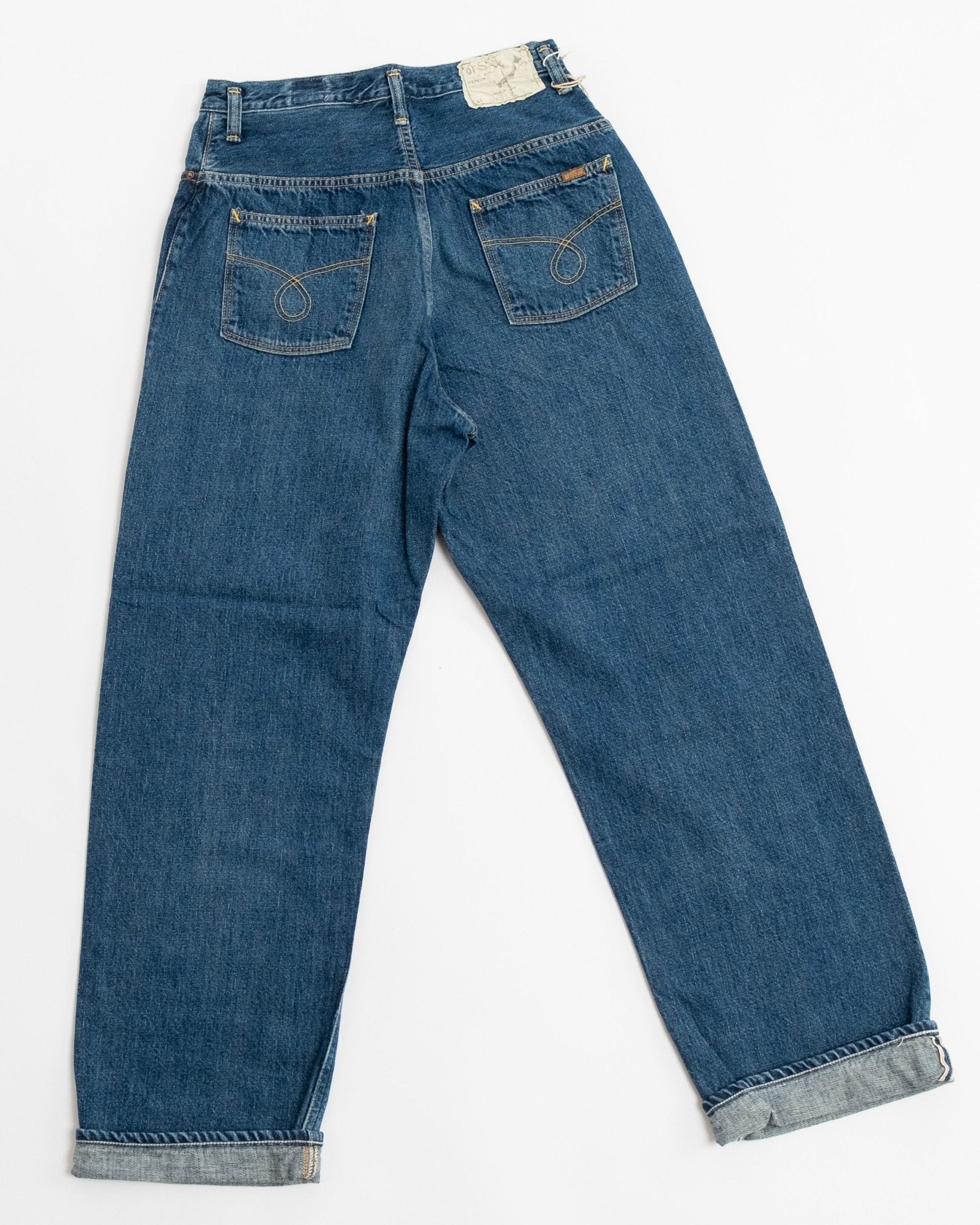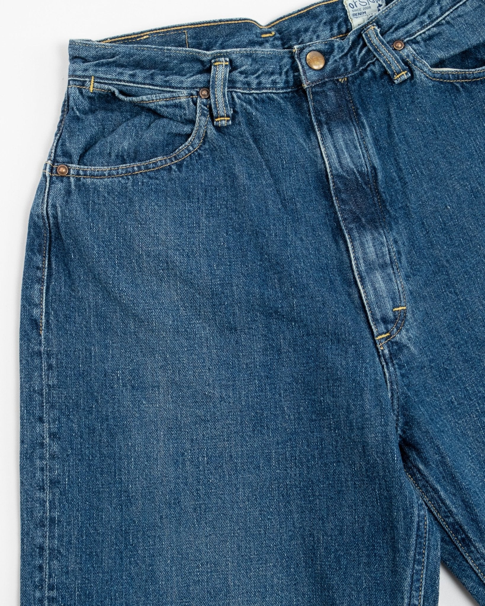 Inspireret af 1950'erne, med høj talje, længere længde, bredere lår og lige ben. Denim fra den tid var designet til at følge kroppens kurver og være behagelig nok til at have på hver dag. Denne form for denim er perfekt for dem, der ofte finder denim for 'stor' i taljen eller for stram om lårene, da de er designet med en let kurve, derfor 'kurvet søm'. Lavet af 13,5 oz denim specialfremstillet for orSlow, og vasket én gang, vil denimstoffet føles blødt fra første brug, og denne vaskeproces fremhæver en smuk blå farve i denimstoffet. Denimstoffet er blevet vasket, så benene vil se en smule snoede ud, typisk for vintage denim, og dette betyder også, at denimstoffet ikke vil krympe. Knapflue. 100% bomuld. Fremstillet i Japan.