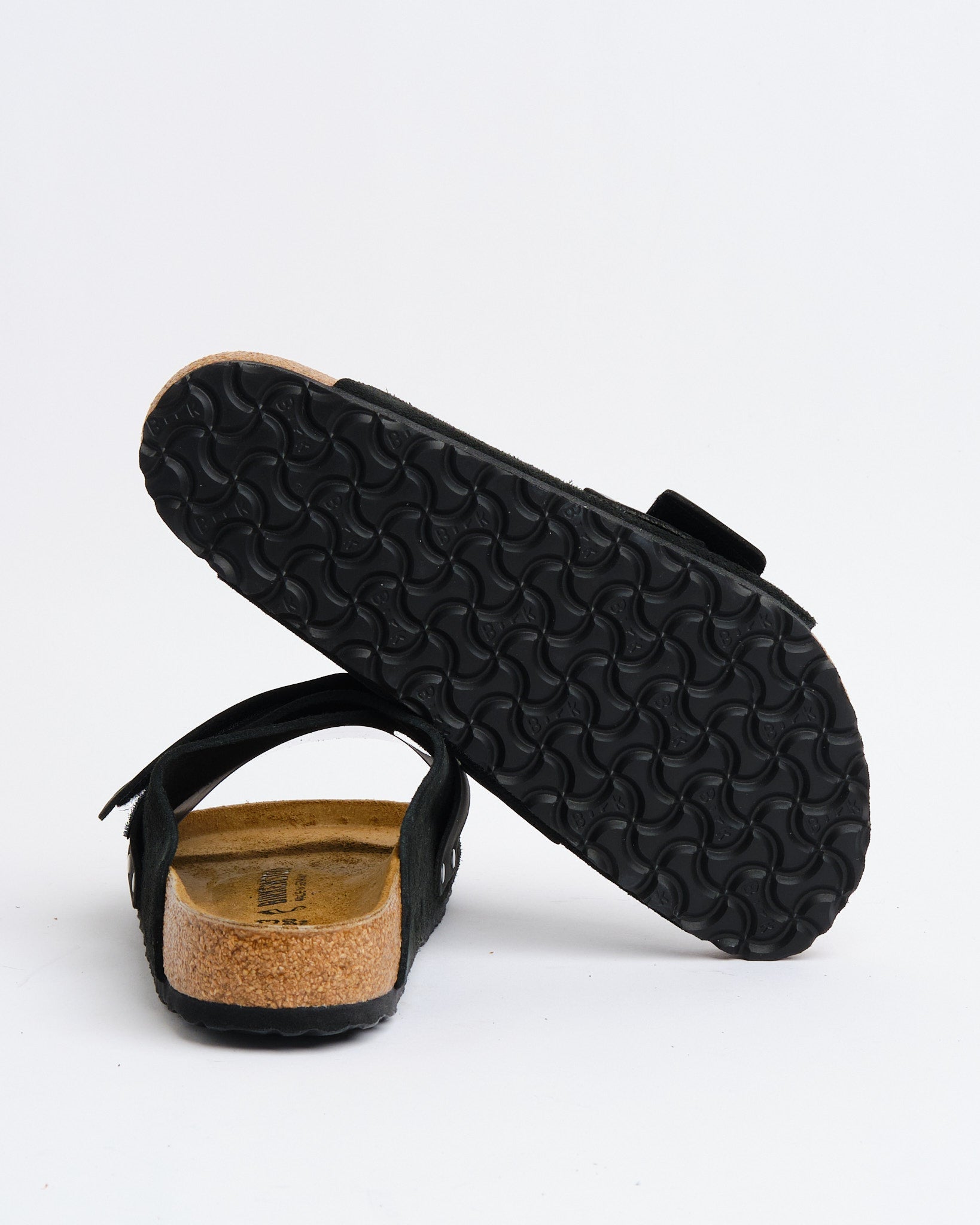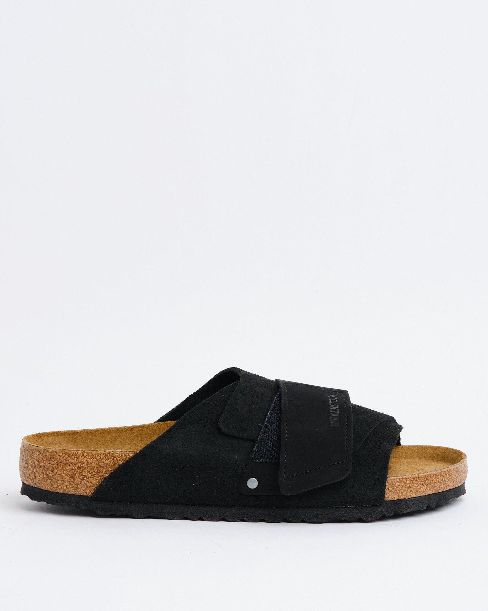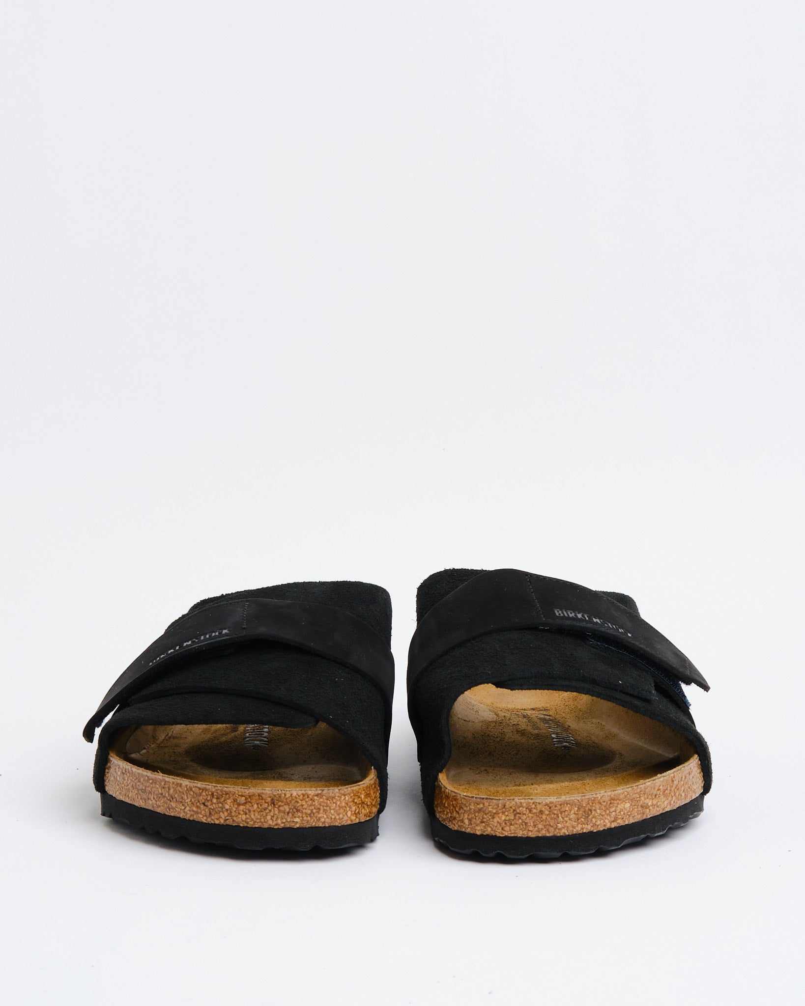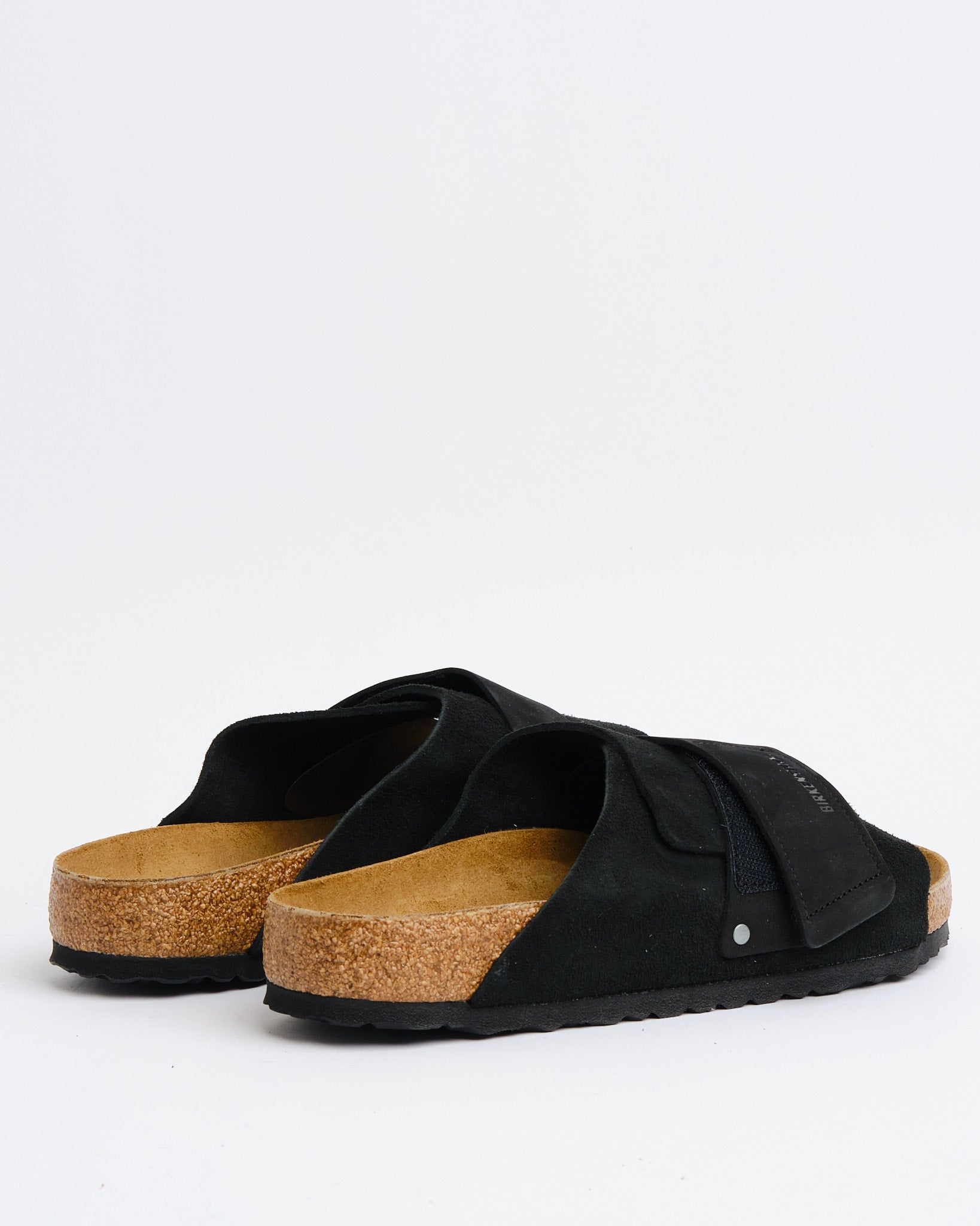 Birkenstock Kyoto er din go-to afslappede sandal, der låner sit distinkte flair fra den ikoniske Zürich-model. Med et kompakt design, der har en individuelt justerbar spænde, sikrer den et tætsiddende fit med optimalt greb. Overdelen kombinerer blødt ruskind og topkvalitets nubuck læder, der former sig efter din fod for komfort som et andet hudlag. Den anatomisk formede kork-latex fodseng tilbyder uovertruffen støtte, og EVA-sålen giver letvægts holdbarhed. Alle disse funktioner kommer med mærket "Made in Germany" for kvalitet.