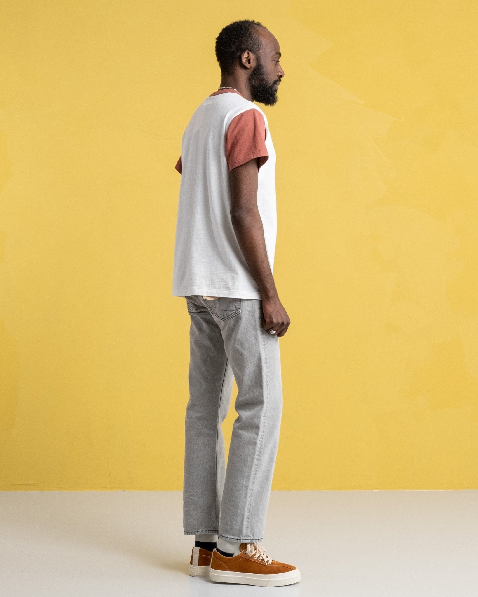 La'ie SS T-Shirt Off White / Spiced Apple "Brooklyn Robins" fra Sunray Sportswear. Sunray T-shirts har et traditionelt fit inspireret af følelsen fra 50'erne. Afslappet og en smule kortere ærme end Haleiwa med kontrasterende farver som en hyldest til Brooklyn Robins baseballhold. Kraven, rib-designet og stofferne er også traditionelle. 260 g. Fremstillet i Japan.