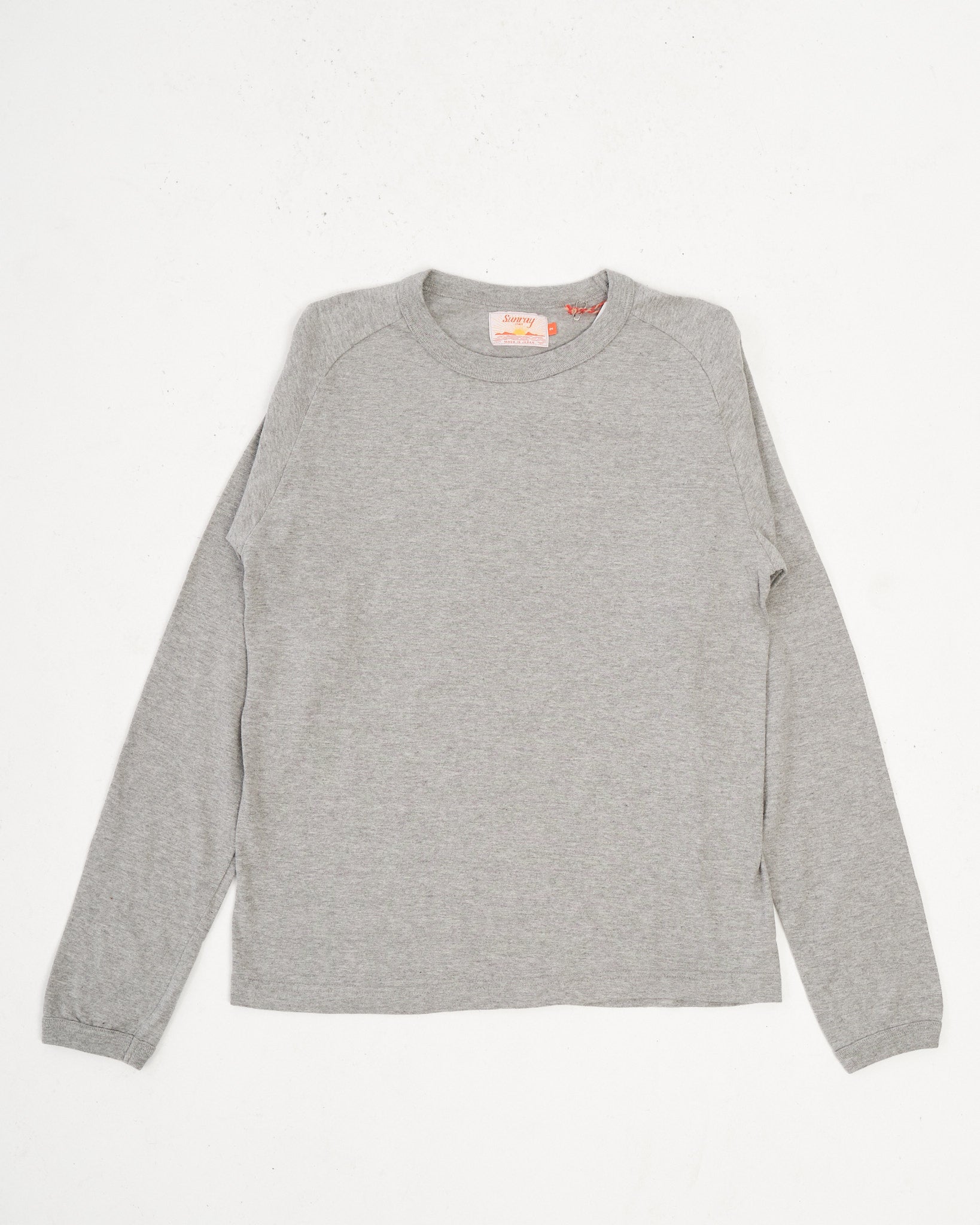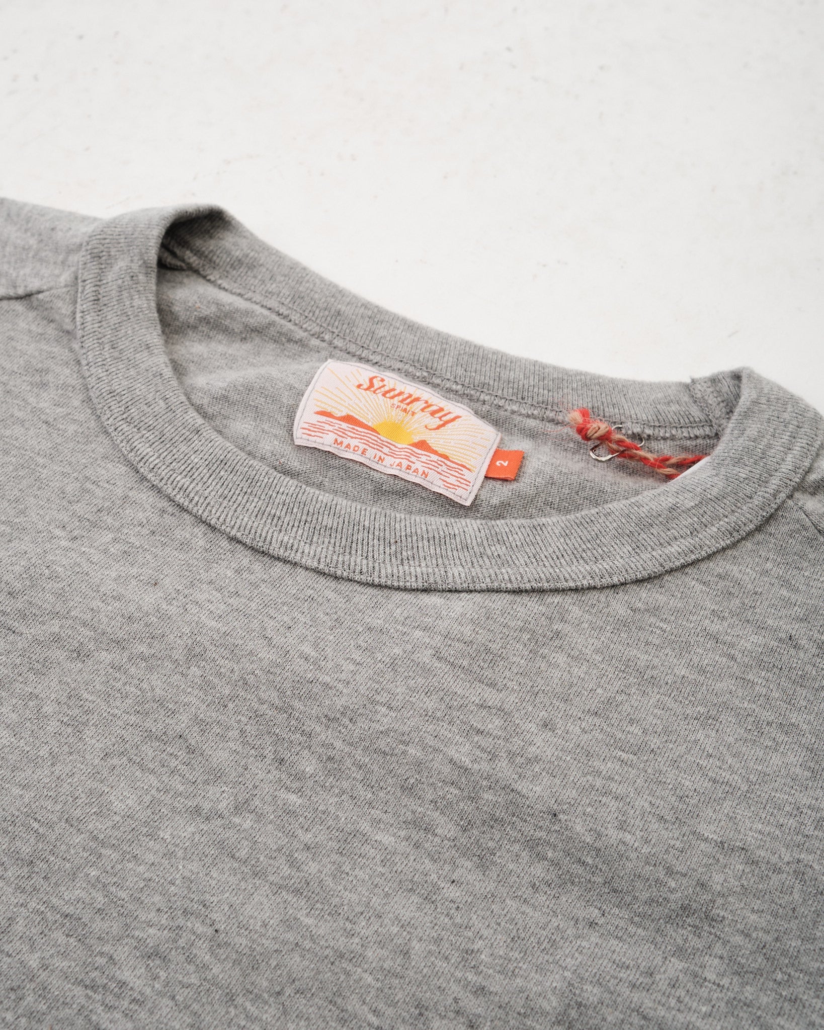 Laka LS T-Shirt Hambledon Grey fra Sunray Spirit. Sunray T-shirts har et traditionelt fit inspireret af fornemmelsen fra 50'erne. Afslappet med en regulær pasform. Kraven, rib-designet og stofferne er også traditionelle. 260 g genanvendt Ochiwata jersey. Fremstillet i Japan.
