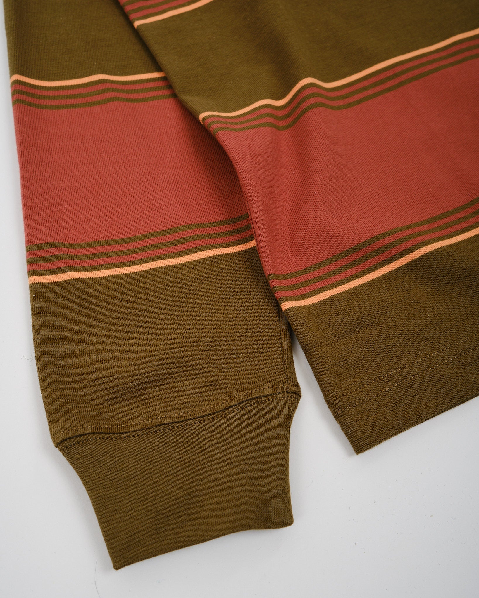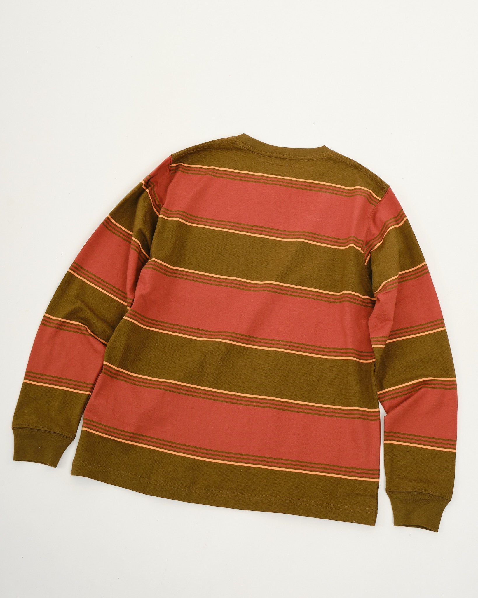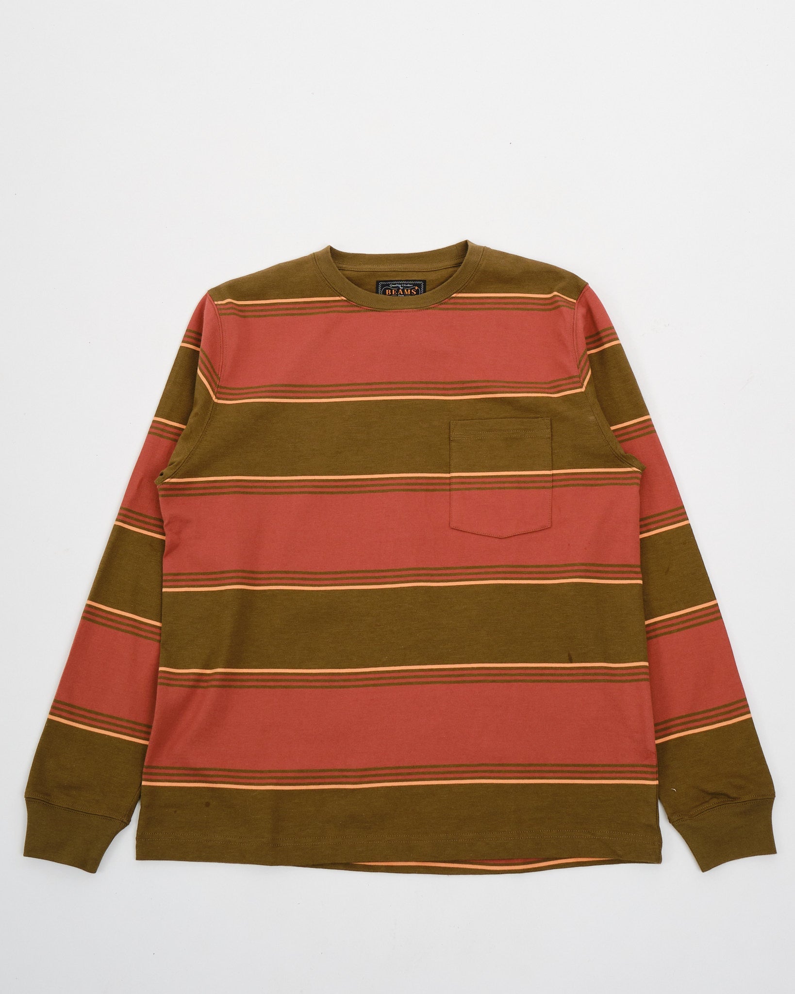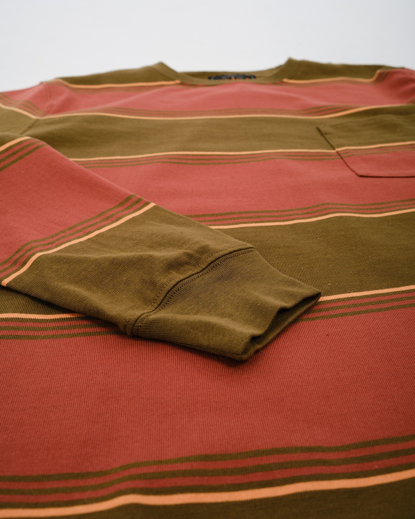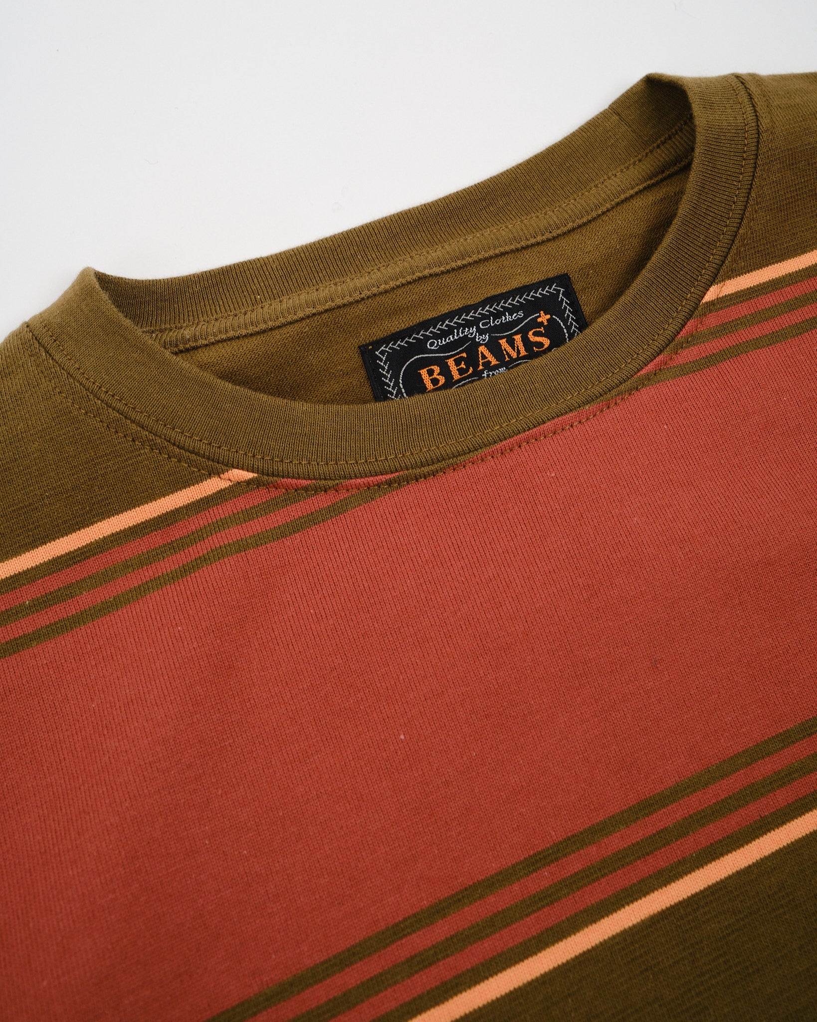 Oplev den tidløse appel af mode med Beams+ Pocket Tee Stripe Olive. Fremstillet ved hjælp af en blanding af garner, udstråler denne t-shirt en dejligt tekstureret fornemmelse, der indkapsler essensen af retrostil. Lavet af 100% bomuld hentet fra Indien, giver den en middelvægtig fornemmelse egnet til alle sæsoner. Det olivengrønne stribede mønster komplementerer perfekt funktioner som en halsudskæring, manchetter og en bekvemt placeret brystlomme. Fuldført med kanter, garanterer denne t-shirt et look, der aldrig går af mode.
