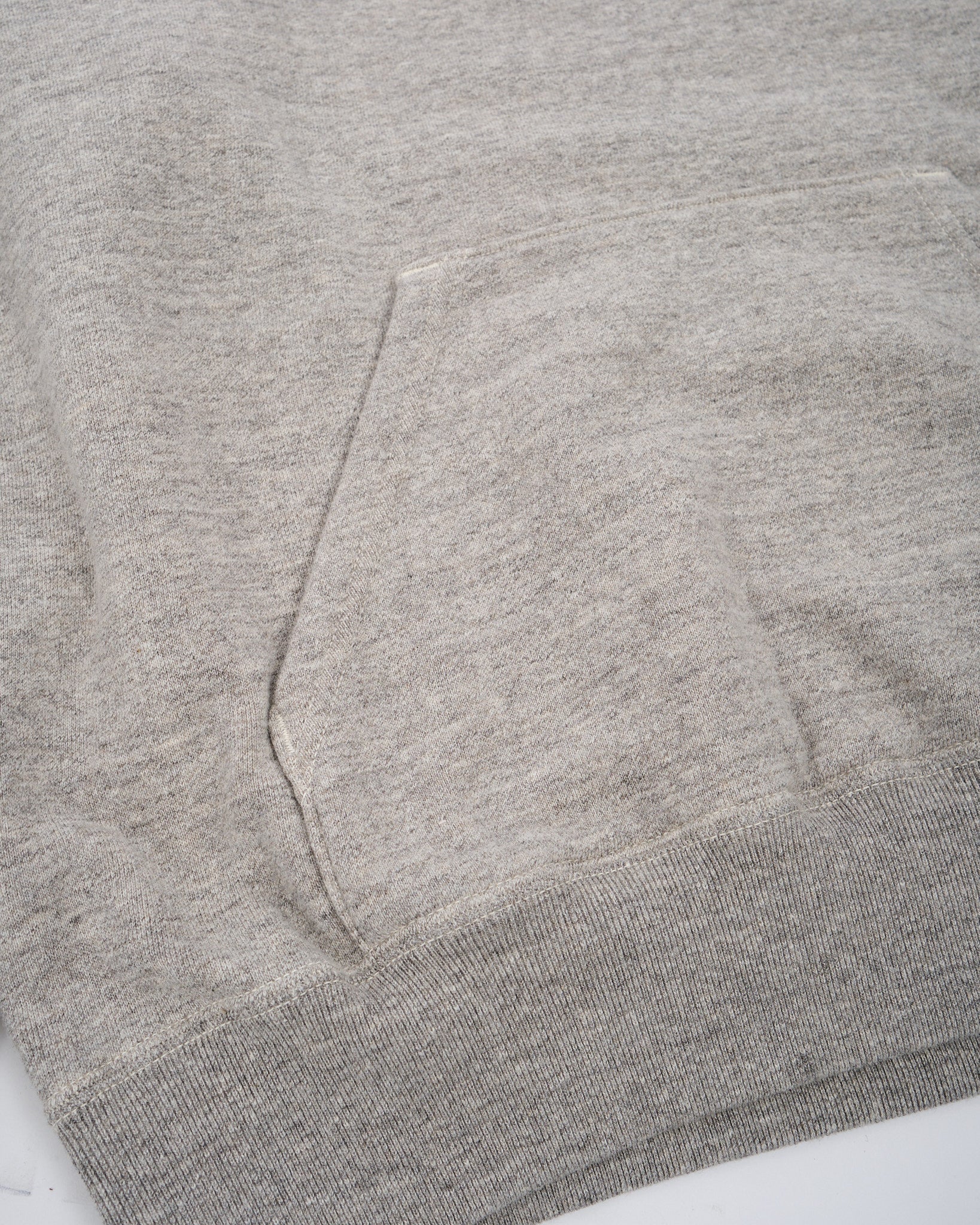 Den orSlow Loop Wheel Hooded Sweatshirt i Heather Gray er en hyggelig essentiel inspireret af vintage amerikanske hættetrøjer. Fremstillet i Japan ved brug af traditionelle loopwheel strikkemaskiner, kombinerer den et blødt 100% bomuldsstof med ekstraordinær holdbarhed. Den afslappede pasform, raglanærmerne og de ribbede manchetter og kant sikrer maksimal komfort og ubegrænset bevægelse. En jersey-foret hætte med justerbare snore og en foran kængurulomme tilføjer funktionelle detaljer til dette tidløse stykke. Perfekt til lag-på-lag eller at have på som den er, den legemliggør orSlows forpligtelse til langsomt fremstillet kvalitet og tidløst design.