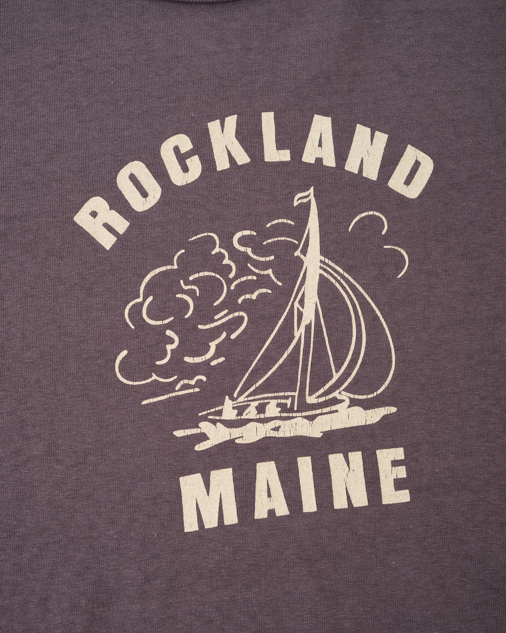 Med en moderat løs halsudskæring, naturligt falmet krop og et slidt "Rockland"-print, bærer den charmen af en gammel klassiker uden årene med ventetid. Den børstede finish tilføjer et ekstra lag af komfort, hvilket gør den til at føles indarbejdet fra dag et.