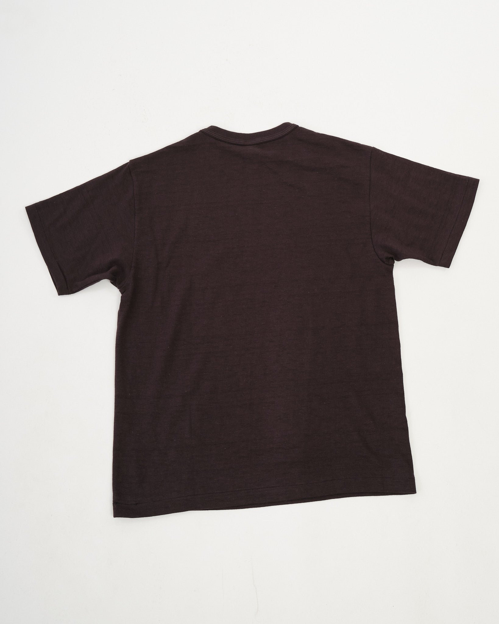 Halsudskæringen undgår den moderne, overdrevne hældning. I stedet er ribben kantet med piping for ekstra styrke, hvilket tillader den at slappe af naturligt over tid og danne en blid, indlevet hældning. Resultatet er en t-shirt, der fanger Warehouses signaturbalance af vintage detalje, komfort og tidløs bærbarhed.