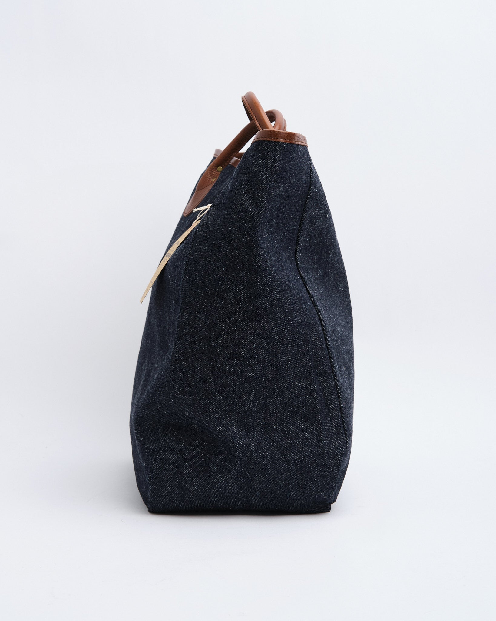 Unlike standard shoulder totes, the Lot 5230 features a deliberately short handle — a detail true to its workwear roots. The vegetable-tanned leather handles will develop a rich patina over time, while the denim body will fade beautifully with use, telling a story unique to each owner.
