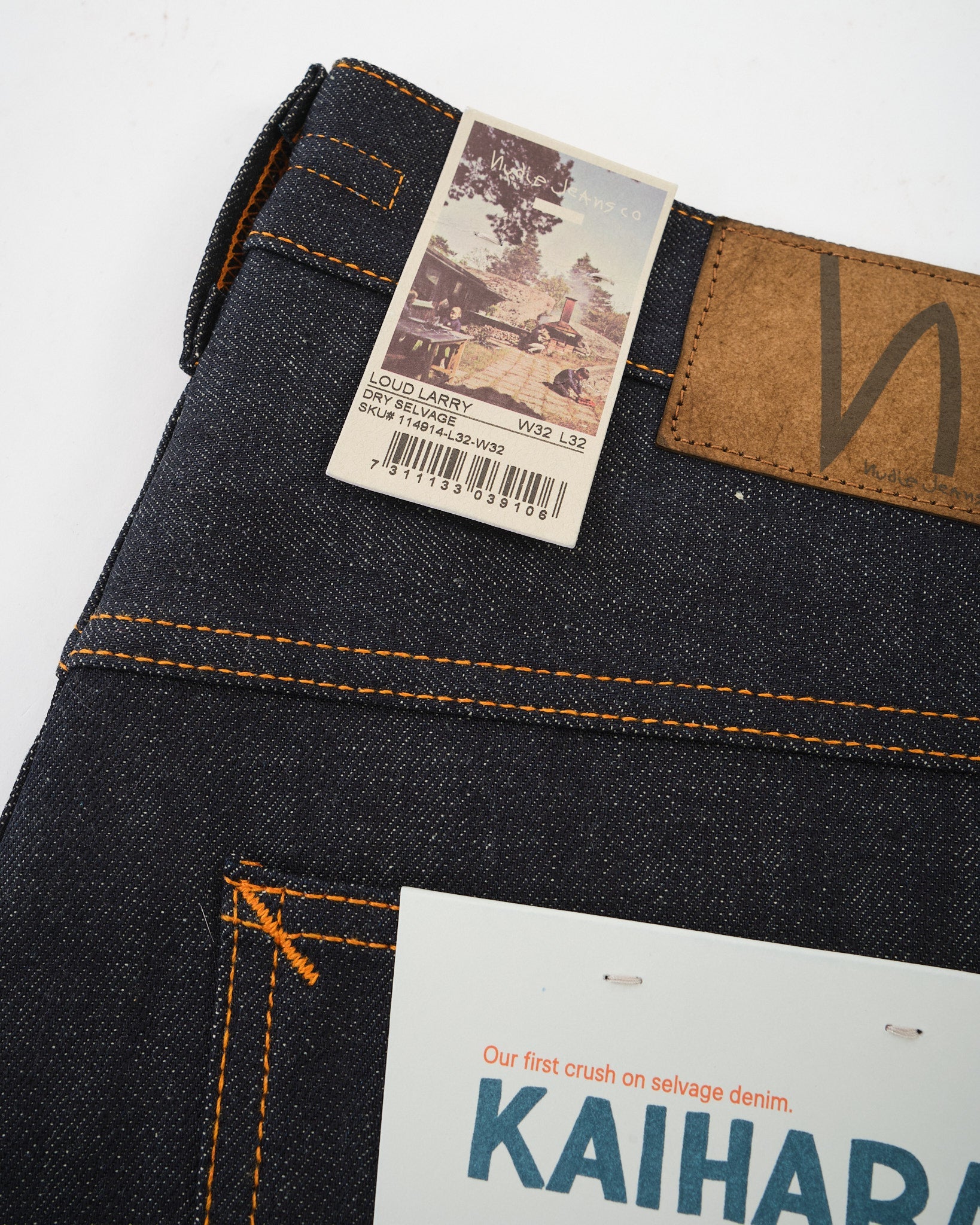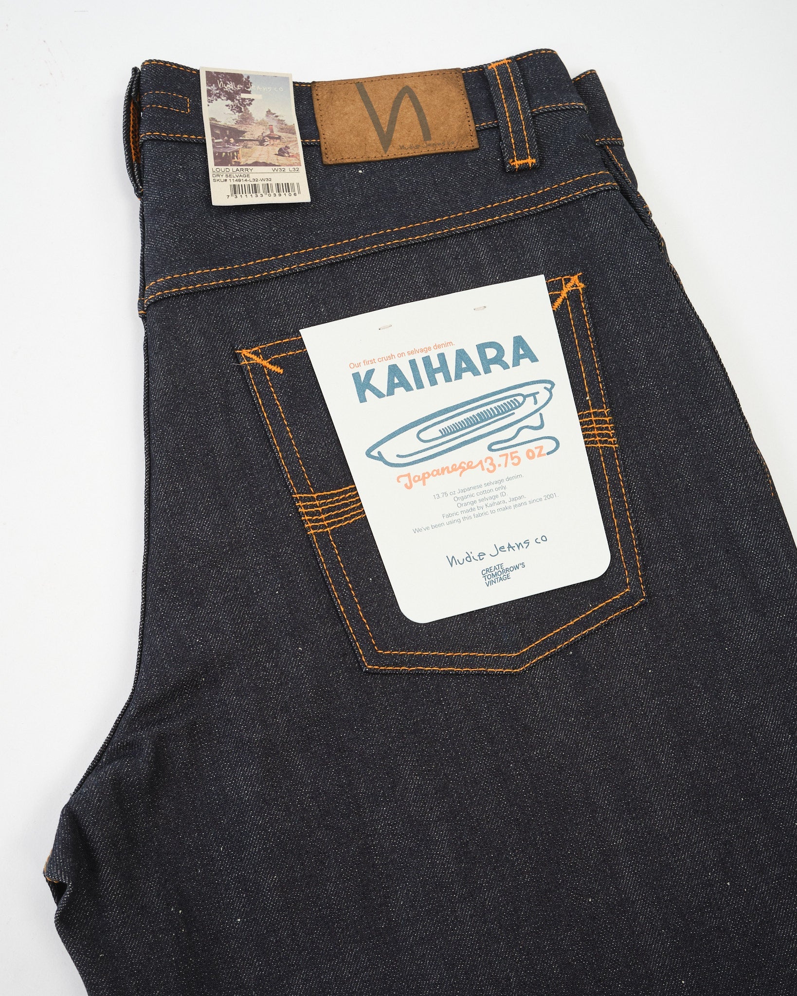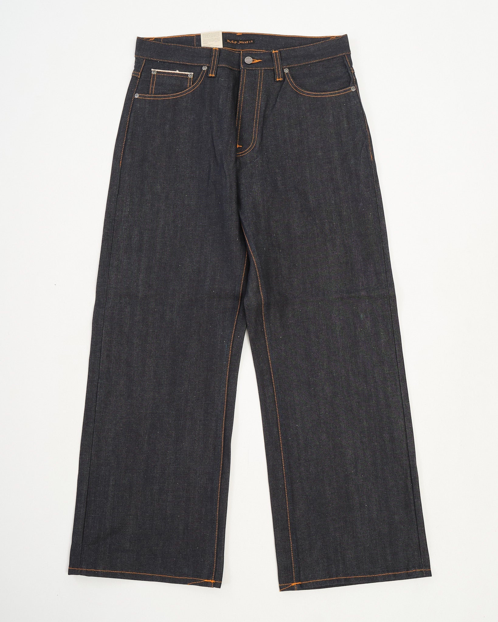• Orange tråd på alle sømme – klassisk Nudie signatur
