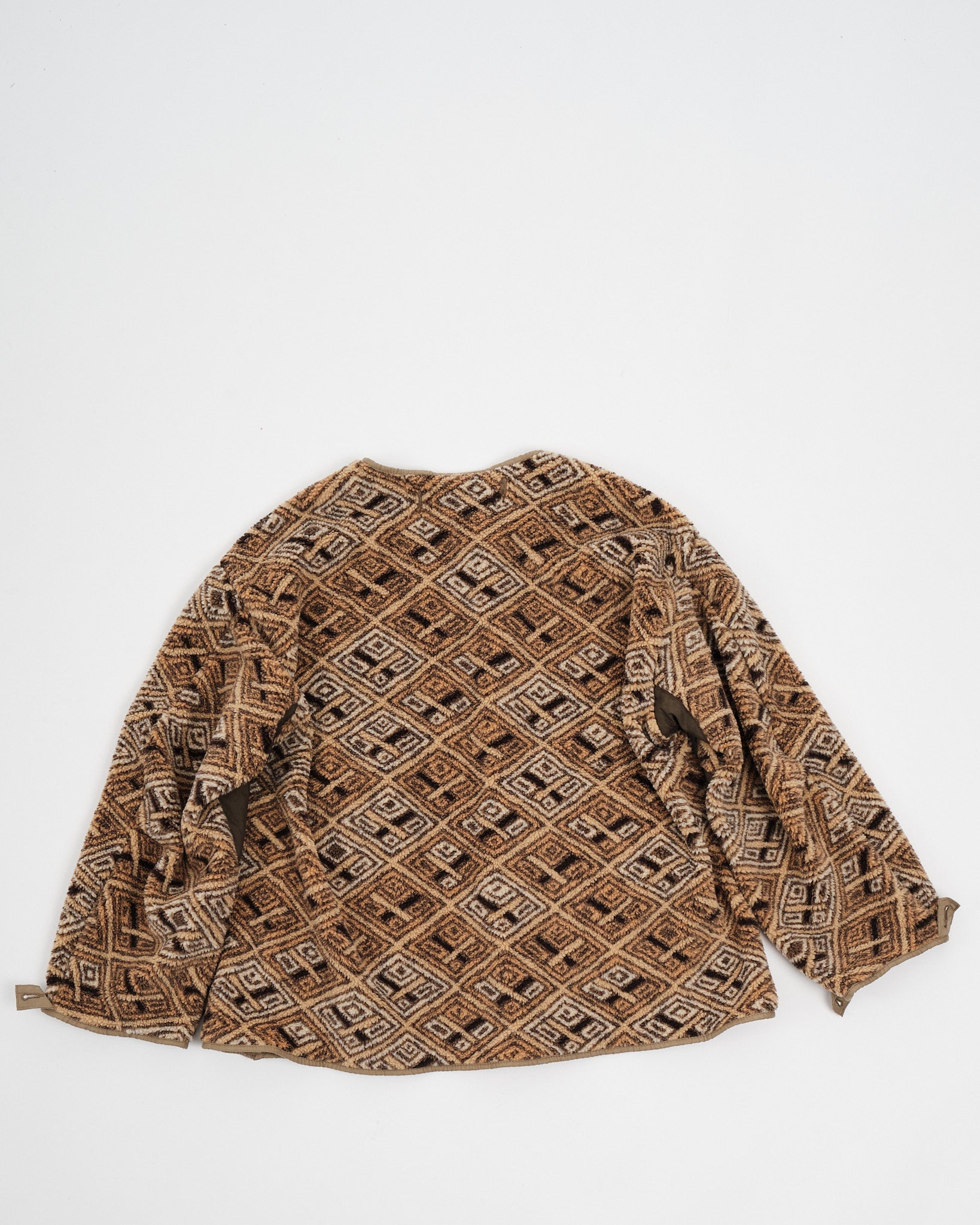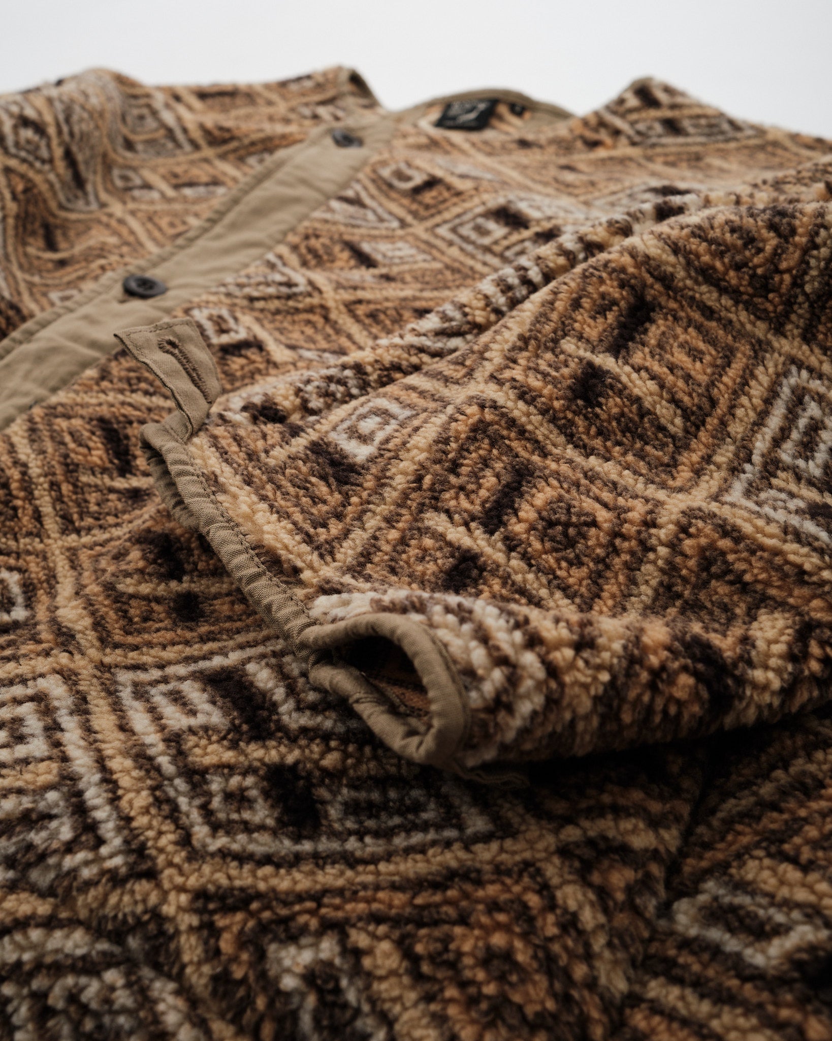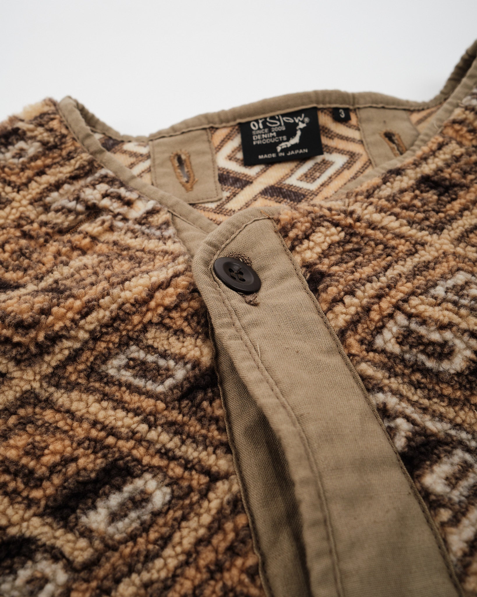 Rock orSlow M-65 Fishtail Coat Liner med stil, der har et iøjnefaldende afrikansk print. Dette stykke kan bruges indeni med M-65 Fishtail Coat for at tilføje det lille ekstra varme til det klassiske stykke. Lineren har to forlommer til de tider, hvor du bærer den for sig selv. Fremstillet med en blanding af 70% bomuld og 30% nylon i Japan, vil den være lige så holdbar som stilfuld.