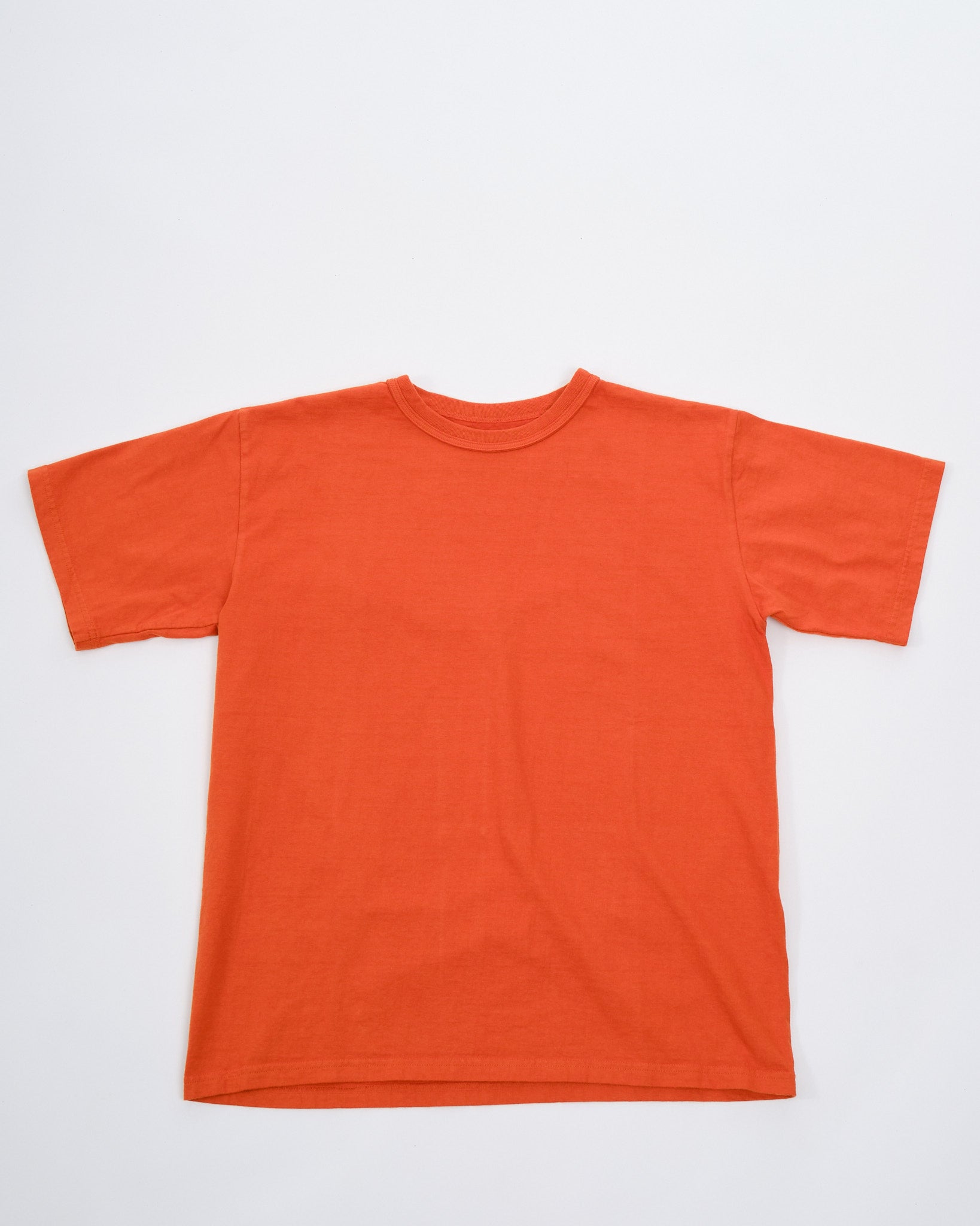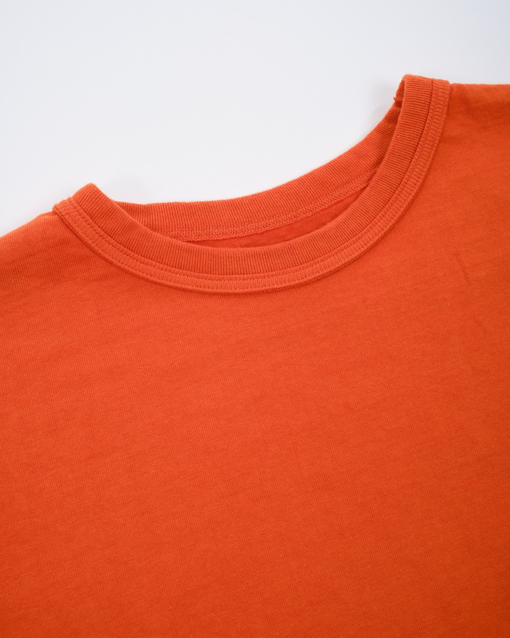 Præsenterer Makaha kortærmet T-shirt i guldflamme fra Sunray Sportswear. Dette japansk-fremstillede stykke fanger essensen af 1950'erne med sin afslappede, mere kasseformede silhuet, der står en smule kortere end den nutidige pasform. Sunray T-shirts er unikt produceret på antikke cirkulære strikkemaskiner, hvilket giver anledning til et karakteristisk design uden sidesømme. Hvert stykke tager over 1,5 timer at skabe, et vidnesbyrd om vores langsomme, omhyggelige proces, der garanterer et beklædningsstykke, der altid bevarer sin form. Fordyb dig i den uforlignelige komfort, modstandsdygtighed og klassiske stil fra Sunray Sportswear.