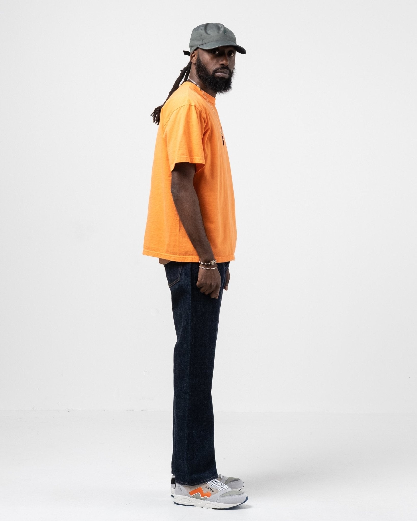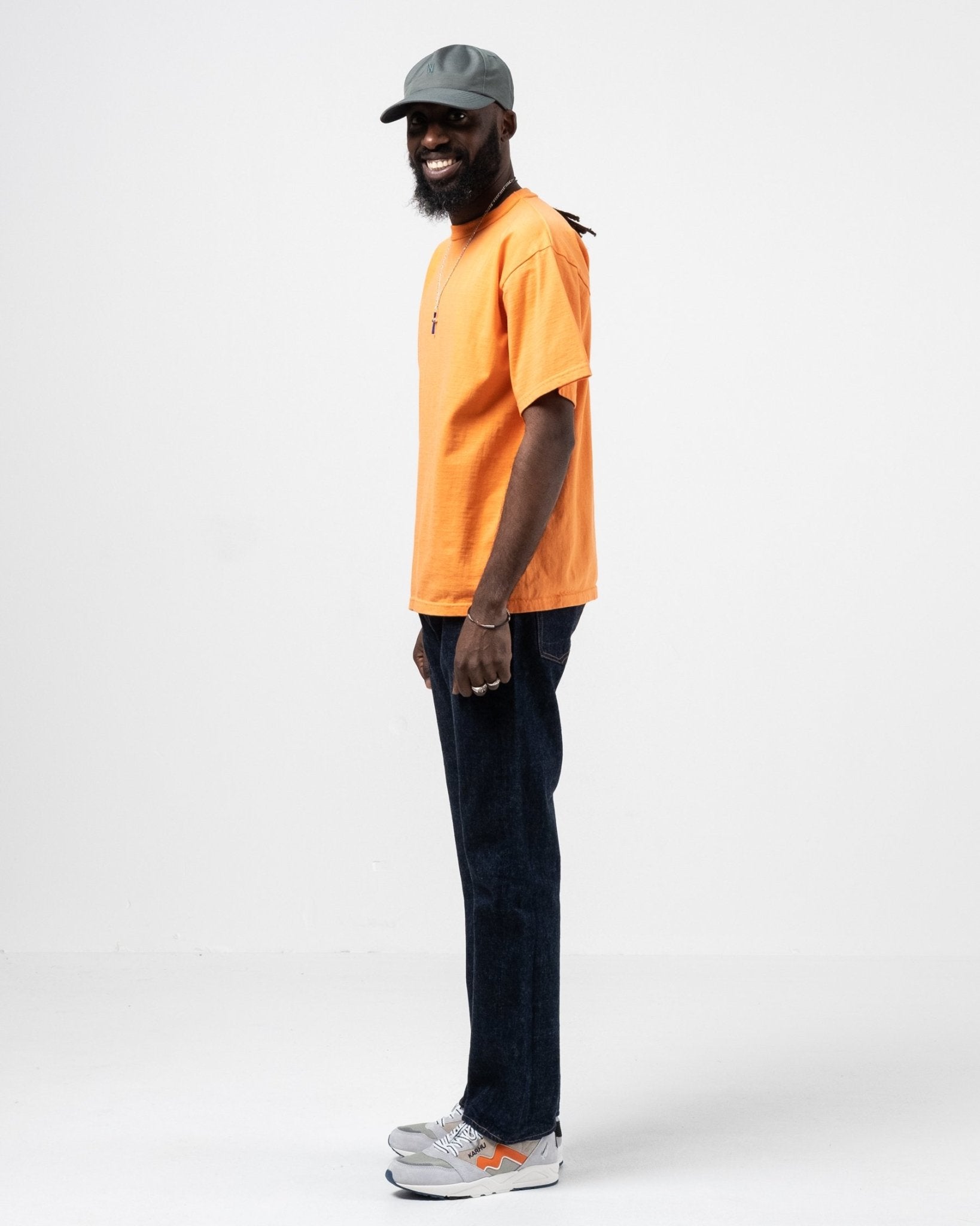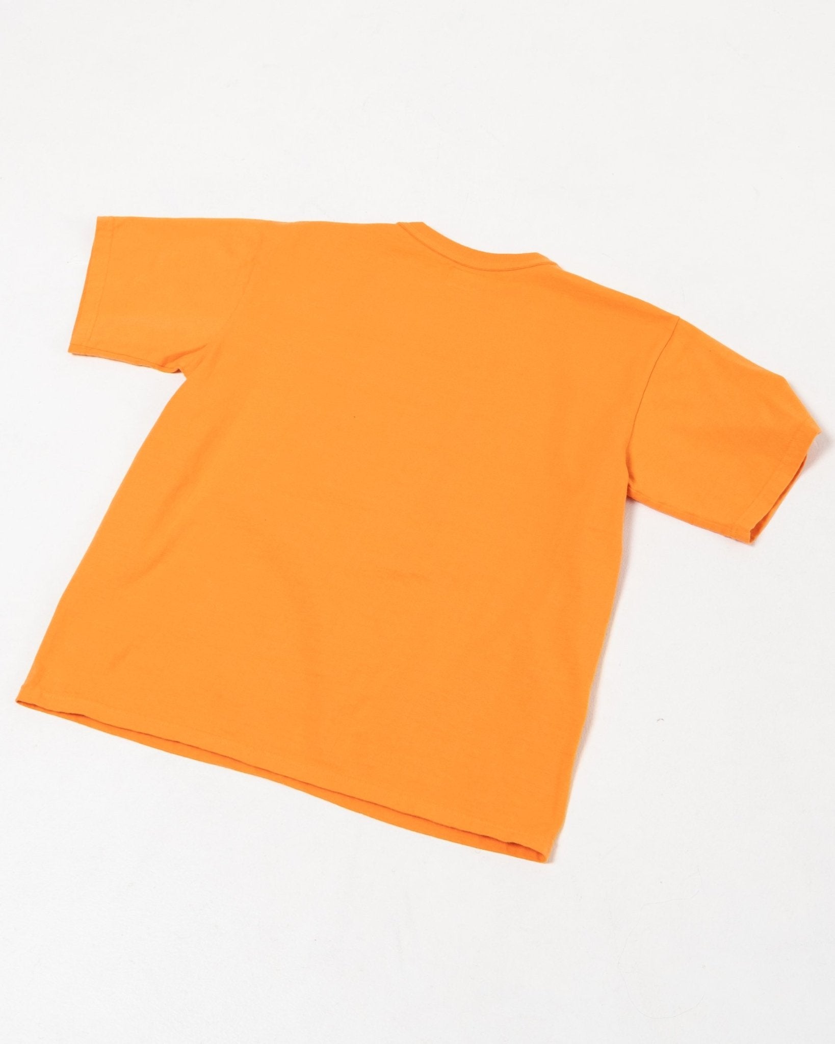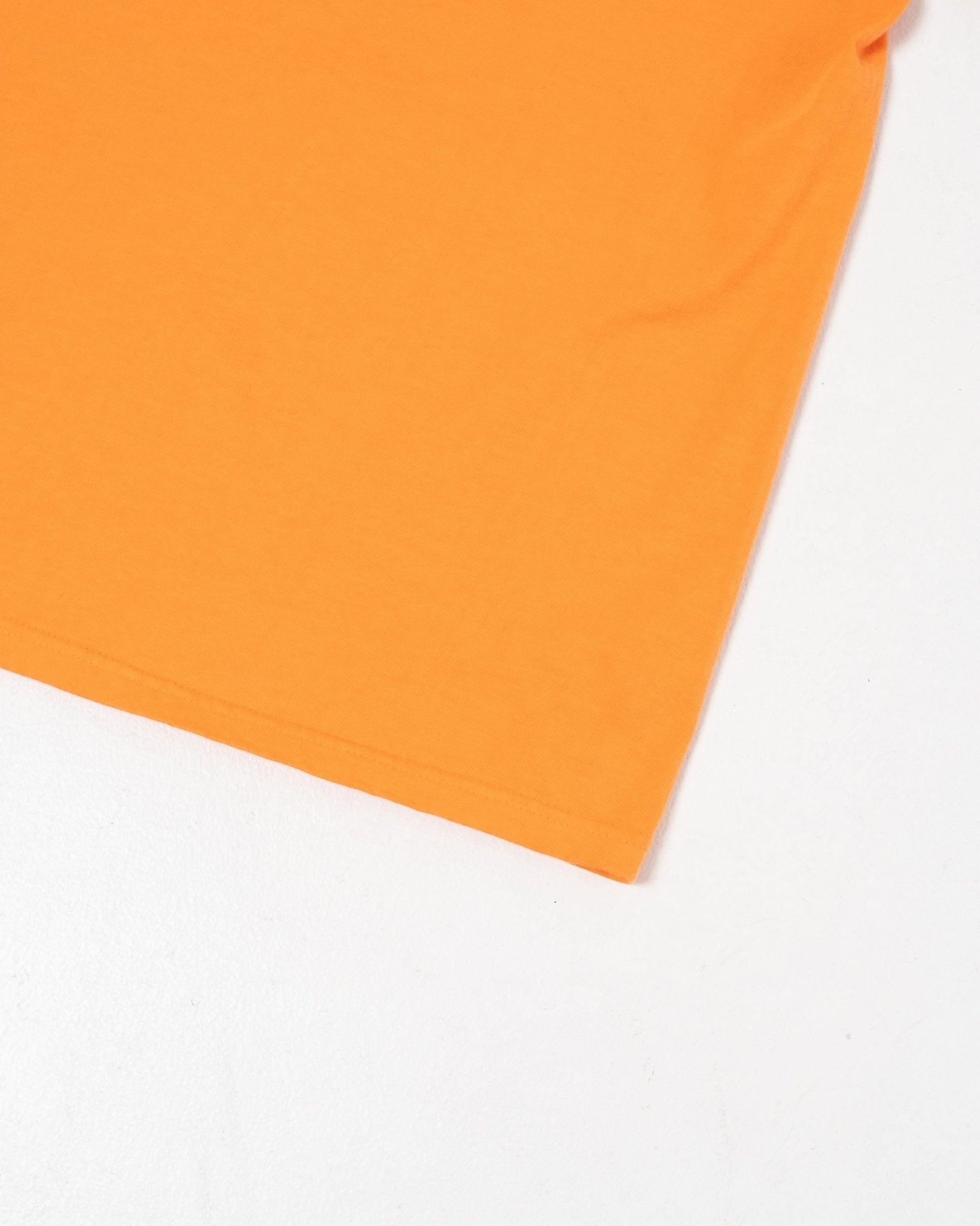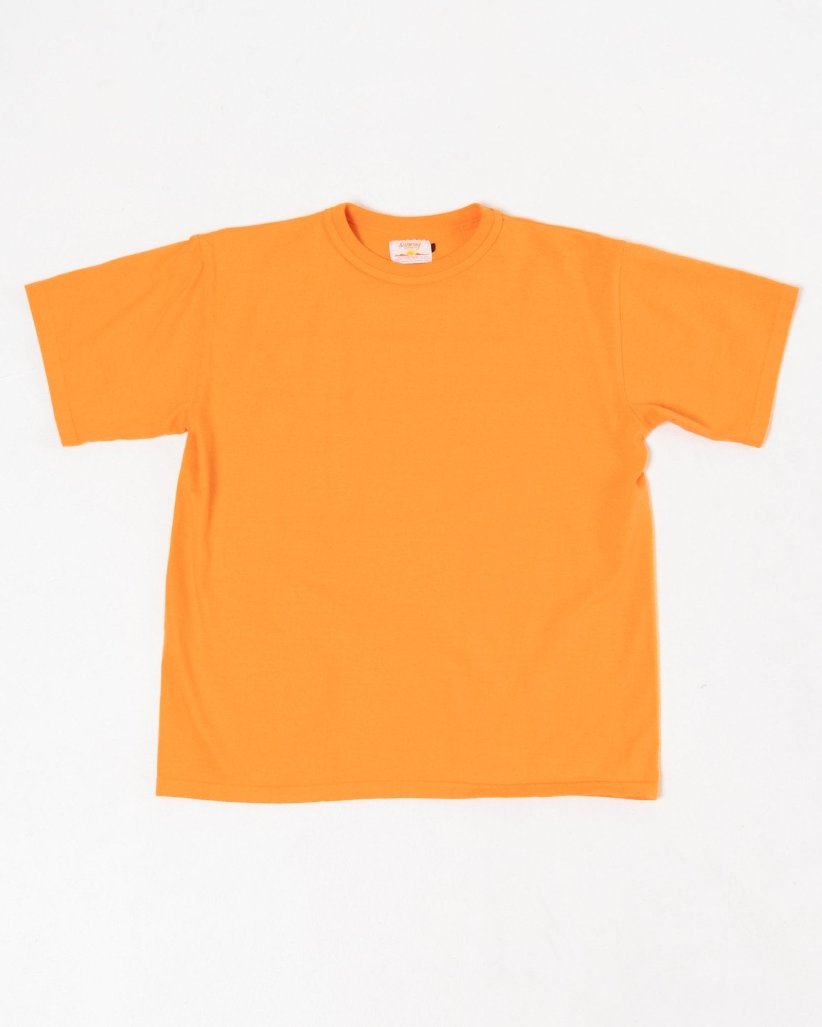 Makaha SS T-Shirt Persimmon Orange fra Sunray Sportswear. Sunray T-shirts har et traditionelt fit inspireret af fornemmelsen fra 50'erne. Afslappet, mere kasseformet og en smule kortere end et moderne fit. Kraven, rib-designet og stofferne er også traditionelle. Sunray har designbeskyttelse på halsdetaljen af Makaha T-shirts. Fremstillet i Japan.