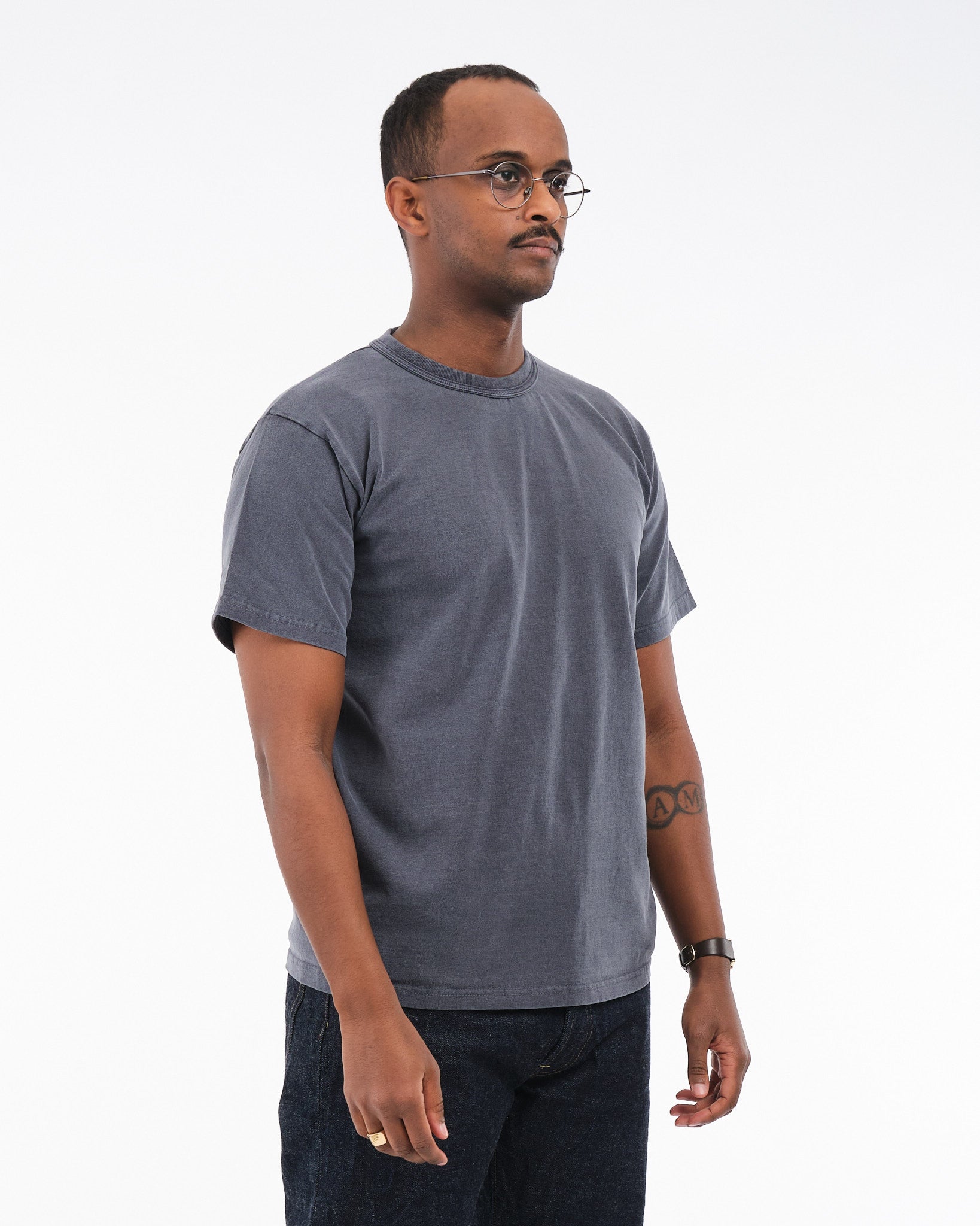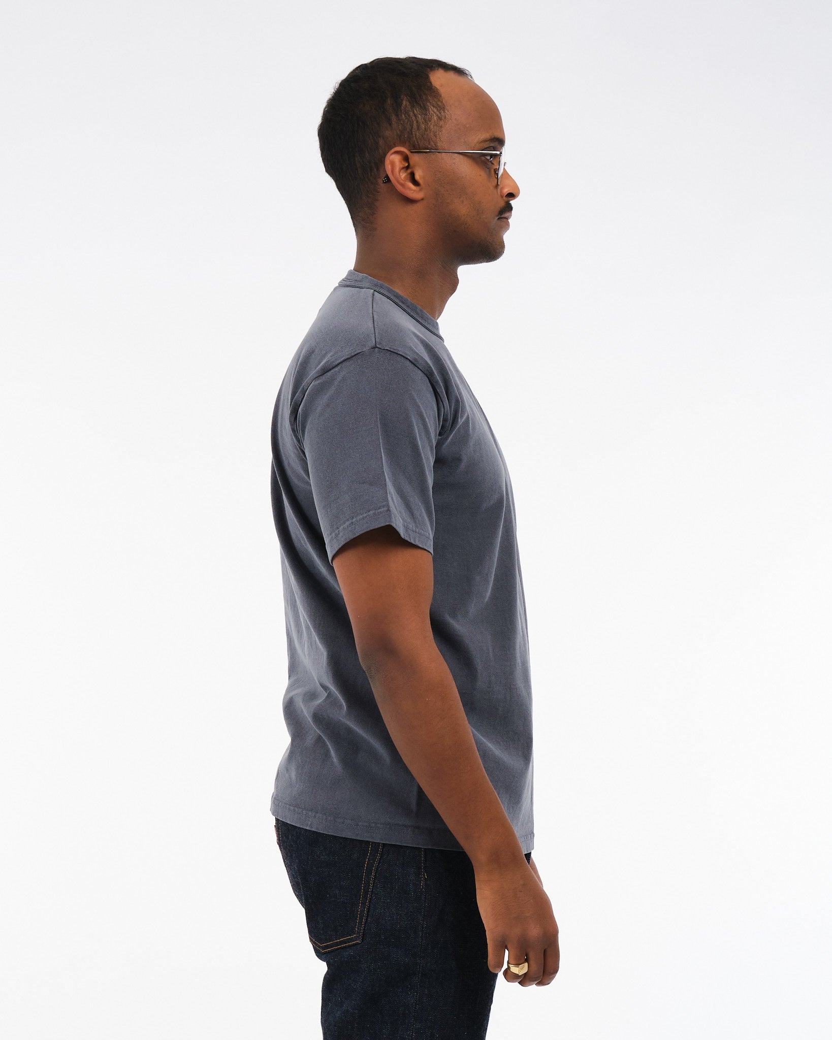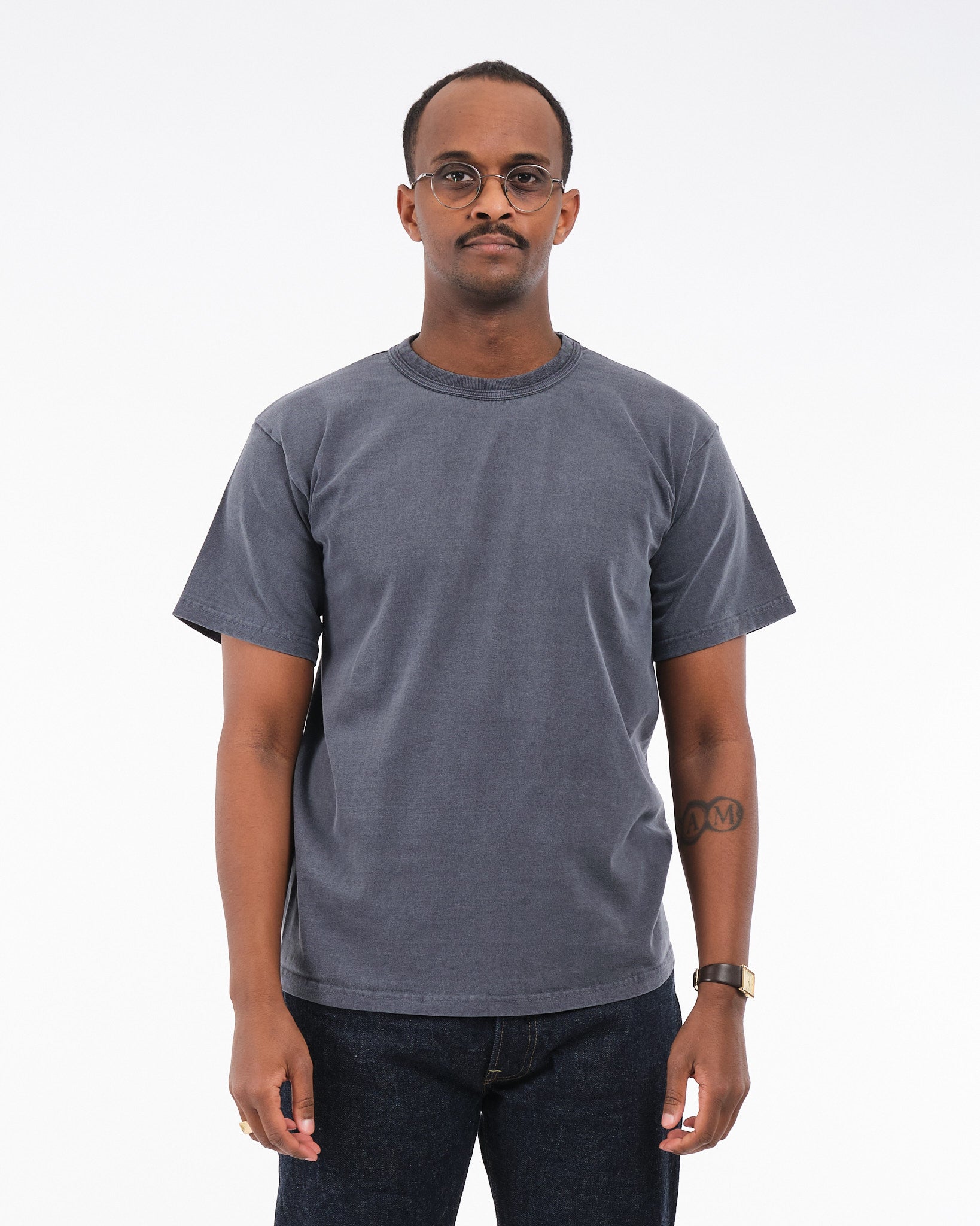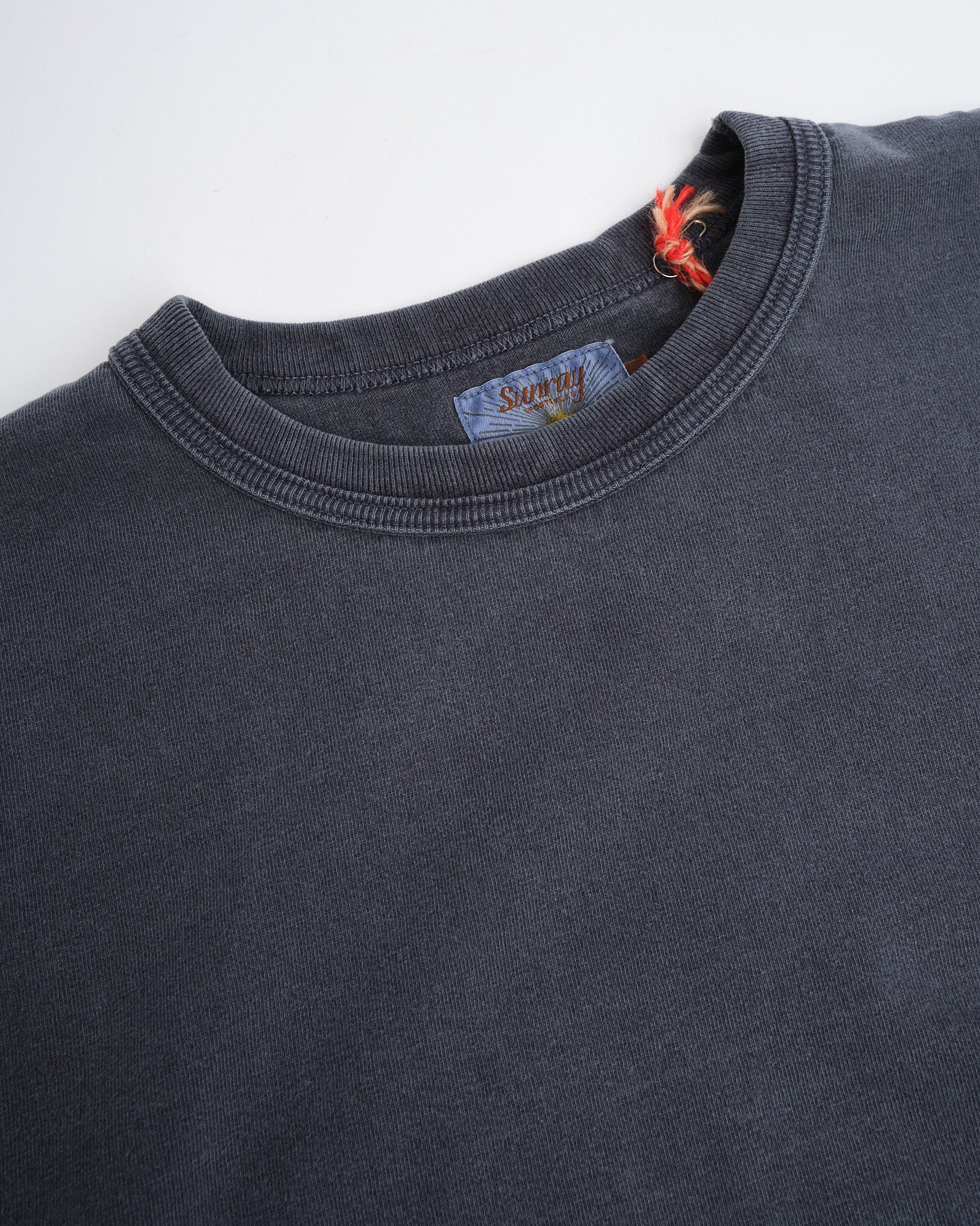 Pigment Blue Sunray Sportswear Makaha kortærmet T-shirt blander håndværk med moderne komfort for en førsteklasses beklædningsoplevelse! Håndlavet i Japan med loopwheel-maskiner og tager mere end 1 og en halv time per t-shirt sikrer topkvalitet og lang levetid. Det 300gsm japanske jersey stof tilbyder en endnu blid berøring, der er perfekt til brug i alle sæsoner. Pigmentfarvningsprocessen infunderer en blå farve, der modnes yndefuldt over tid, hvilket giver t-shirten en individuel charme. Denne t-shirt tilbyder et tidløst rund hals-design og en behagelig pasform, der kombinerer stil og hygge til brug.