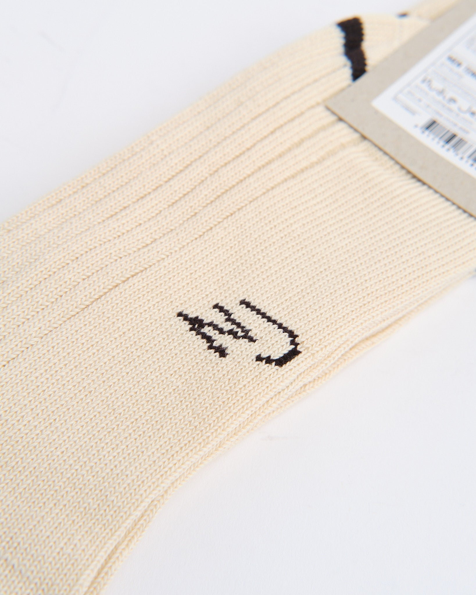 Mærke: Nudie Stilkode: 181094 Stilnavn: Mænd Tennis Sokker Stribe Off-white base med dristige sorte striber for et klassisk look Lavet af en blød bomuldsblanding for åndbarhed og komfort Har Nudies signaturforpligtelse til bæredygtighed Fremstillet med organiske materialer Egnet til daglig brug og passer godt sammen med sneakers og afslappede sko Holdbar konstruktion til langvarig brug En stilfuld, sporty tilføjelse til enhver garderobe