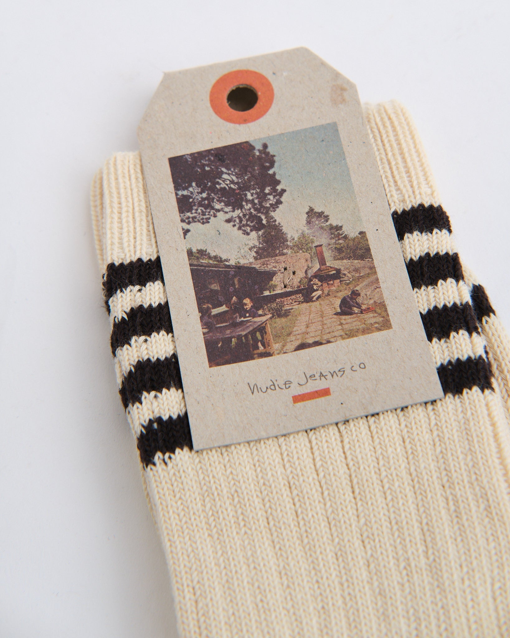 Fremstillet med Nudies fokus på bæredygtighed i tankerne, er disse sokker skabt ved hjælp af materialer og fremhæver mærkets dedikation til premium kvalitet og miljøbevidst mode. Ideel til at tilføre et hint af stil til dine nødvendigheder.