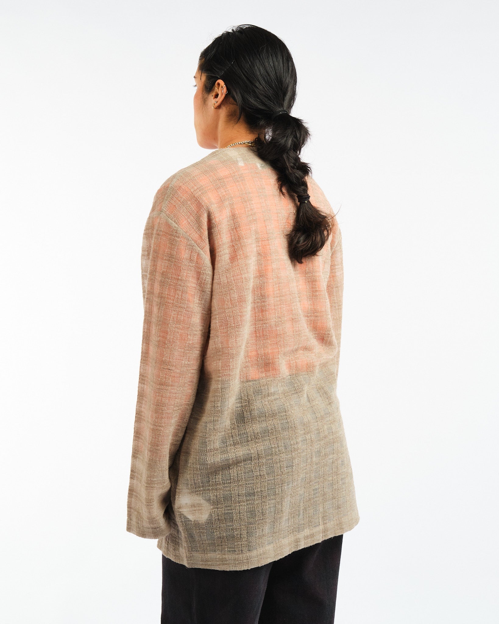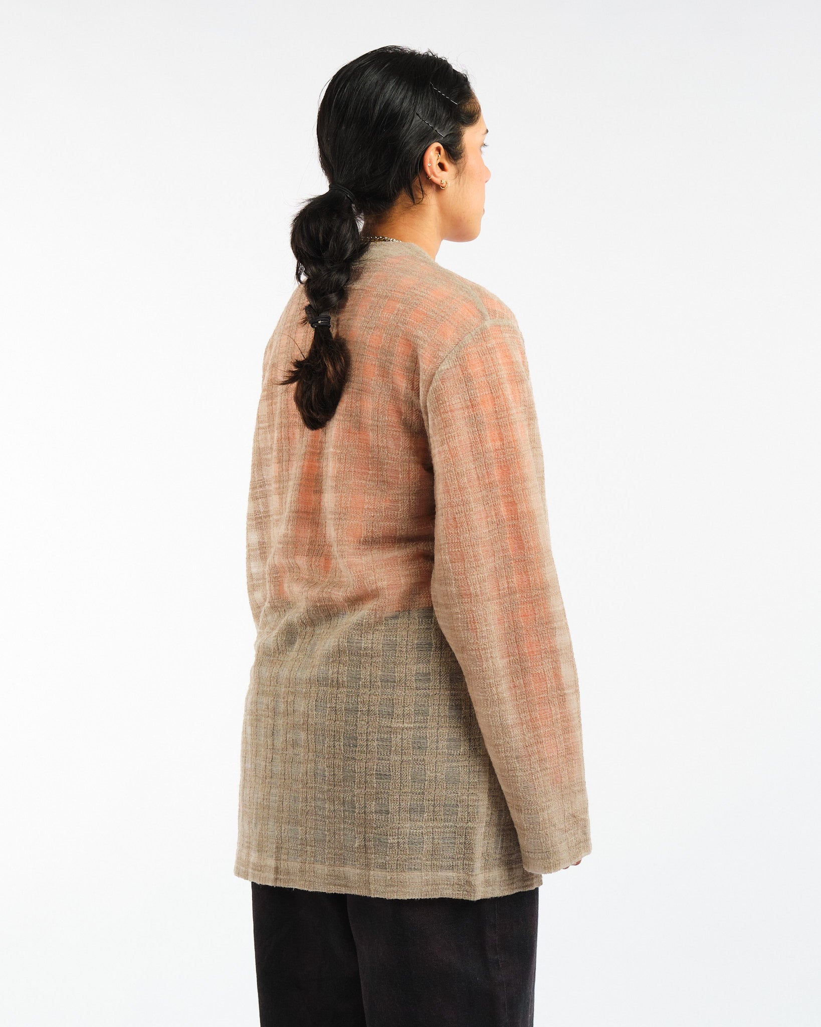 Vi tilbyder Our Legacy's Midline Cardigan i Grå Disintegration Check hos Meadow. Fremstillet af en blanding af italiensk merinould og polyamid, praler denne cardigan af et gennemsigtigt stof, der er både delikat og raffineret. Designet til kvinder, har den en lang og afslappet pasform, der kan lukkes i midten eller til sidesømmen. Cardiganen har også en v-hals og knapper af perlemor.