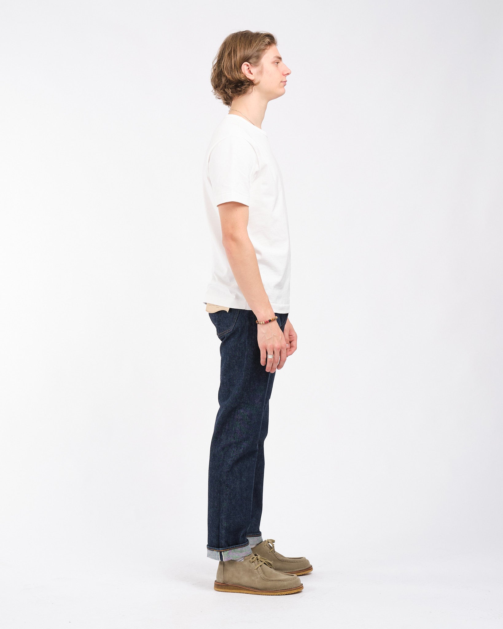 Model 66 1966 Standard Denim Bukser fra orSlow hylder de amerikanske jeans fra '60'erne og er omhyggeligt fremstillet i Japan for at udstråle en klassisk stil, der holder gennem tid og slid med tanke på bærbarhed. Fremstillet af 14oz selvedge denimstof for en robust, men alligevel hyggelig fornemmelse, med intentionen om at udvikle en smuk patina over tid. Den ene vaskeproces giver bukserne en tekstur og bevarer dens dybe indigofarve intakt. Disse jeans er designet med en pasform, der komplementerer forskellige kropsformer og modepræferencer. De kommer med en knapflue og fem lommer sammen med hvid selvedge-detaljering og et traditionelt lædermærke for at øge deres charme. OrSlows opmærksomhed på kvalitet og bæredygtig mode er tydelig i håndværket af disse jeans, hvilket gør dem til et alsidigt valg for enhver garderobe.