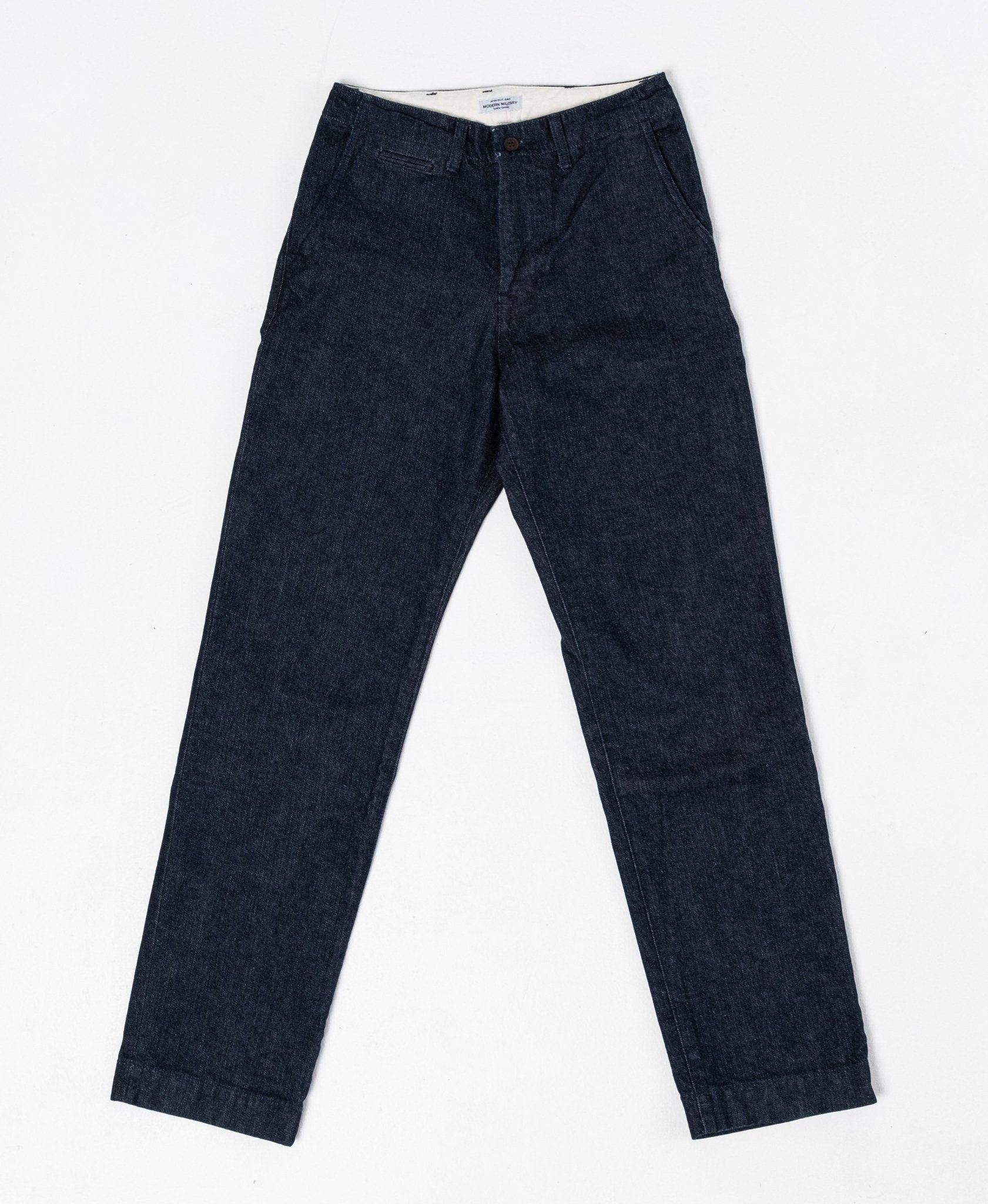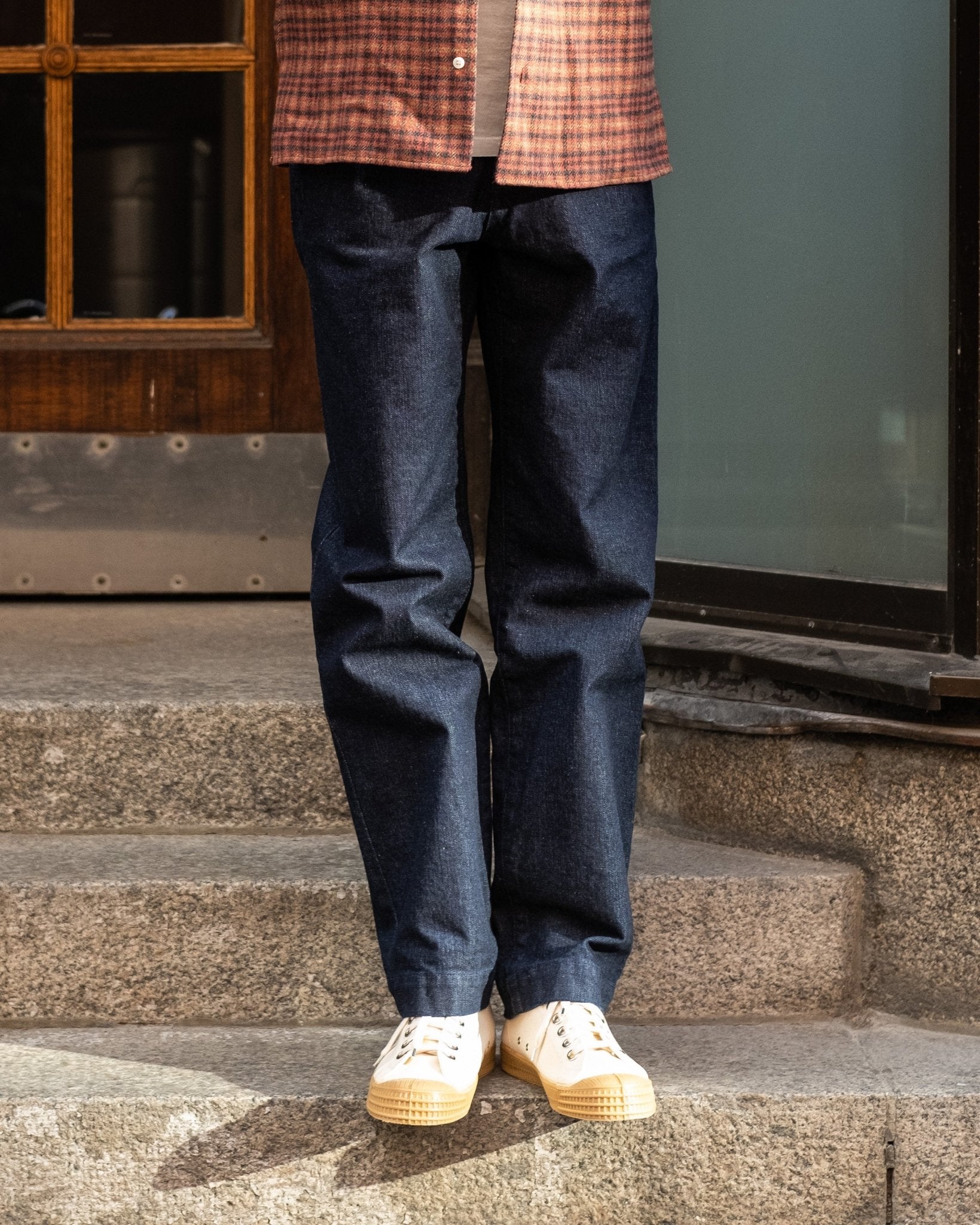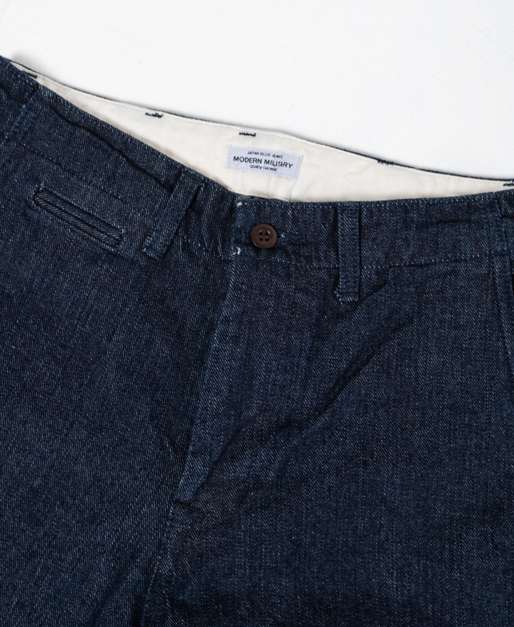 Moderne Militære Denim Bukser fra Japan Blue Jeans. Afslappet bukse pasform, fremstillet i et 12 oz denim. Chino bag- og sidelommer, plus møntlomme. Fremstillet i Japan.