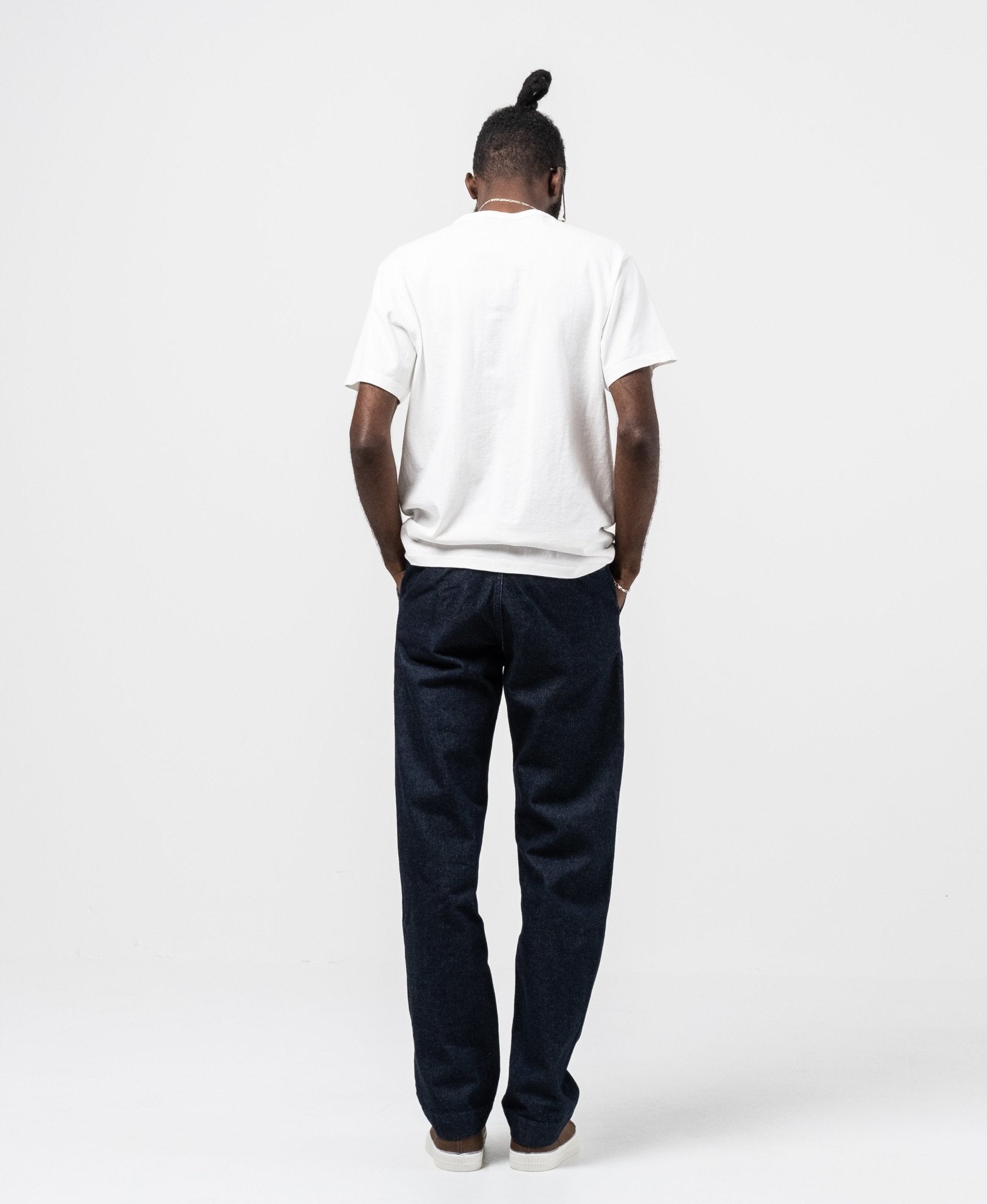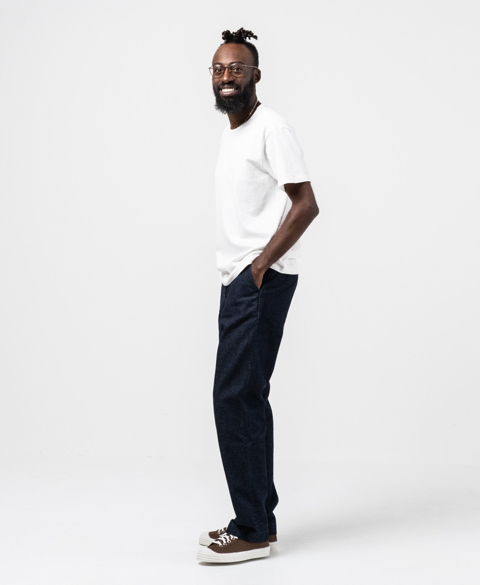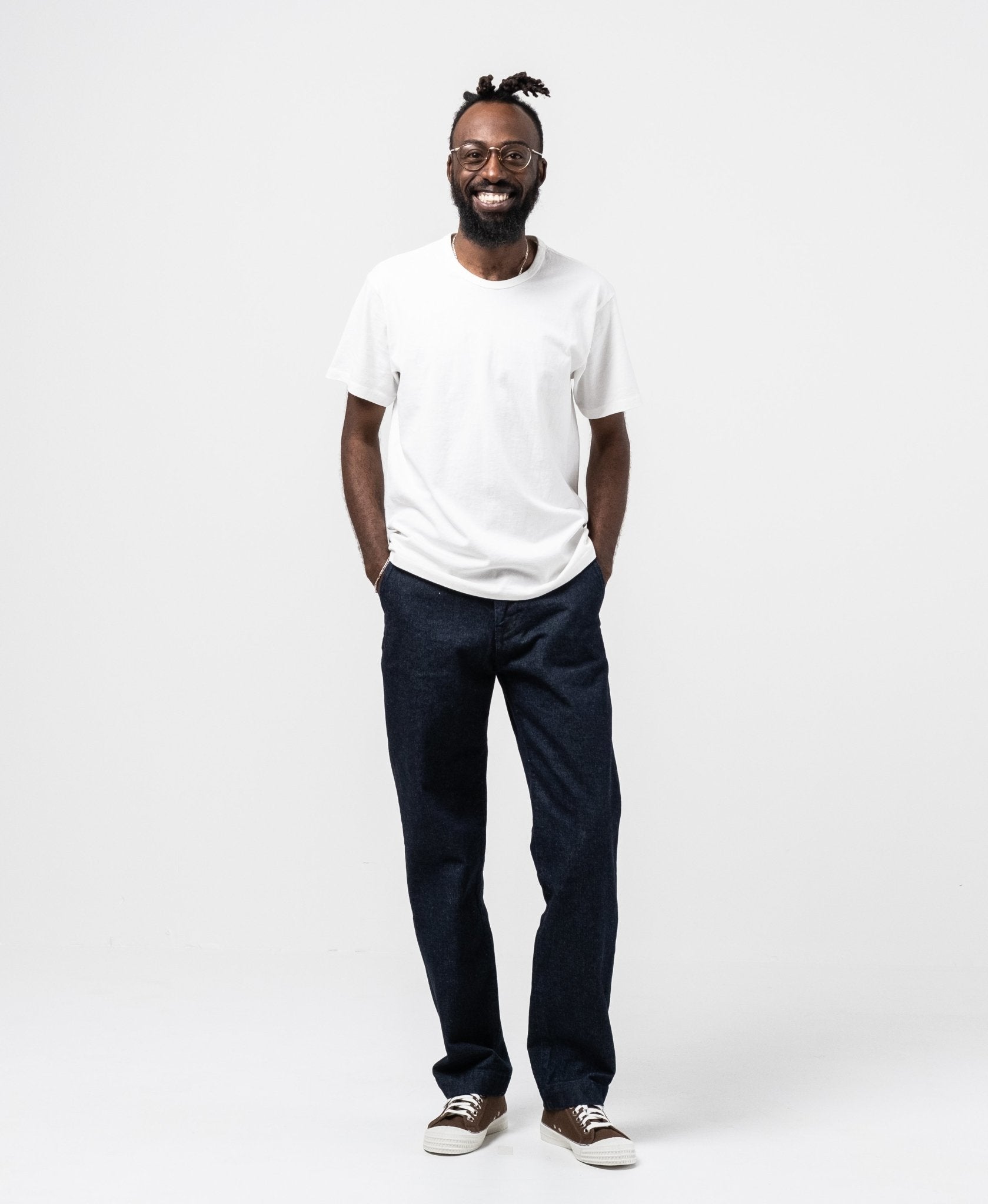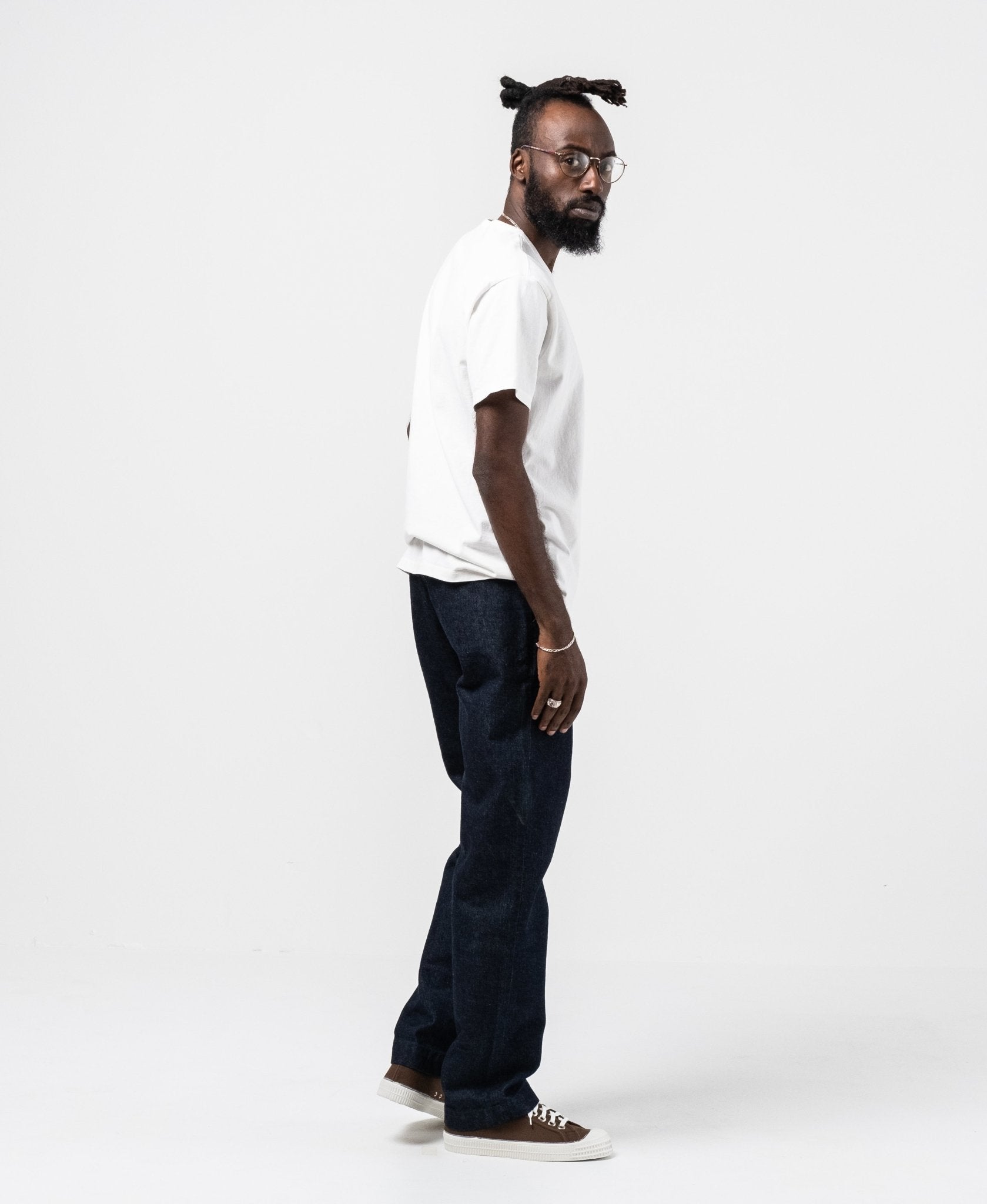 Moderne Militære Denim Bukser fra Japan Blue Jeans. Afslappet bukse pasform, fremstillet i et 12 oz denim. Chino bag- og sidelommer, plus møntlomme. Fremstillet i Japan.