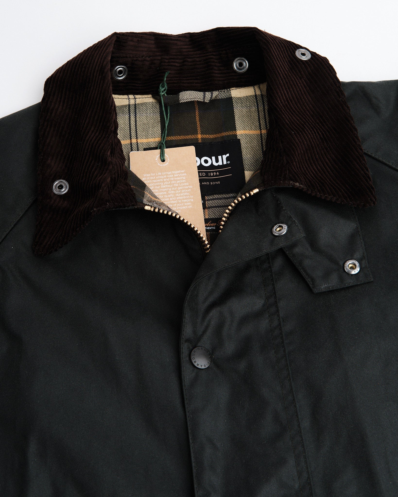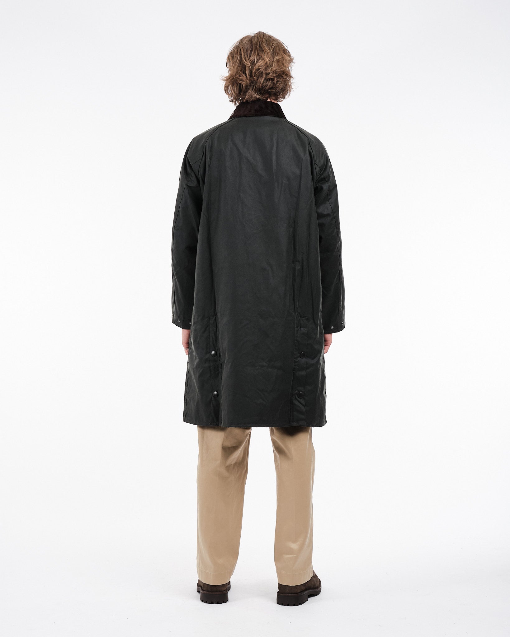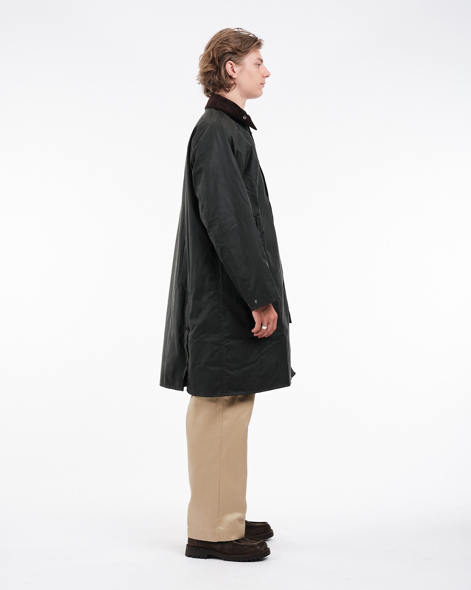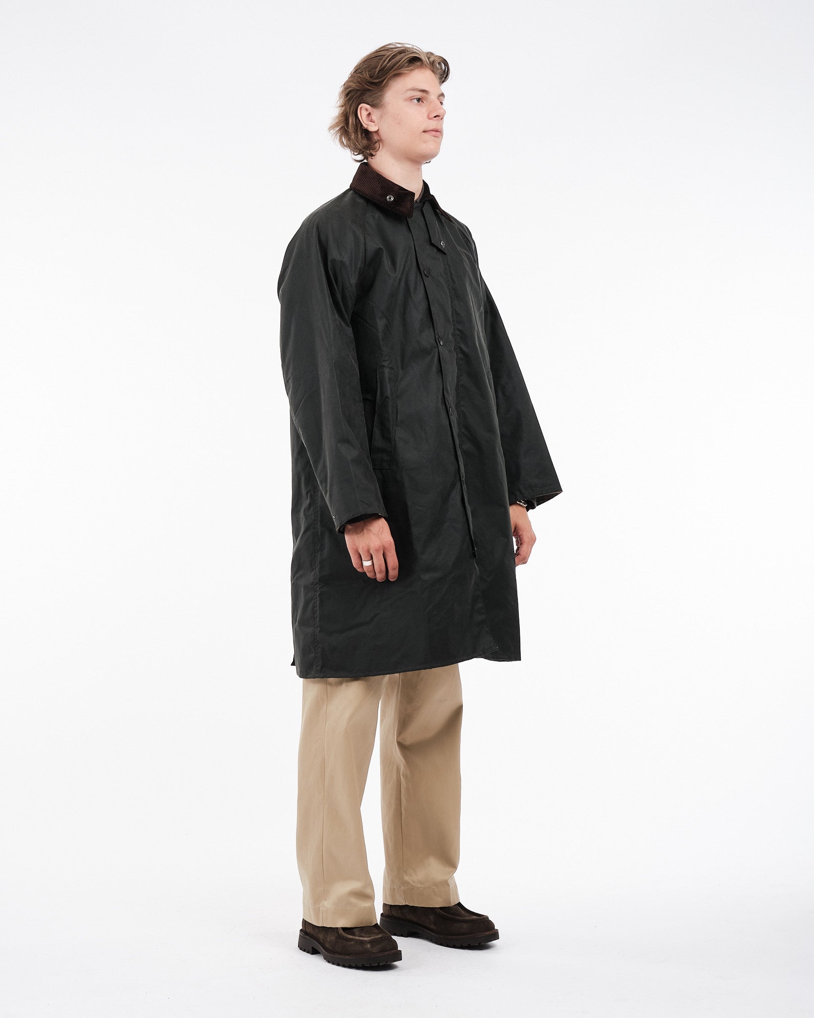 Præsentation af BARBOUR Modified Exmoor Wax Coat i Sage, et fremtrædende stykke fra Barbour Heritage Select kollektionen. Fremstillet med 6oz voksbehandlet bomuld kombinerer denne frakke holdbarhed med tidløs elegance. Designet med en pasform skræddersyet til det asiatiske marked giver det en moderne opdatering til Barbours klassiske stil. Bemærkelsesværdige funktioner inkluderer en krave af snor, lynlås og knap foran lukning, praktiske lommer til opvarmning af hænderne og knaplukkede bagventiler for bevægelse. Det hyggelige bomuldsternet for sikrer både varme og komfort, hvilket gør det til et ideelt valg, for dem der værdsætter håndværk med et nutidigt præg.