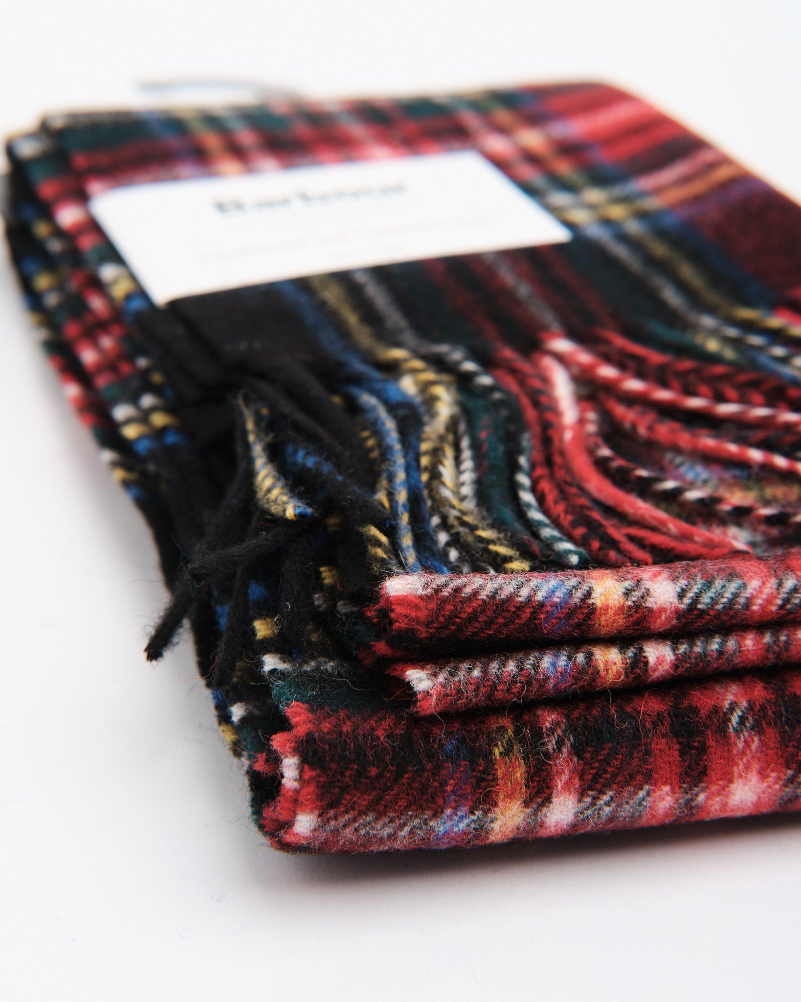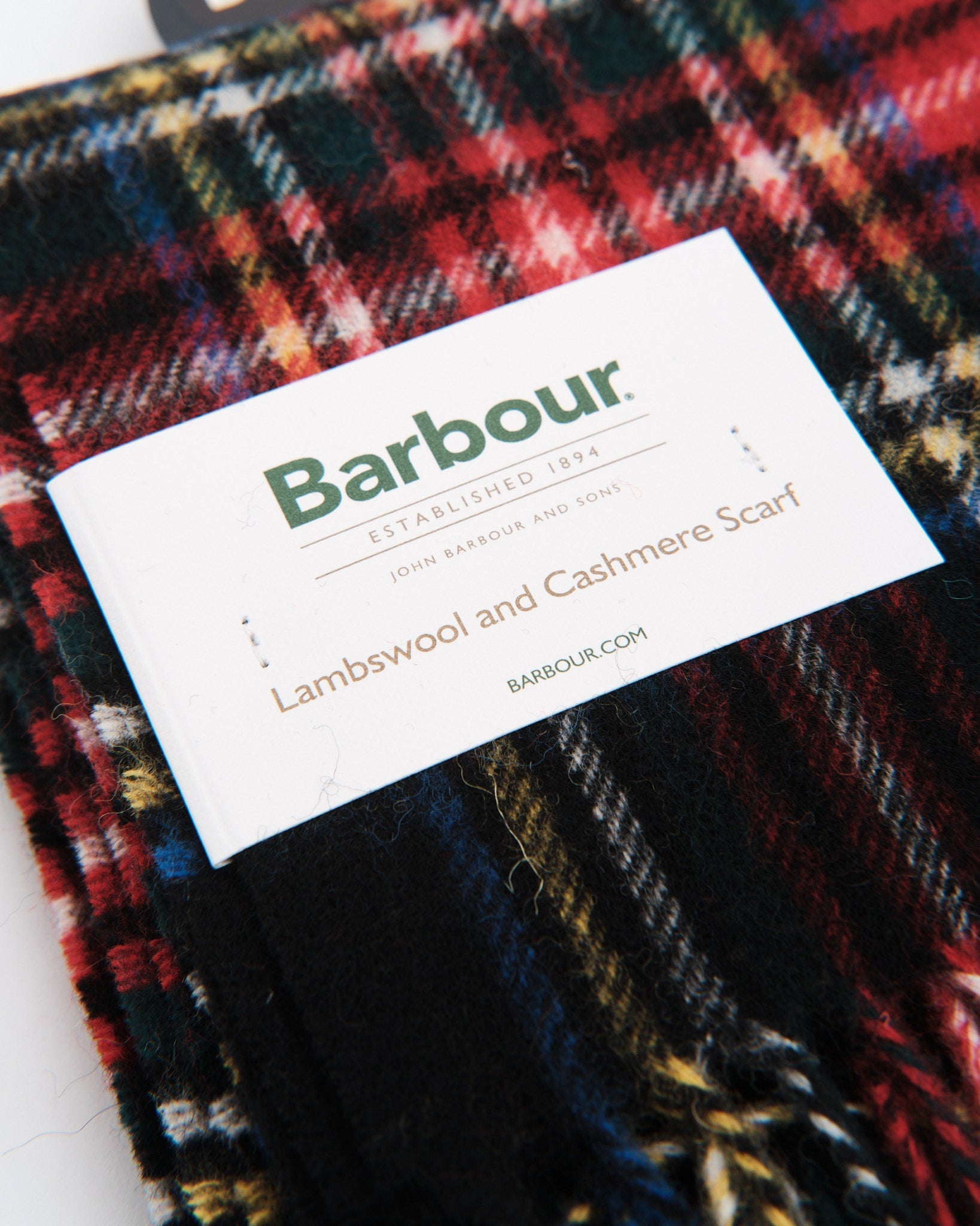 Svøb dig ind i tidløs britisk charme med Barbour New Check Tartan Scarf i Black Stewart. Fremstillet af en luksuriøs blanding af lammeuld og kashmir, tilbyder dette tørklæde den helt rigtige blanding af blødhed og varme til de koldere måneder. Det overdimensionerede tæppe-stil tartan tern er rig på arv, mens den børstede finish tilføjer et lag af plys tekstur mod huden. Frynsede kanter giver en klassisk finish, og tørklædets 180 cm længde tillader fleksibel styling—hvad enten det er viklet, bundet eller draperet.