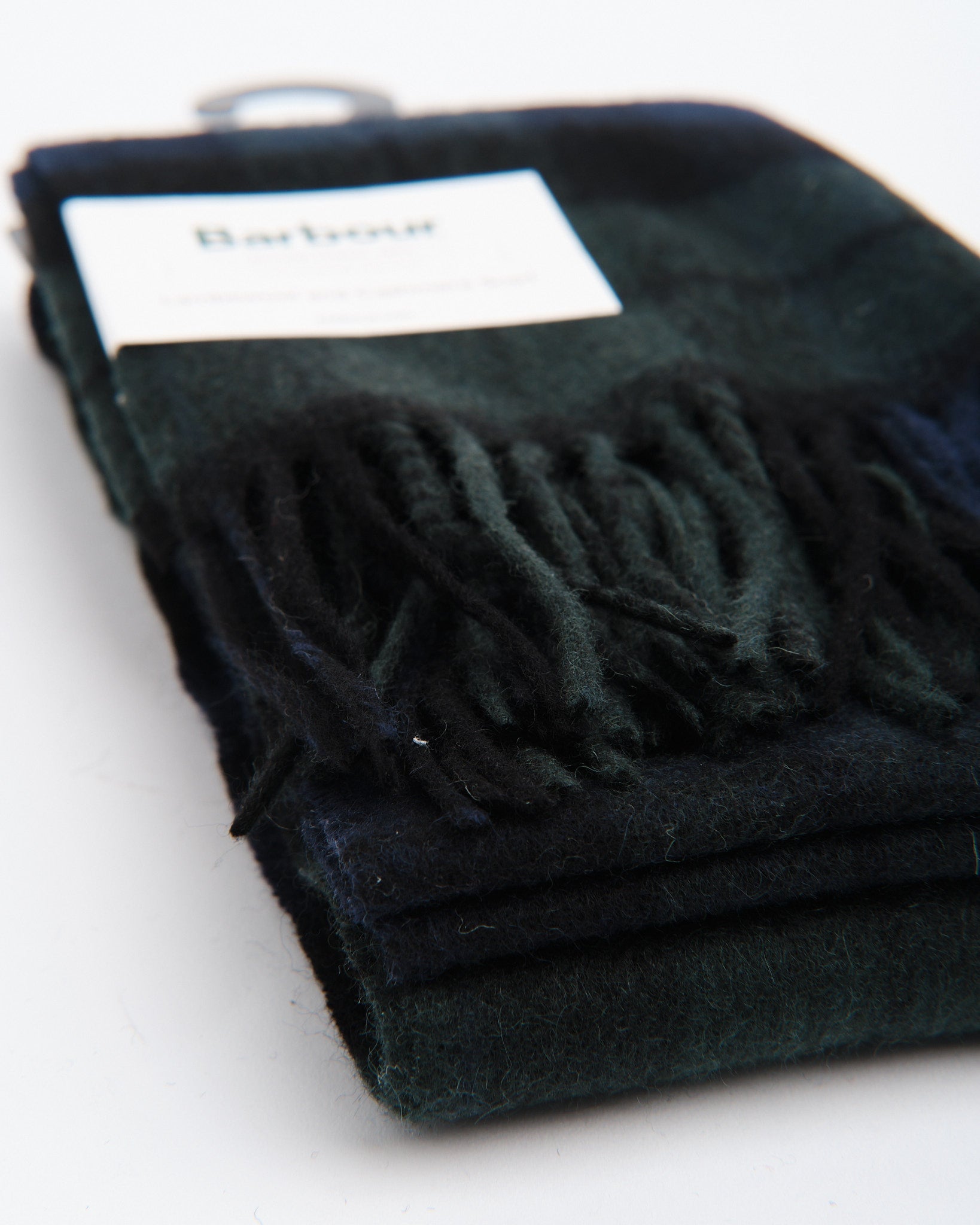 Den BARBOUR NEW CHECK TARTAN SCARF i Navy er et tidløst tilbehør, der kombinerer traditionel stil med moderne komfort. Fremstillet af en premium blanding af 95% lammeuld og 5% kashmir, tilbyder dette tørklæde ekstraordinær blødhed og varme, hvilket gør det ideelt til køligere dage. Det klassiske navy tartanmønster tilføjer et strejf af sofistikation til ethvert outfit, mens den traditionelle frynsede kant giver en raffineret finish. Måler 180 cm i længde og 25 cm i bredde, er det alsidigt nok til at style på forskellige måder, hvilket sikrer både funktionalitet og elegance.