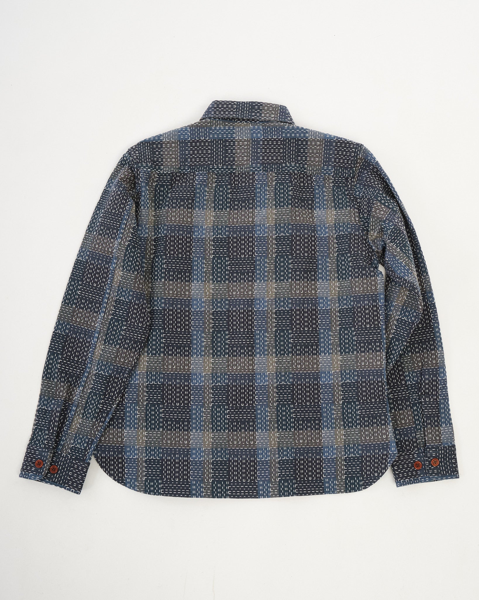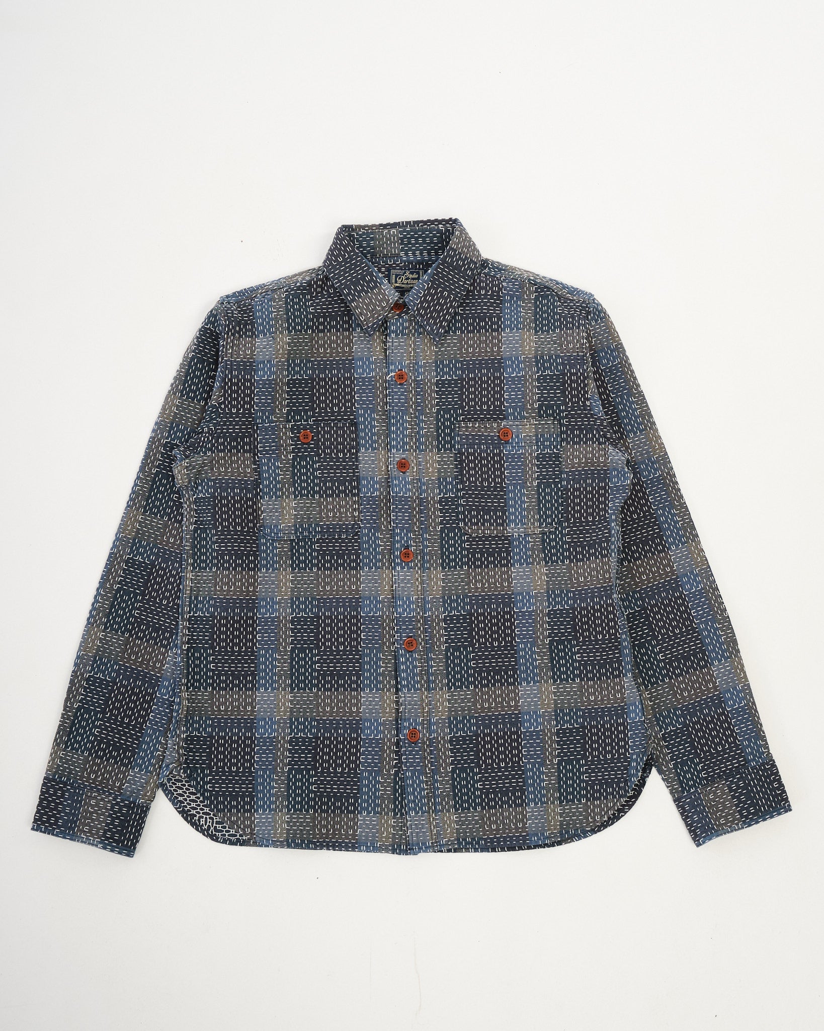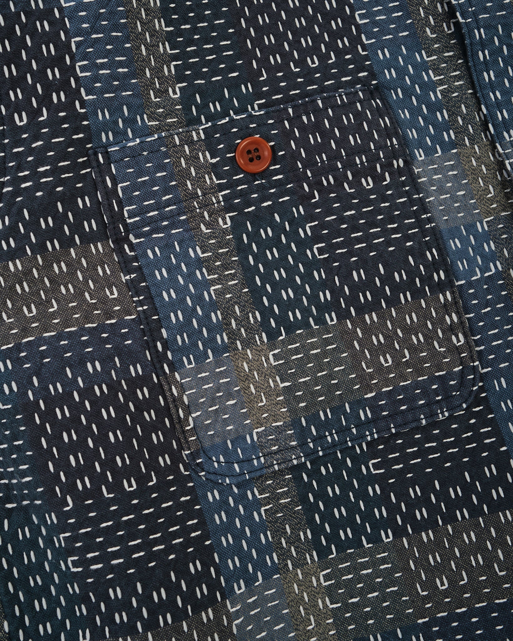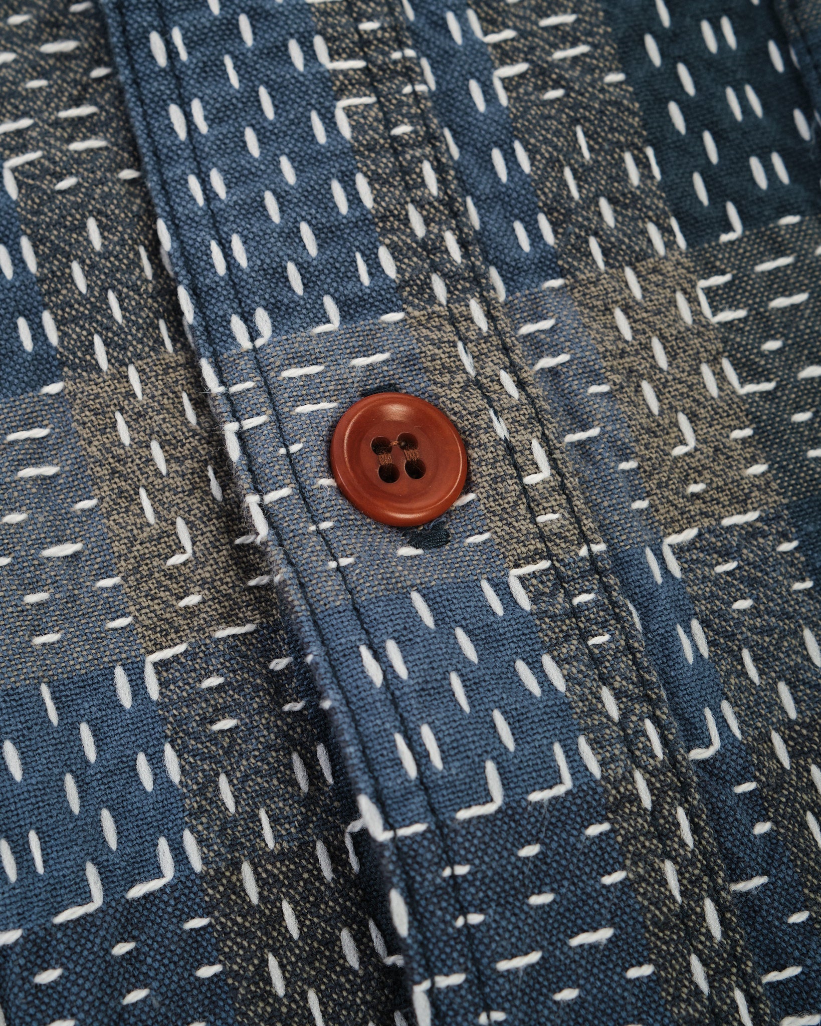 The STUDIO D'ARTISAN Noragi Sashiko Shirt (5651) er en moderne fortolkning af traditionelt japansk arbejdstøj, der henter inspiration fra Noragi, de robuste beklædningsgenstande som arbejdere bar i århundreder. Designet med sashiko-syninger, der løber både lodret og vandret, fremviser denne skjorte en unik håndværksmæssig æstetik, der ærer Japans rige tekstilarv.