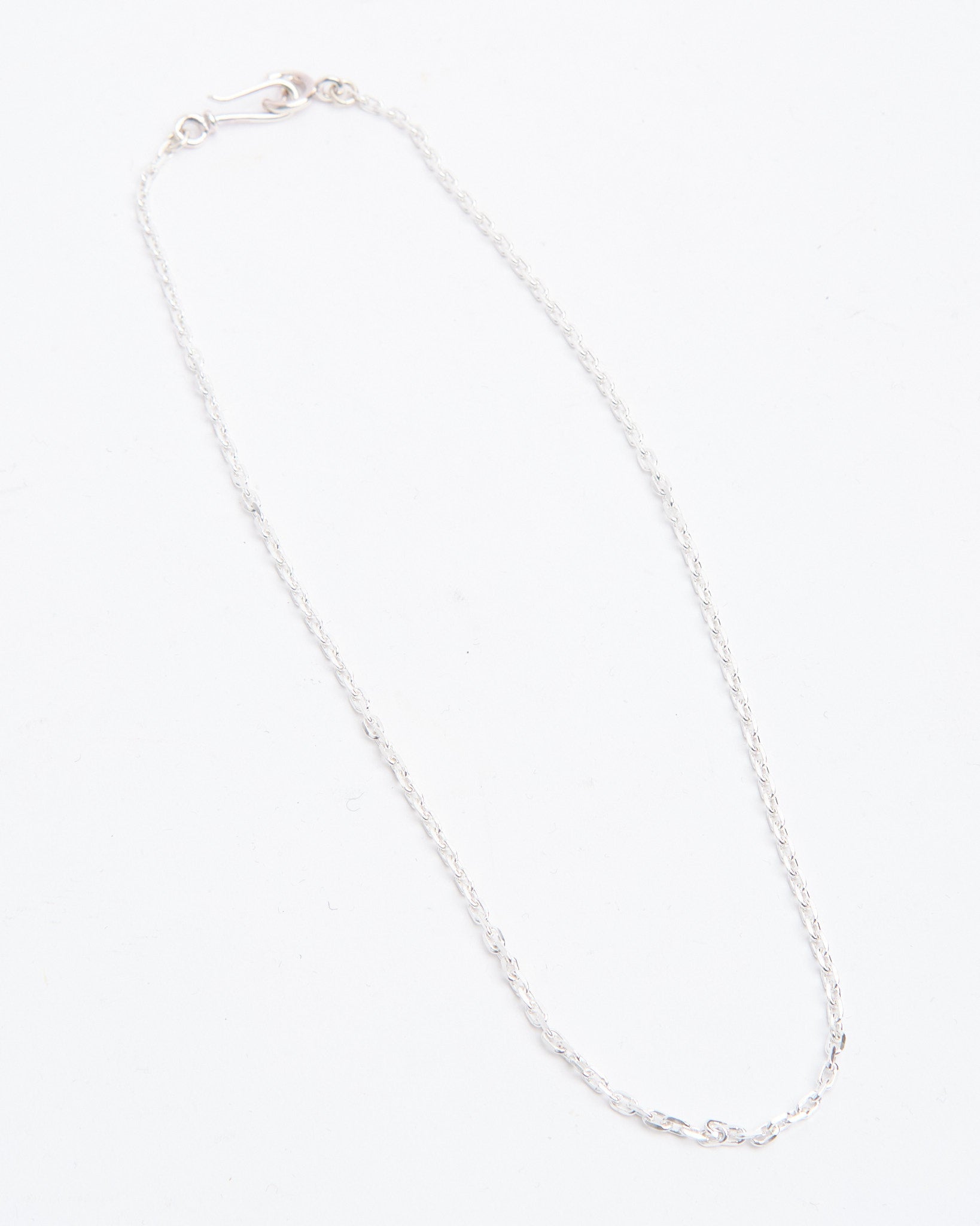 The Chain S (55cm) is a lightweight silver chain from First Arrows, crafted in Japan from Britannia Silver 950. Brighter than standard 925 silver and strengthened with the brand’s exclusive heat-treatment process, this chain combines shine with durability. Its slimmer profile makes it an ideal match for smaller pendants like the S or M size feathers, or it can be worn alone for a subtle accent. At 55cm, it sits comfortably at a versatile mid-length, perfect for daily wear. With time, the silver will darken naturally, adding depth and character to this understated yet essential piece.