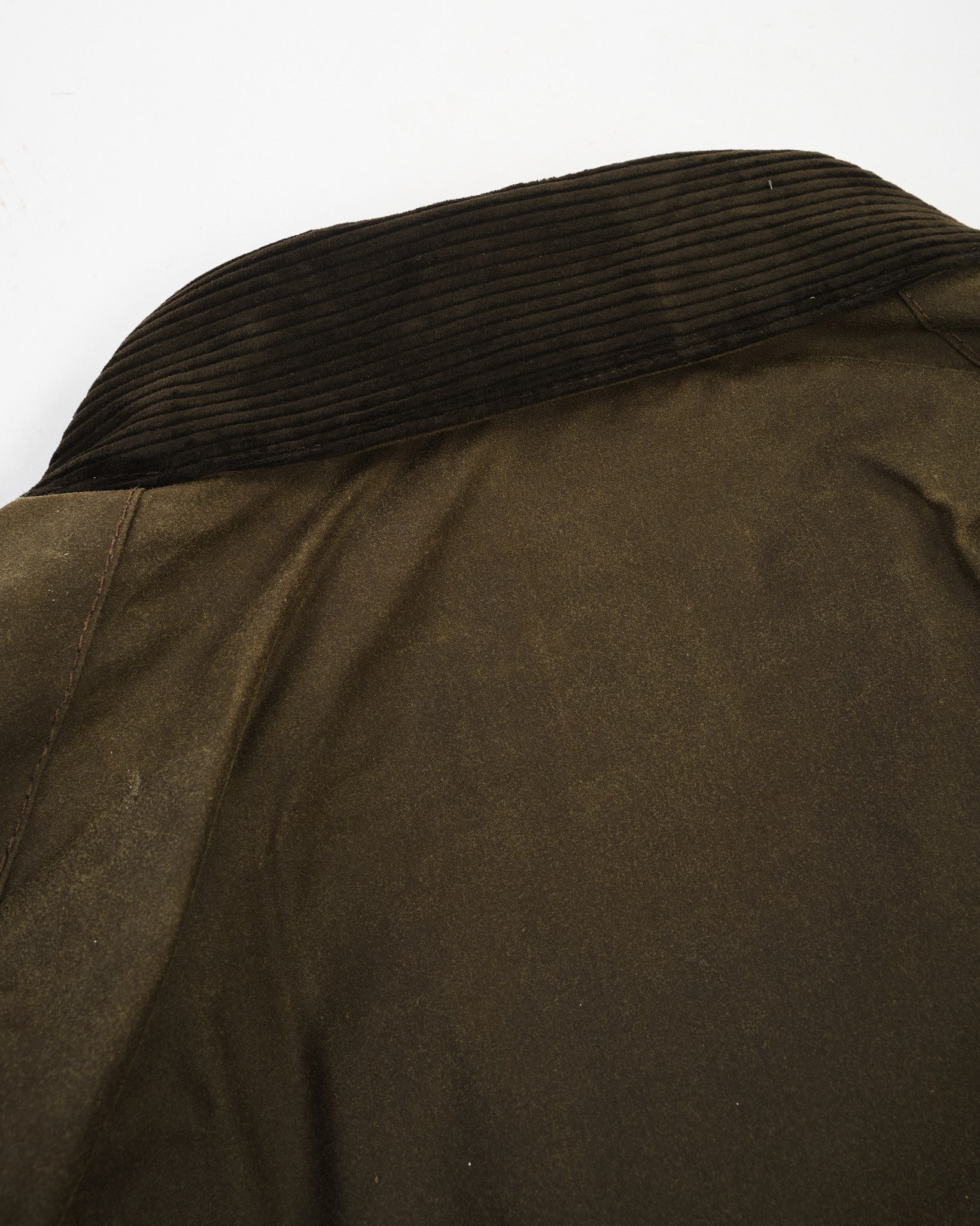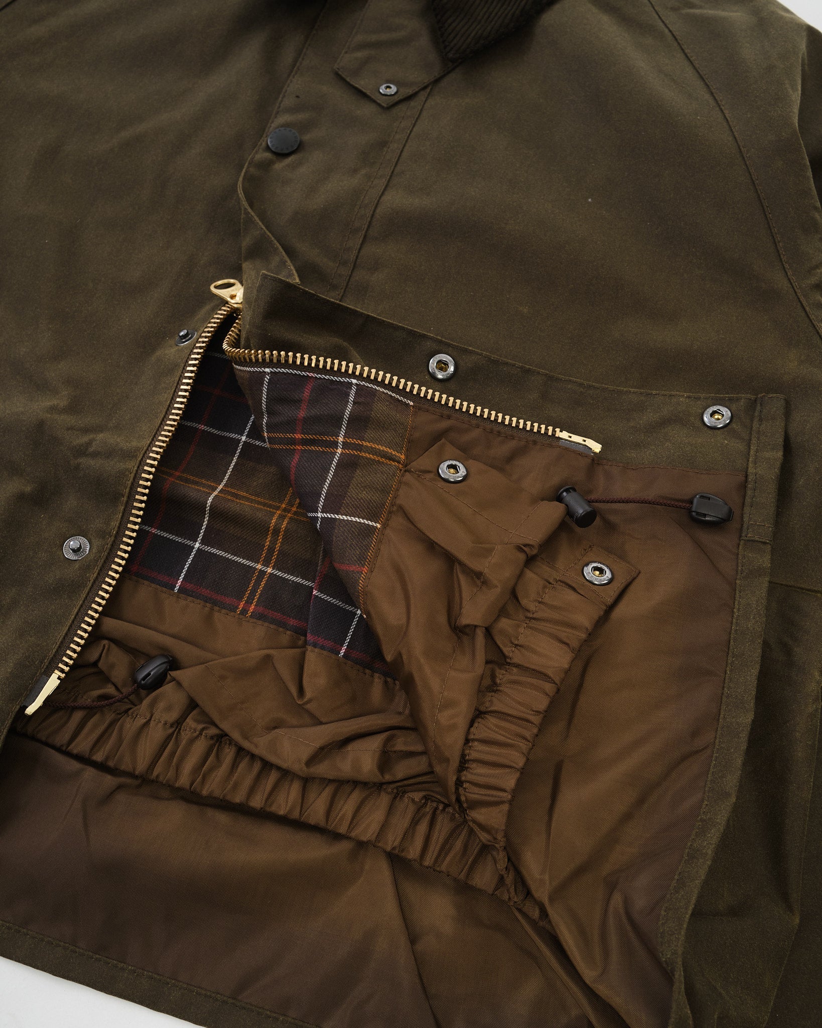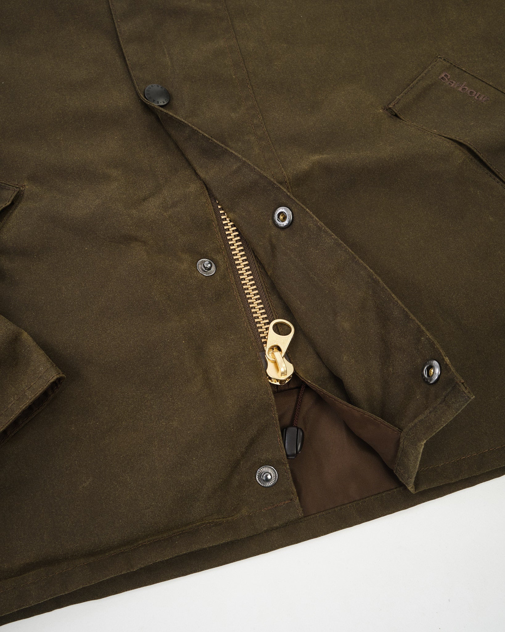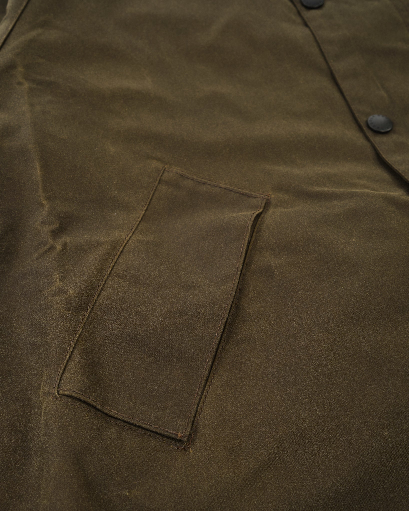 Træd ind i klassisk britisk stil med Barbour OS Transport Wax Jacket i Beech. Fremstillet af Barbours signatur 6oz vokset bomuld, kombinerer denne jakke holdbarhed med vejrbestandighed. Den traditionelle kordfløjlskrave, to nedre lommer med flapper og en indvendig lomme tilbyder praktisk opbevaring samtidig med at bevare jakkens autentiske design. Med en forreste lynlås og trykknaplukning, elastiske vindmanchetter og et tartanfor, giver denne jakke al den beskyttelse du har brug for mod elementerne, samtidig med at den stadig udstråler tidløs stil. Uanset om du er på en landtur eller i en urban indstilling, er OS Transport Wax Jacket en pålidelig ledsager.