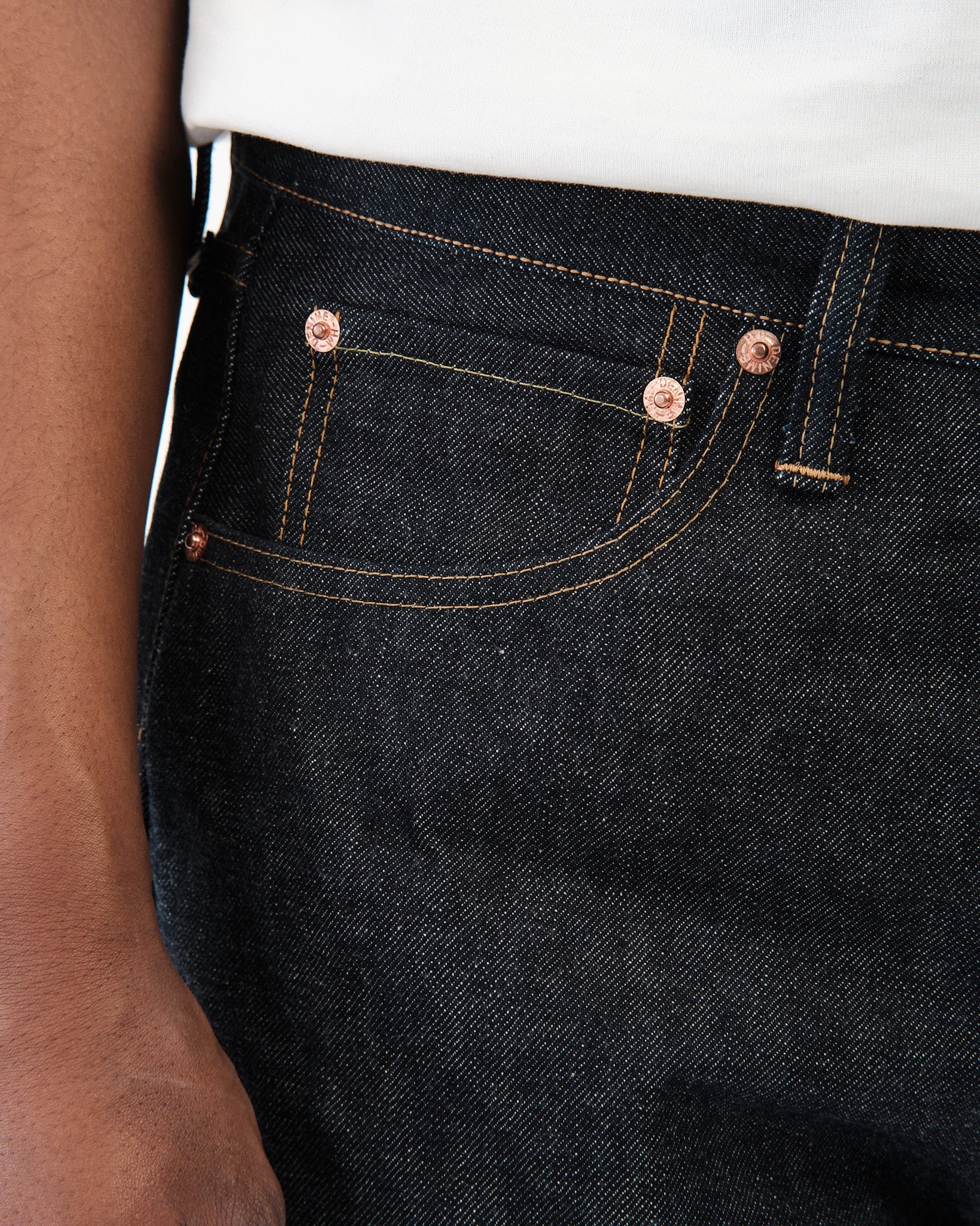 Find din groove med de 1960'erne-inspirerede Lot 221 BIG E MODEL Indigo Denim fra Denime. Et kærlighedsbrev til Levi's ikoniske 'Big E' modeller, disse jeans har en straight tapered pasform og er fremstillet i Japan af Warehouse & Co. Lavet af 100% mid-weight rå bomuldsdenim, disse jeans tilbyder en vintage silhuet og en hyggelig midt/høj stigning. Designet med fokus på holdbarhed, vil du finde gennemgående kobbernitter, skjulte baglommernitter, kraftige lommebagsider, et kort lædermærke og bar-takket bæltestropper. Heads up, denim er kendt for at krympe, så overvej at vælge en størrelse større!