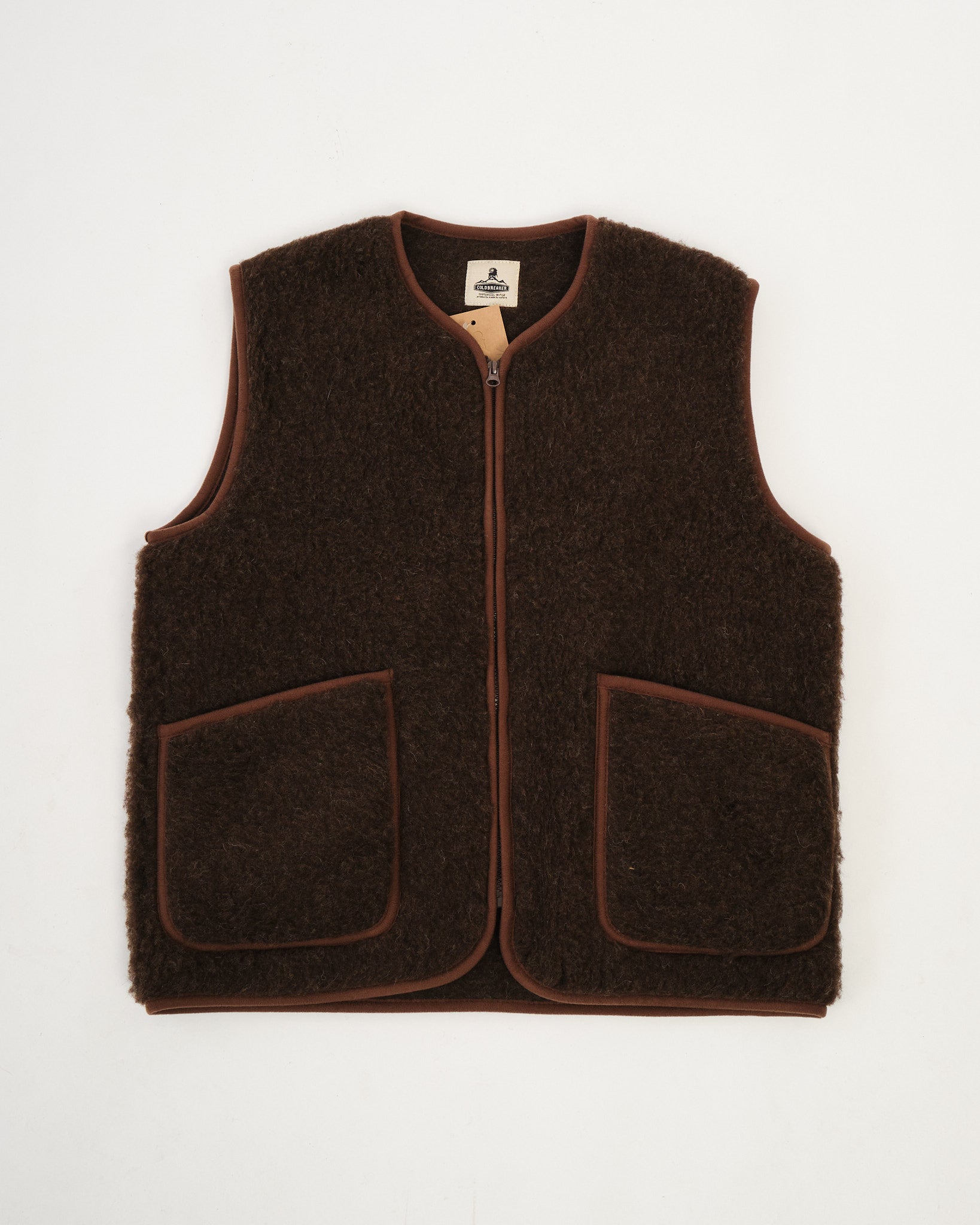 Pepitko uldvesten i mørkebrun fra Coldbreaker er et no-nonsense lag designet til varme og praktisk brug. Fremstillet i Polen af tæt uldfleece, leverer den naturlig isolering uden at være klodset — perfekt til overgangsvejr eller vinterlag. Den rene silhuet, lynlås hele vejen foran og høj hals tilbyder daglig anvendelighed, mens den mørkebrune tone bringer underspillet alsidighed. Uanset om den bæres over flannel eller under en frakke, er denne vest designet til at holde din kerne varm og din stil forankret i funktionalitet.