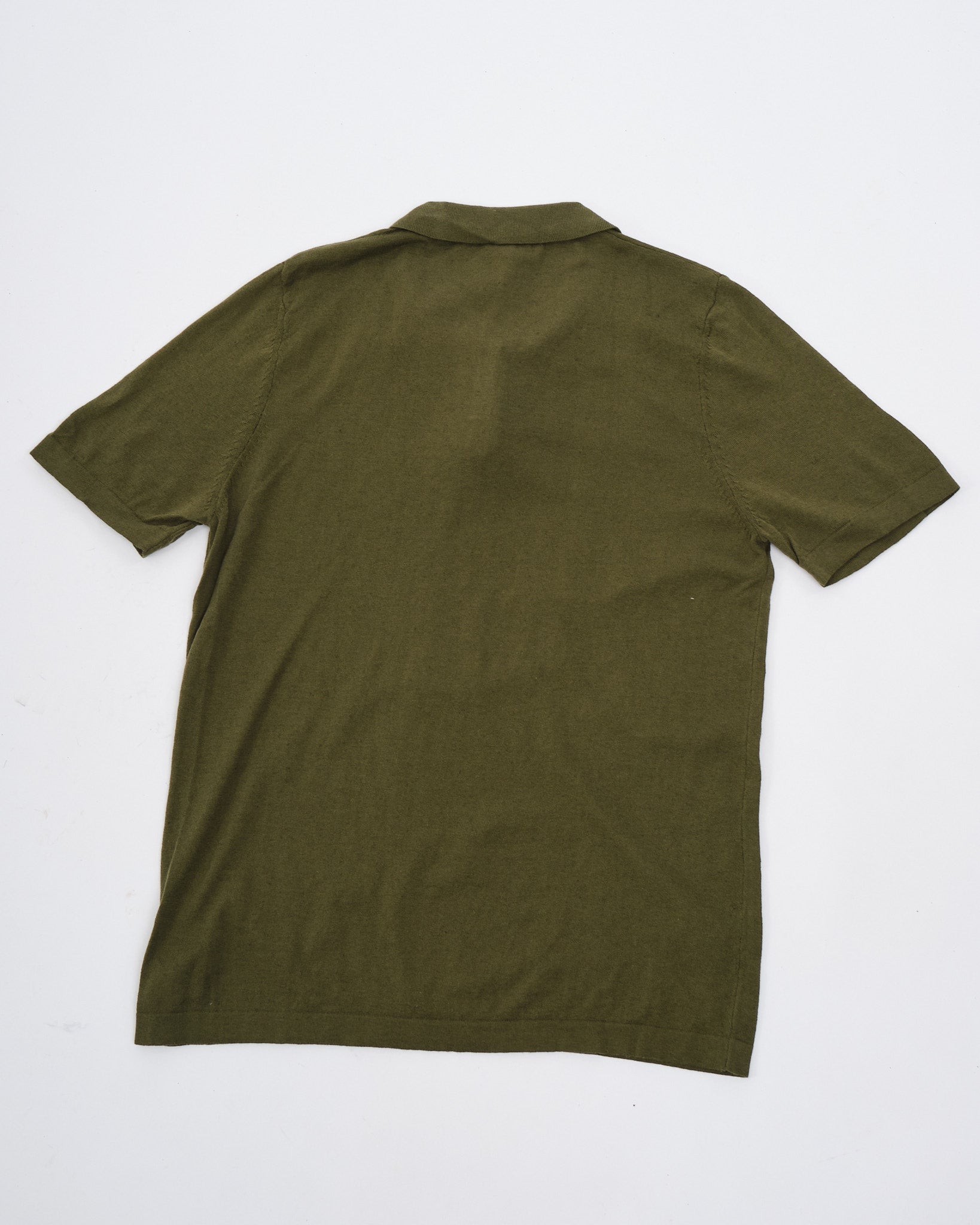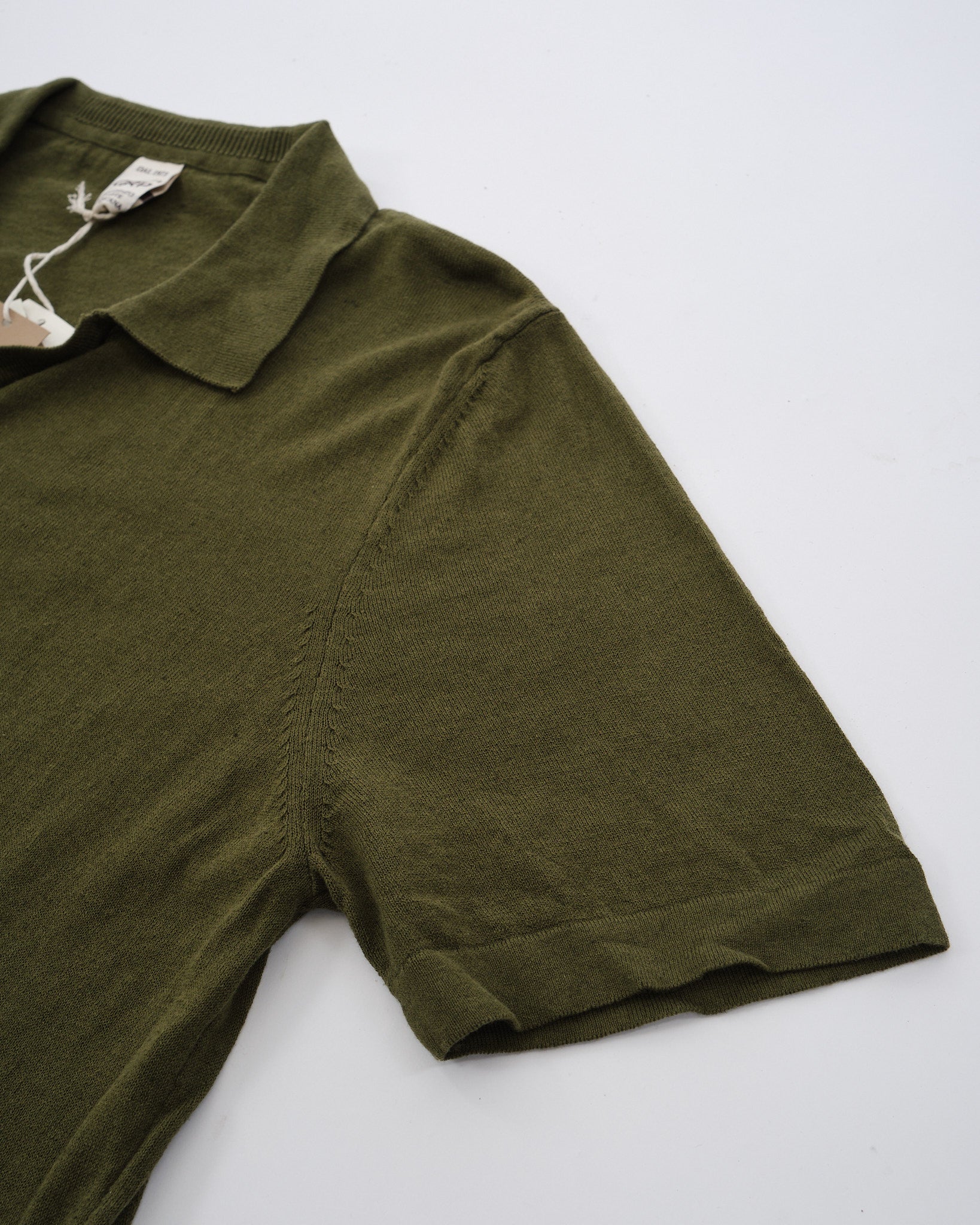 Føl dig komfortabel, men stadig stilfuld i Maglificio GRP Polo S/S i Grøn. Omhyggeligt fremstillet af en blanding af 20% hør og 80% økologisk bomuld, tilbyder denne polo en let fornemmelse, der er perfekt til de varmere dage. Den karakteristiske blanding af fibre tilbyder en blød berøring på grund af hør og har en tør finish for at holde dig komfortabel hele dagen. Denne polo fremviser den kunsthåndværksmæssige fully-fashioned strikketeknik, hvilket er tydeligt i sømdetaljen, der løber ned ad skuldrene. Den livlige grønne farve på skjorten tilføjer et forfriskende pop af farve til dit ensemble.