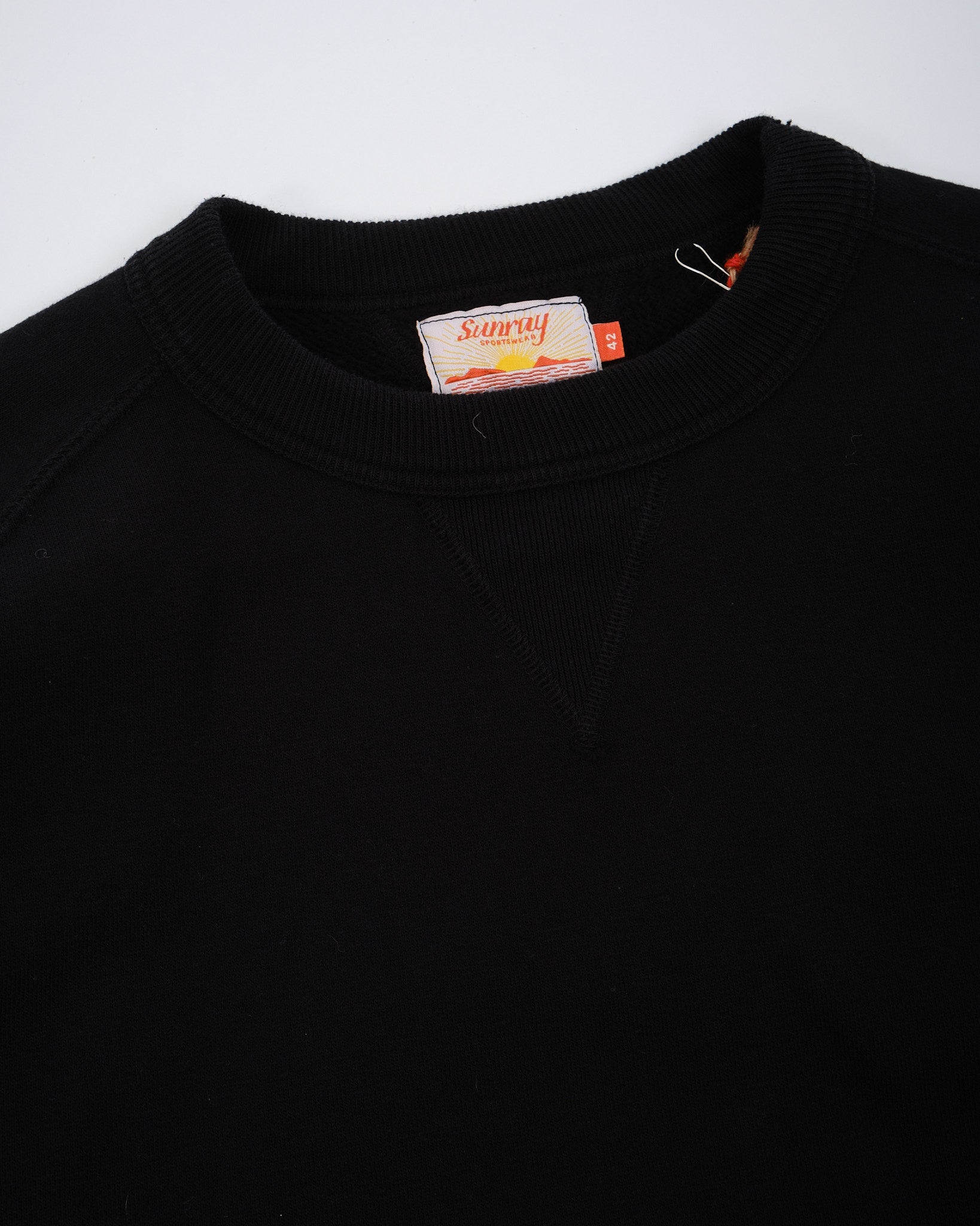 Puamana Crew Neck Sweat Anthracite fra Sunray Sportswear er en klassiker i støbeskeen. Inspireret af 50'erne, er denne traditionelle pasform sweater afslappet, mere firkantet og en smule kortere end en moderne pasform. Kraven, rib-designet og stofferne er alle traditionelt stylet. Lavet i Japan, praler den af 420g japansk terry fleece stof for overlegen komfort. Denne nye model, med sit raglan ærmedesign og dobbelt 'V' krave, er allerede en favorit hos Meadow. Dens produktion på antikke cirkulære strikkemaskiner sikrer et sømløst, holdbart tøjstykke, der ikke mister form.
