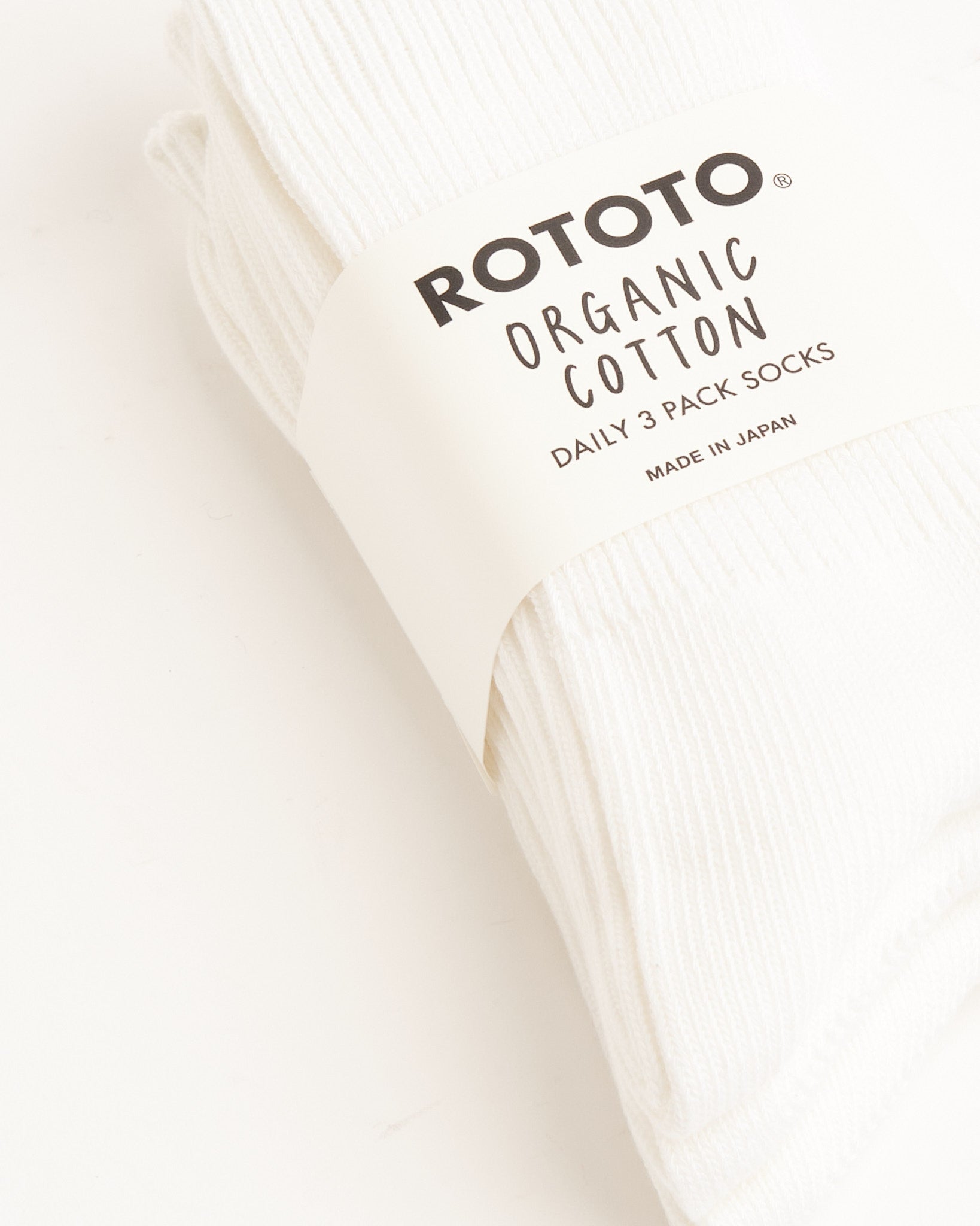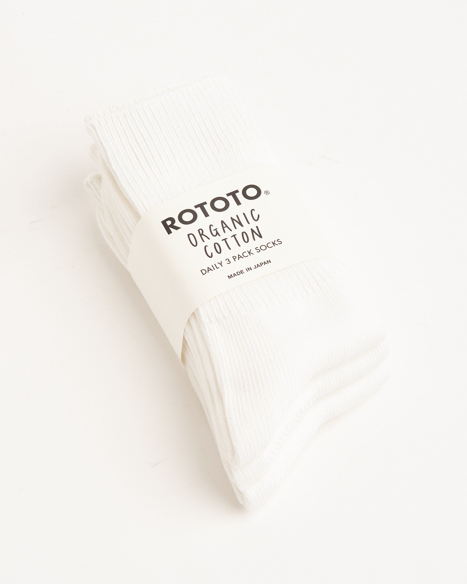 Forøg dit sokkespil med ROTOTO Organic Daily 3 Pack Crew Socks i Hvid. Denne alsidige trio stammer fra Japan og er fremstillet af 93% økologisk bomuld, hvilket tilbyder uovertruffen blødhed og komfort. Pakken indeholder tre forskellige designs: chunky rib, pile sål, og fuldt foret pilestof, hvilket sikrer, at du er dækket til enhver stemning og lejlighed. Ribbede skaft og forstærkninger ved tå og hæl gør disse sokker både fashionable og funktionelle.