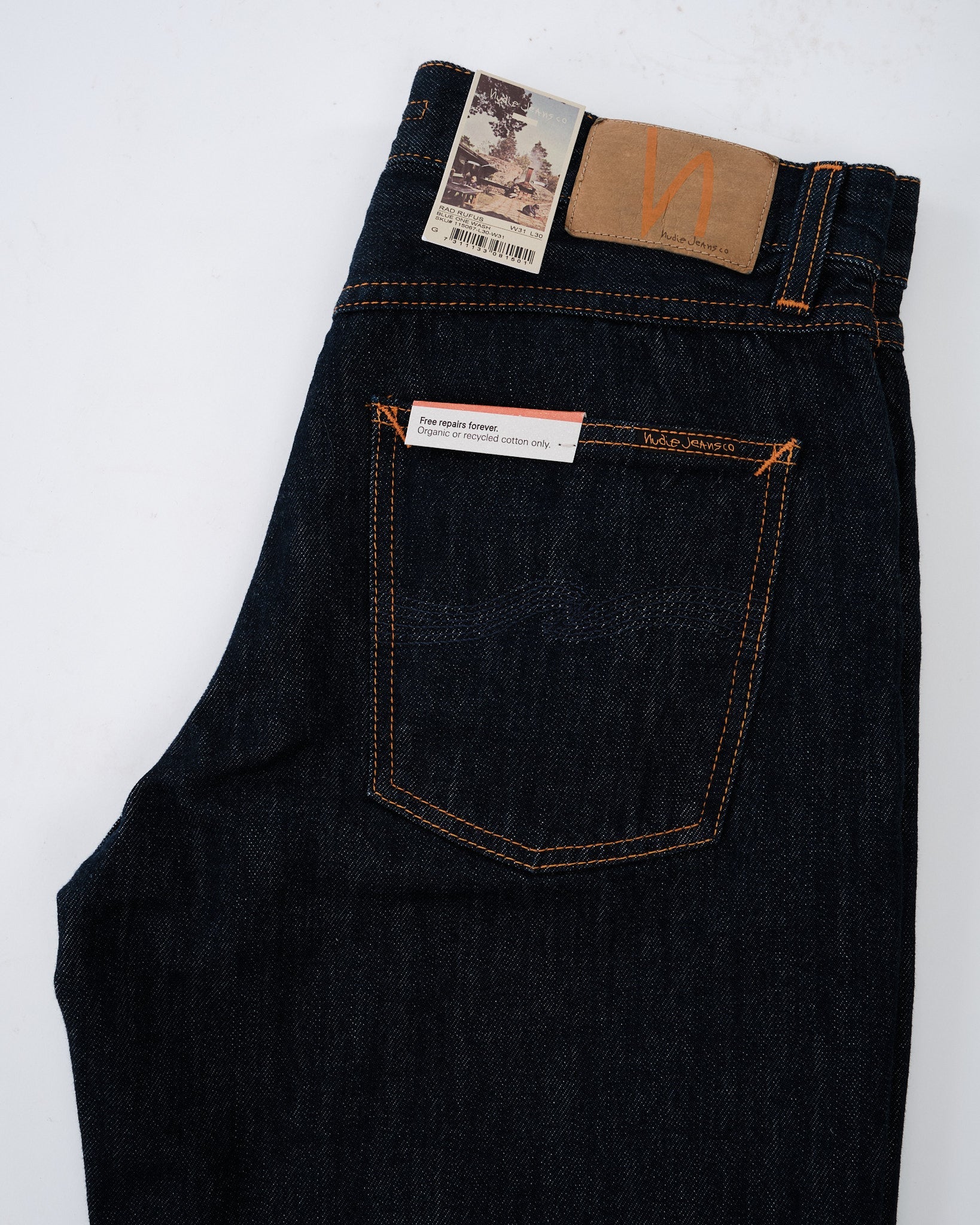 The NUDIE JEANS CO. RAD RUFUS BLUE ONE WASH er en fejring af enkel, autentisk denim. Disse højtaljede, regular-fit jeans med et lige ben er fremstillet af regenerativ økologisk bomuld, hvilket sikrer både bæredygtighed og langvarig komfort.