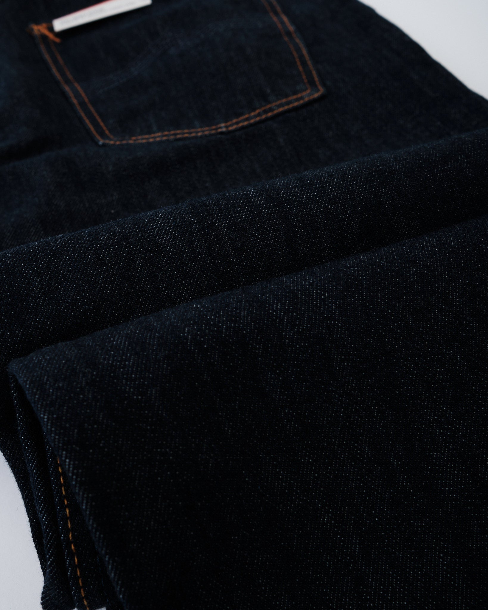 Inspireret af den naturlige skønhed af en enkelt hjemmevask af tør denim, har dette par en dyb blå vask, der skifter fra mørkeblå til en rig, rødlig blå. Fremstillet af vintage-stil dyb indigo denim med en medium slub karakter, forbedrer vasken stoffets tekstur, og transformerer det fra glat til smukt uregelmæssigt.