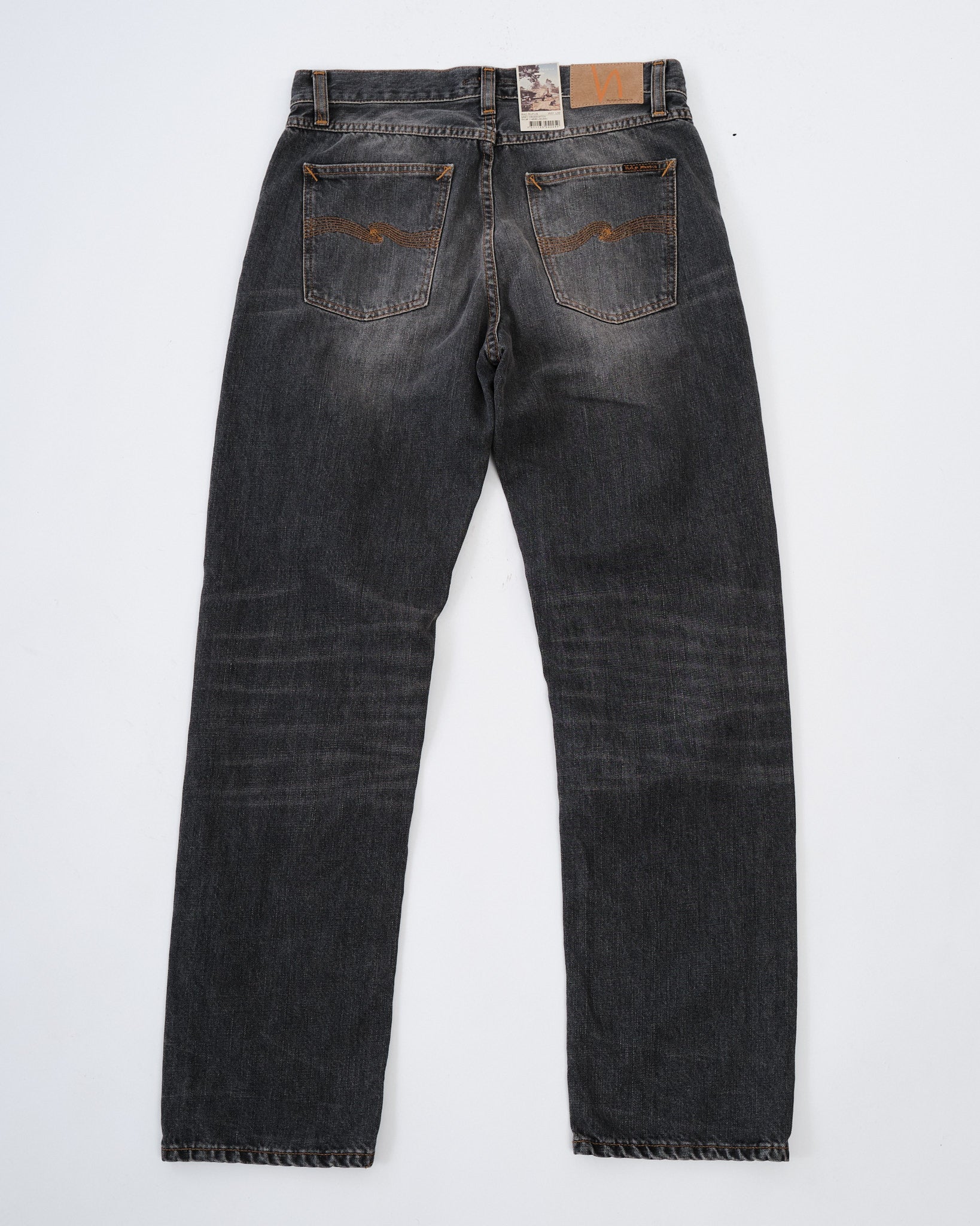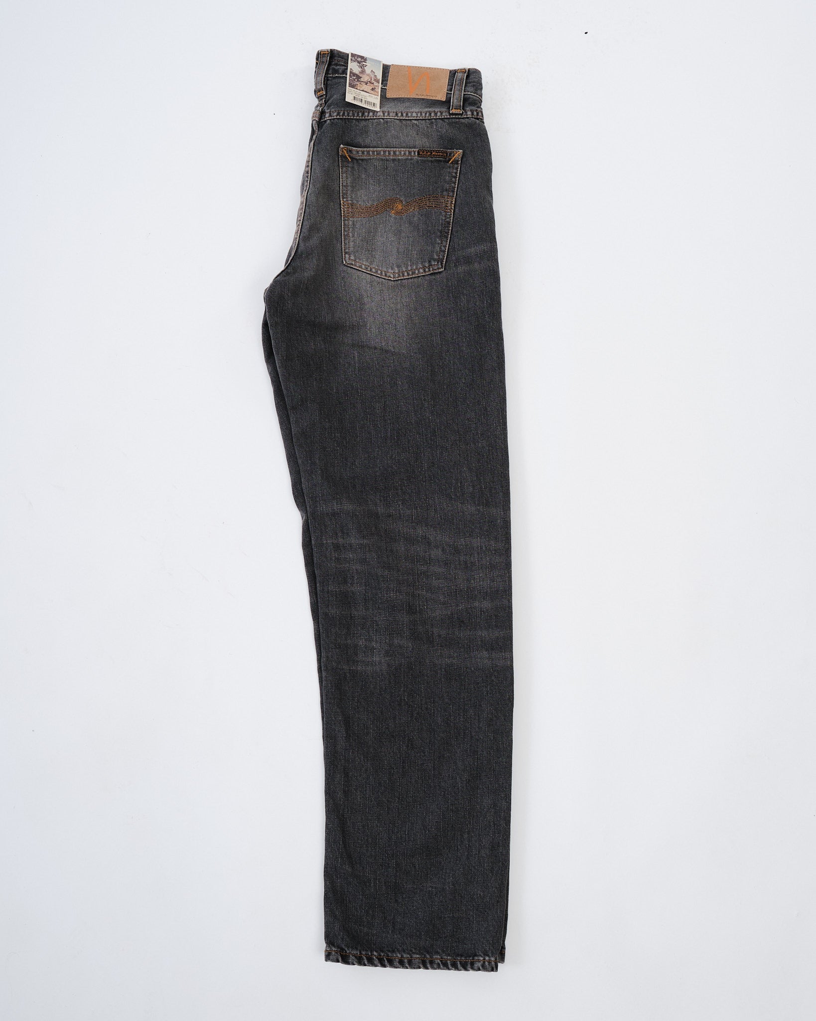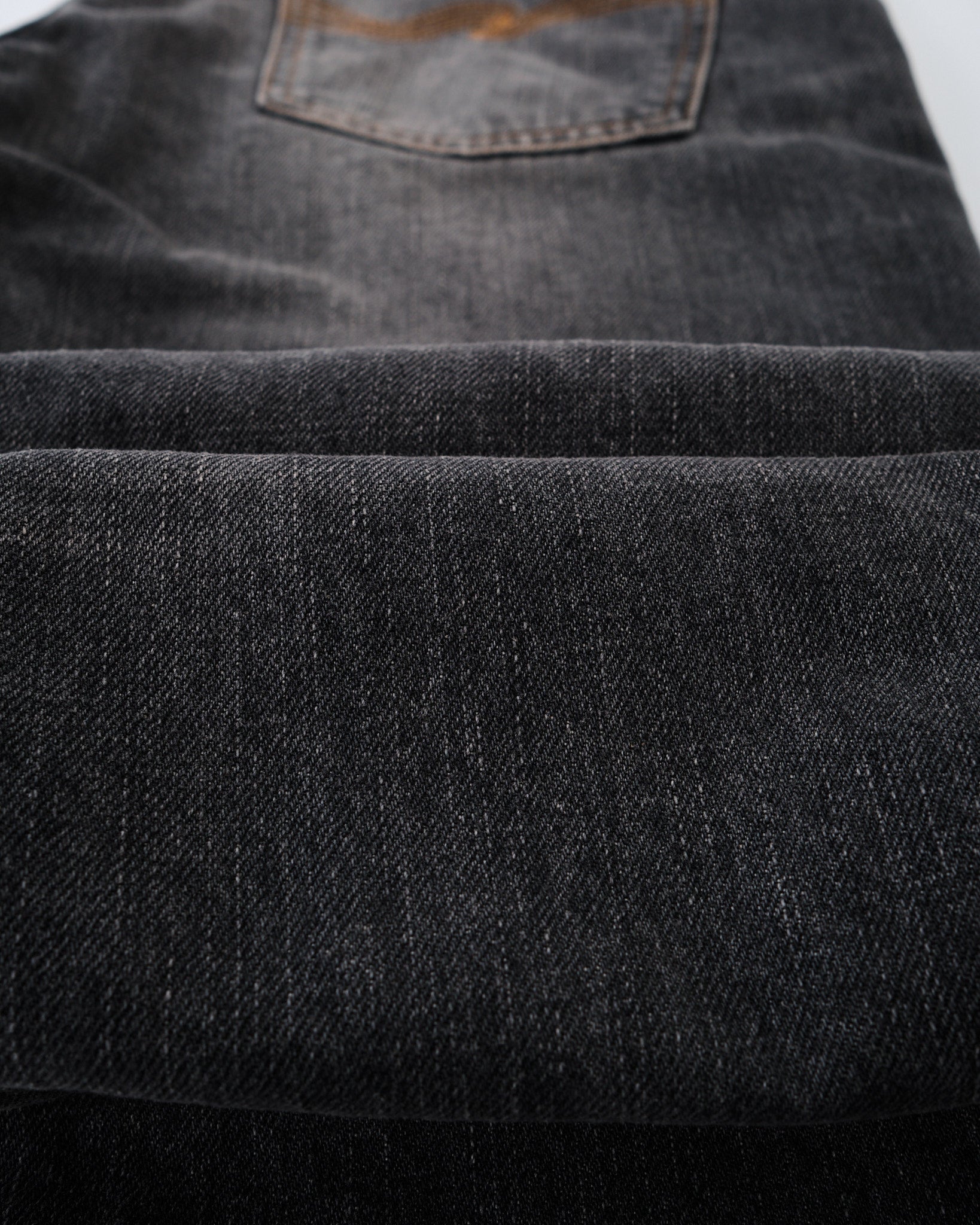 Træd ind i dristig denim styling med NUDIE JEANS CO. RAD RUFUS GREY CROSSHATCH. Disse jeans med høj talje og regulær pasform med lige ben har en slående grå vask med dybe kontraster. Fremstillet af sort denim, fremviser stoffet en robust krydshatch tekstur, der skaber rige højdepunkter og lavpunkter med et dynamisk, noppet udseende.